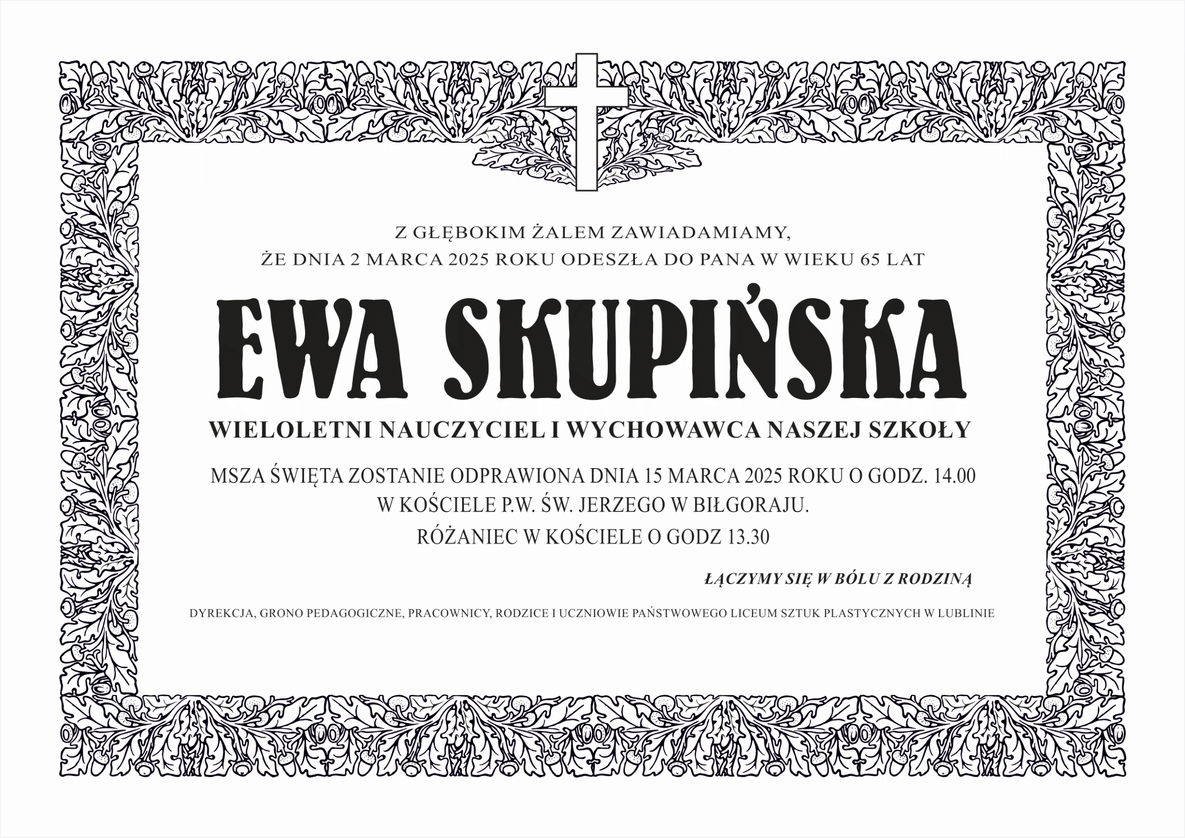 2 marca 2025 roku odeszła od nas nasza droga Koleżanka – wychowawca, nauczyciel języka angielskiego w latach 1990–2017 (ZSP im. C. K. Norwida w Lublinie i PLSP im. C. K. Norwida w Lublinie, OSM I i II st. im. K. Lipińskiego w Lublinie). W 2015 roku otrzymała Medal Komisji Edukacji Narodowej.