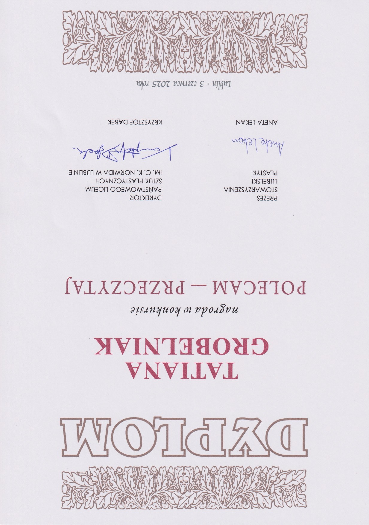 Miło jest nam poinformować, że dnia 6 czerwca 2025 roku jury konkursu czytelniczego „Polecam – Przeczytaj” w Państwowym Liceum Sztuk Plastycznych im. Cypriana Kamila Norwida w Lublinie przyznało nagrodę Tatiana Grobelniak z klasy 3B za recenzję książki Andrzeja Pilipiuka pt. "Wampir z MO".