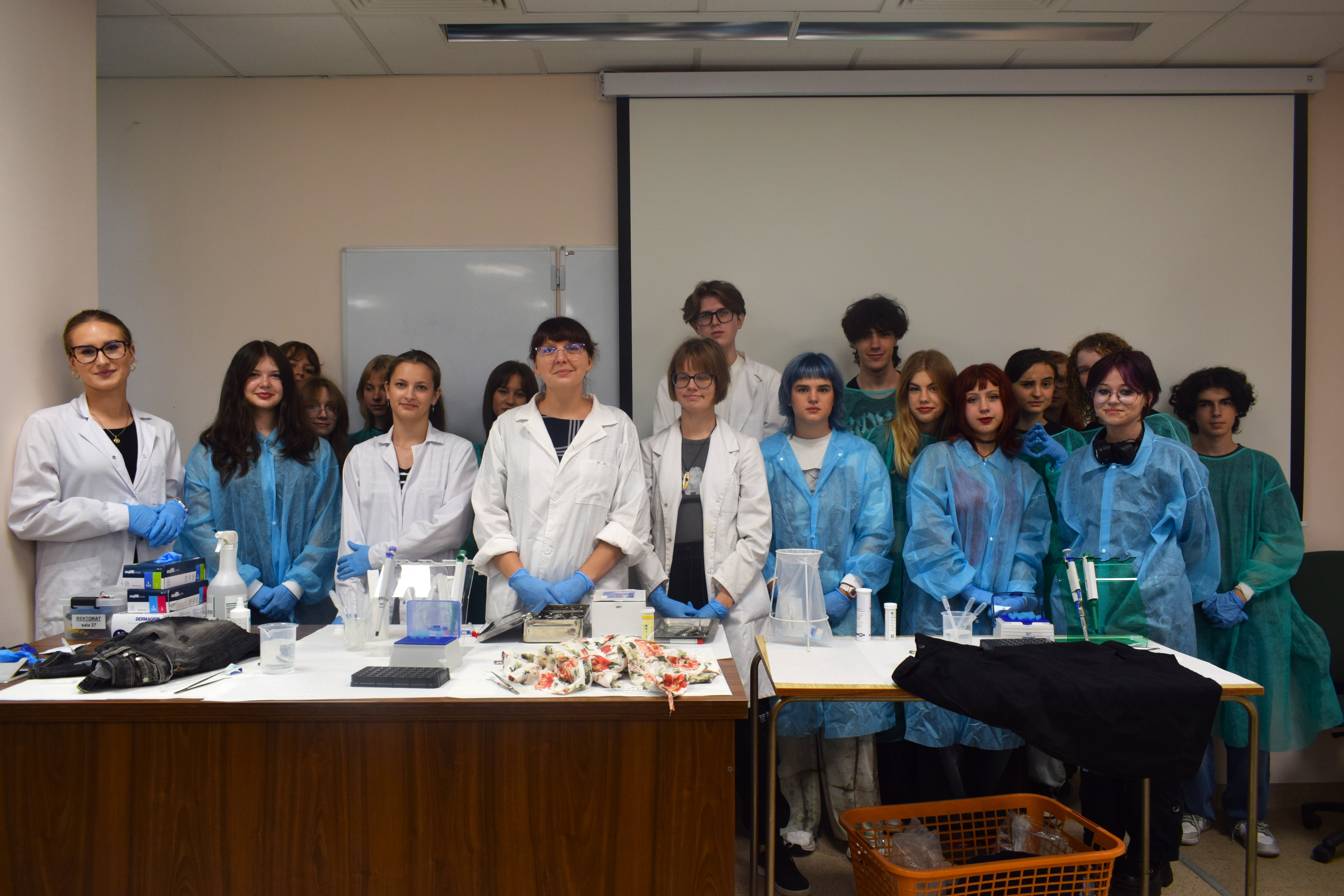 Młodzież uczestniczyła w warsztatach izolacji barwników z roślin (klasa IV A), kryminalistycznej analizy plam krwi (klasa II B) oraz czy fotografie mówią prawdę (klasa II A).