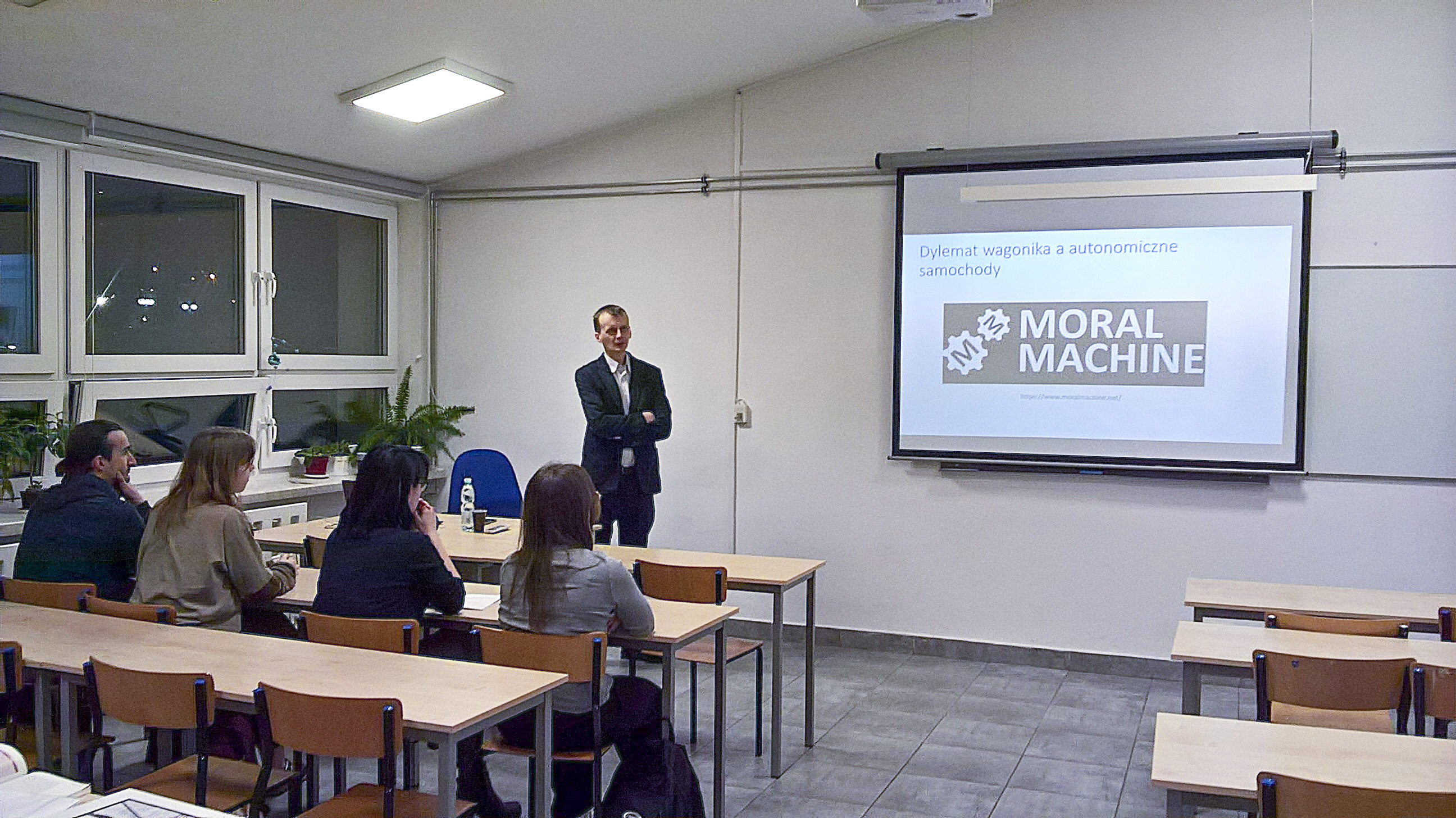 Podczas spotkania profesor Lewandowski zapoznał uczestników ze słynnym etycznym eksperymentem myślowym, który przeszedł do historii pod nazwą „dylematu wagonika”. Eksperyment ten uświadomił, że ludzkie decyzje moralne są skomplikowane, zależne od kontekstu i trudne do jednoznacznego uregulowania, co stawia wielkie wyzwanie przed etyką AI i nowoczesnymi technologiami.