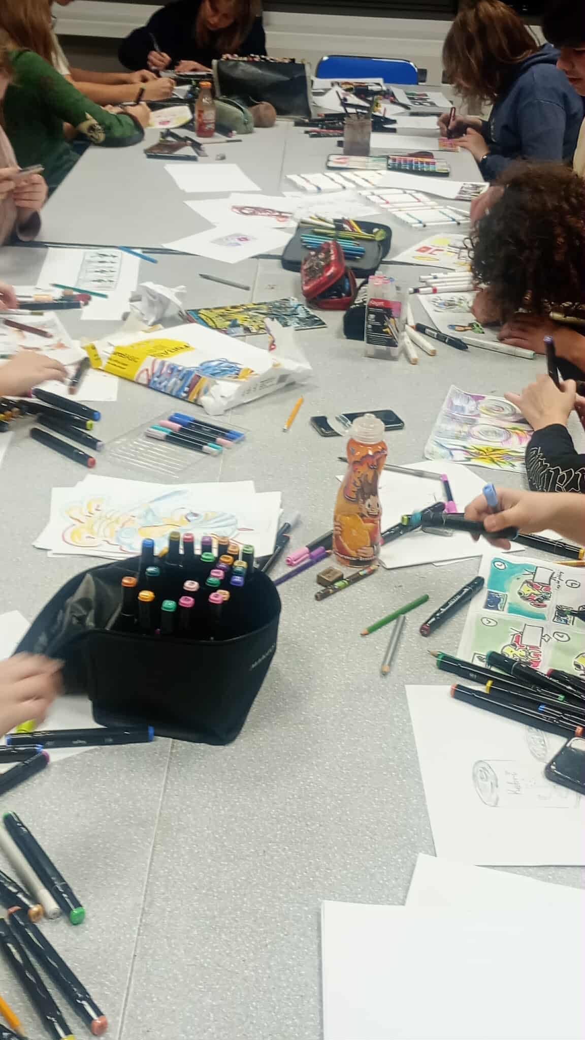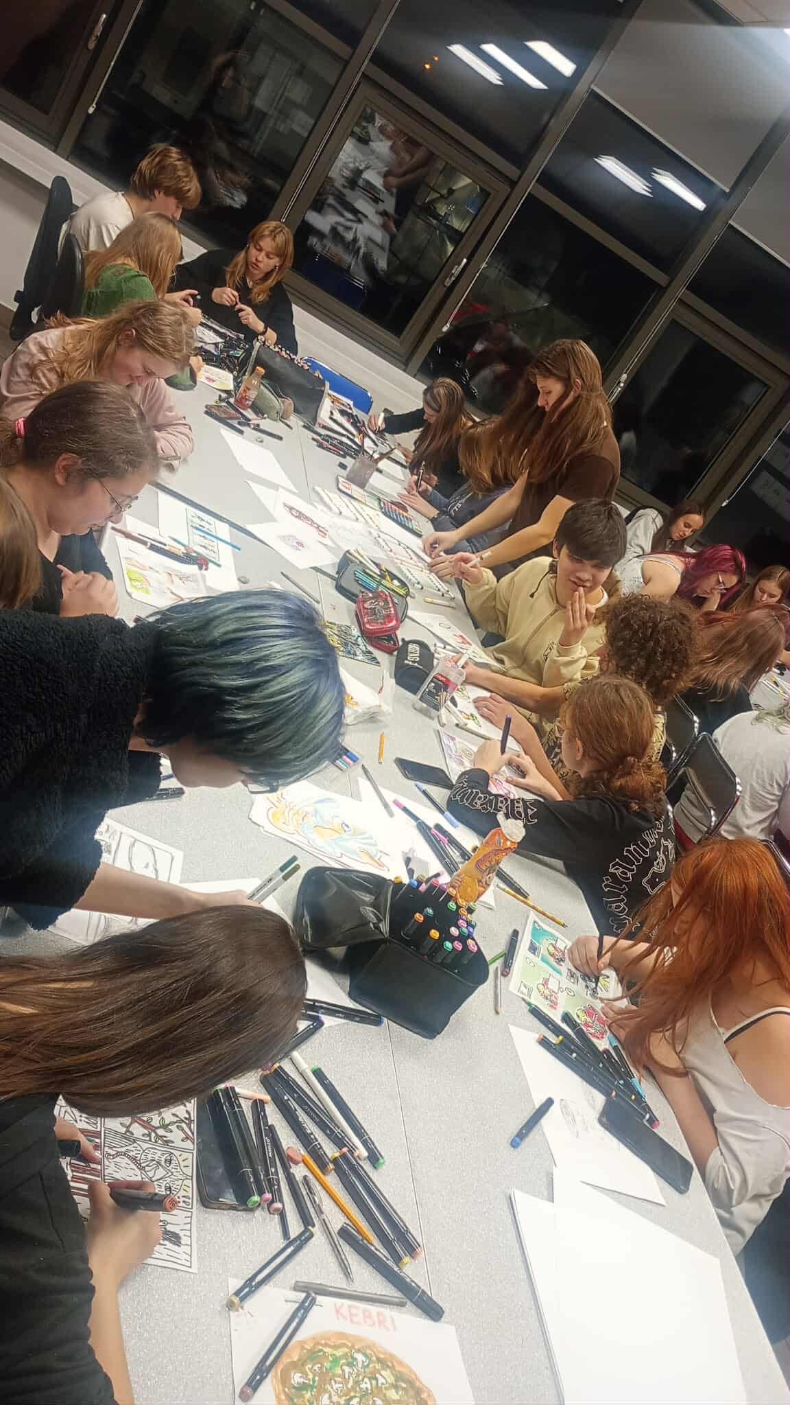 Pierwszą z atrakcji były warsztaty z tworzenia komiksu, prowadzone przez Grzegorza Nowickiego i Emilię Skubis z pracowni artystycznej Z głową w chmurach.