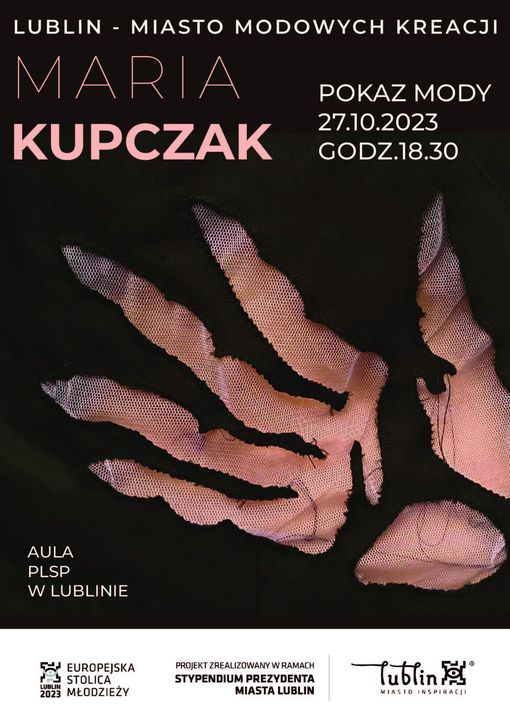 W piątek, 27.10.2023, o godz. 18.30 odbędzie się pokaz mody autorstwa Marii Kupczak. Kolekcja zatytułowana jest „Lublin – Miasto Modowych Kreacji”. Zrealizowana została w ramach Stypendium Prezydenta Miasta Lublin.