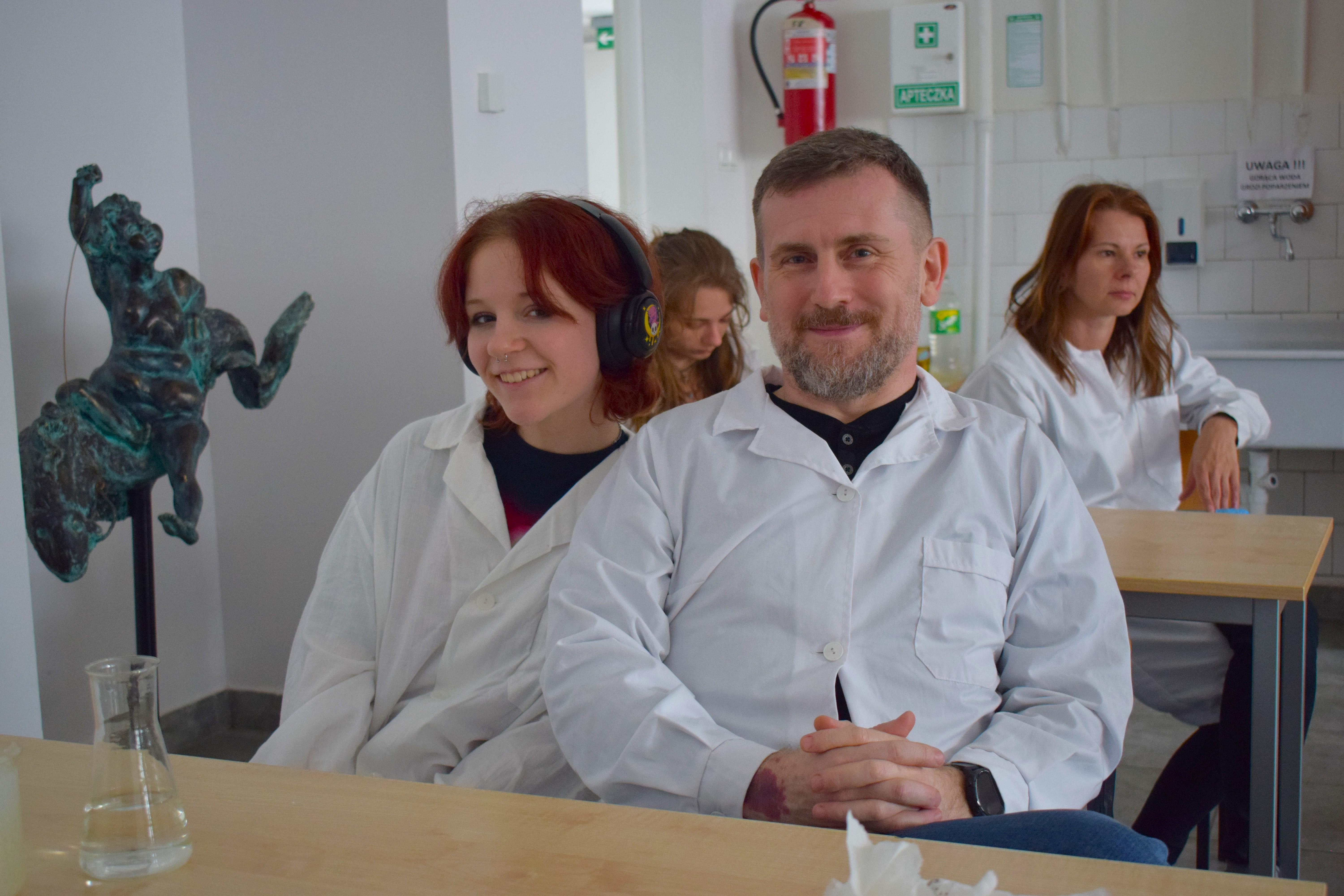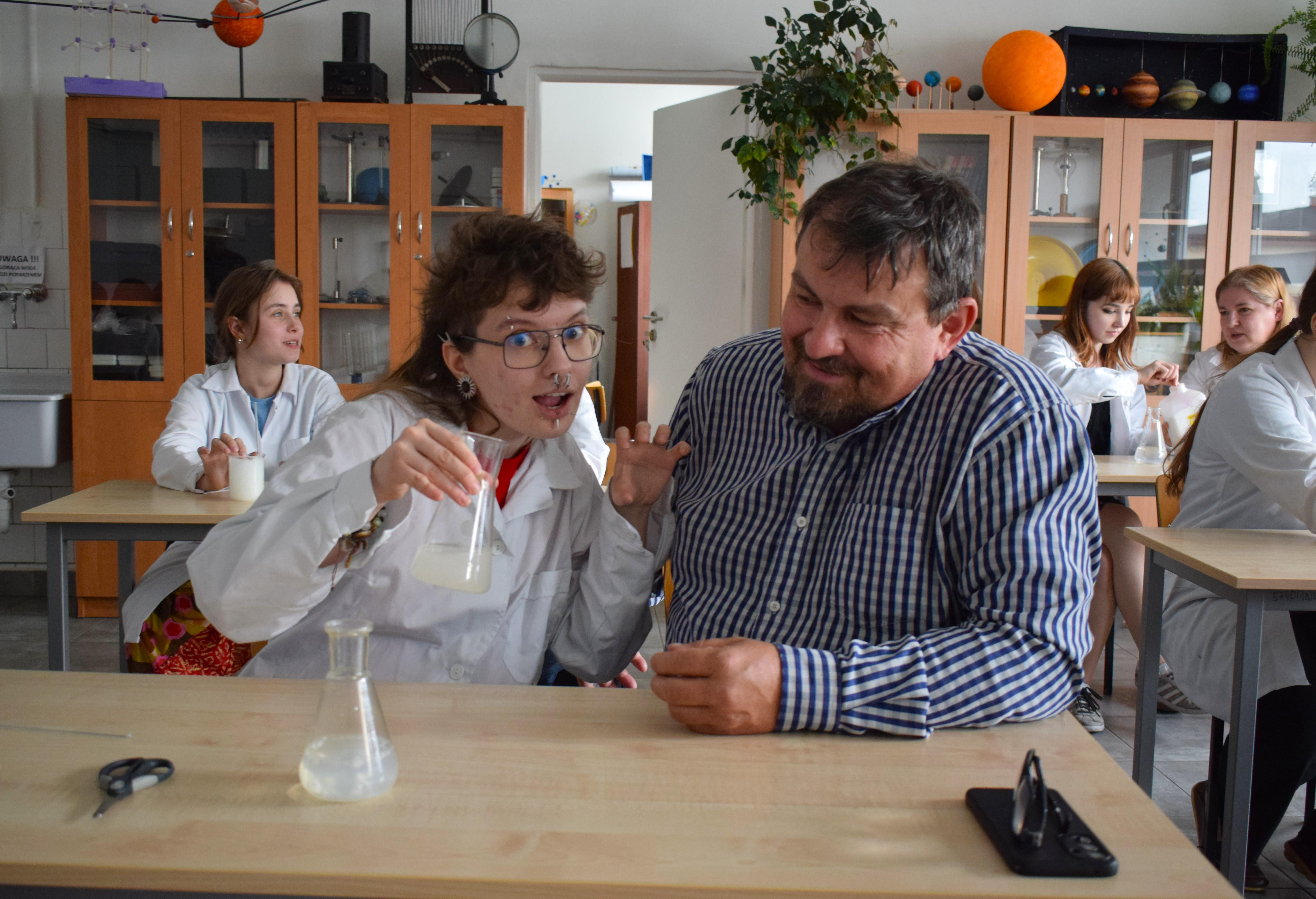12 kwietnia 2024 r. rodzice wraz ze swoimi dziećmi z klasy IV A wzięli udział w warsztatach chemicznych przeprowadzonych przez wychowawcę klasy Tomasza Banaszkiewicza. Każdy z opiekunów wraz ze swoją latoroślą wykonywał barwne doświadczenia, sprawdzał właściwości sorpcyjne polimerów czy obcował z perhydrolem obserwując jego właściwości utleniające. Po warsztatach zgromadzeni oddali się degustacji ciastom przy kawie i herbacie. Spotkanie miało charakter integracyjny oraz było okazją wspólnej zabawy młodzieży z ich rodzicami.