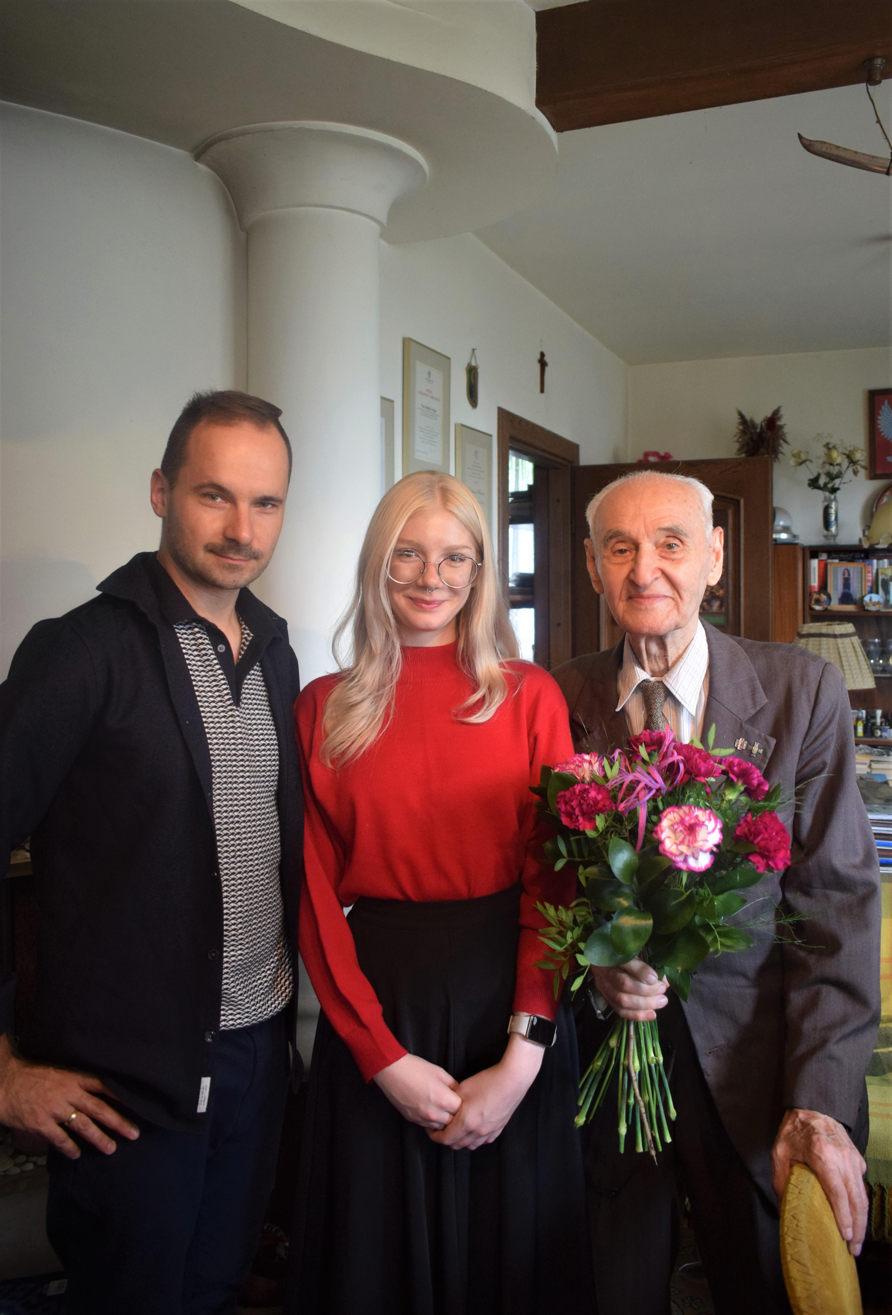 11 września 2024 roku, uczennice klasy IIIB wspólnie z nauczycielem Tomaszem Banaszkiewiczem odwiedziły Pana mjr Bogdana Walasa – żołnierza Armii Krajowej, byłego więźnia obozu koncentracyjnego na Majdanku, działacza społecznego. Celem wizyty było uczczenie 100. roczny urodzin Pana majora, który gościł w murach naszej szkoły w 2021 roku jako świadek historii. Panu Walasowi życzymy wielu lat w zdrowiu.