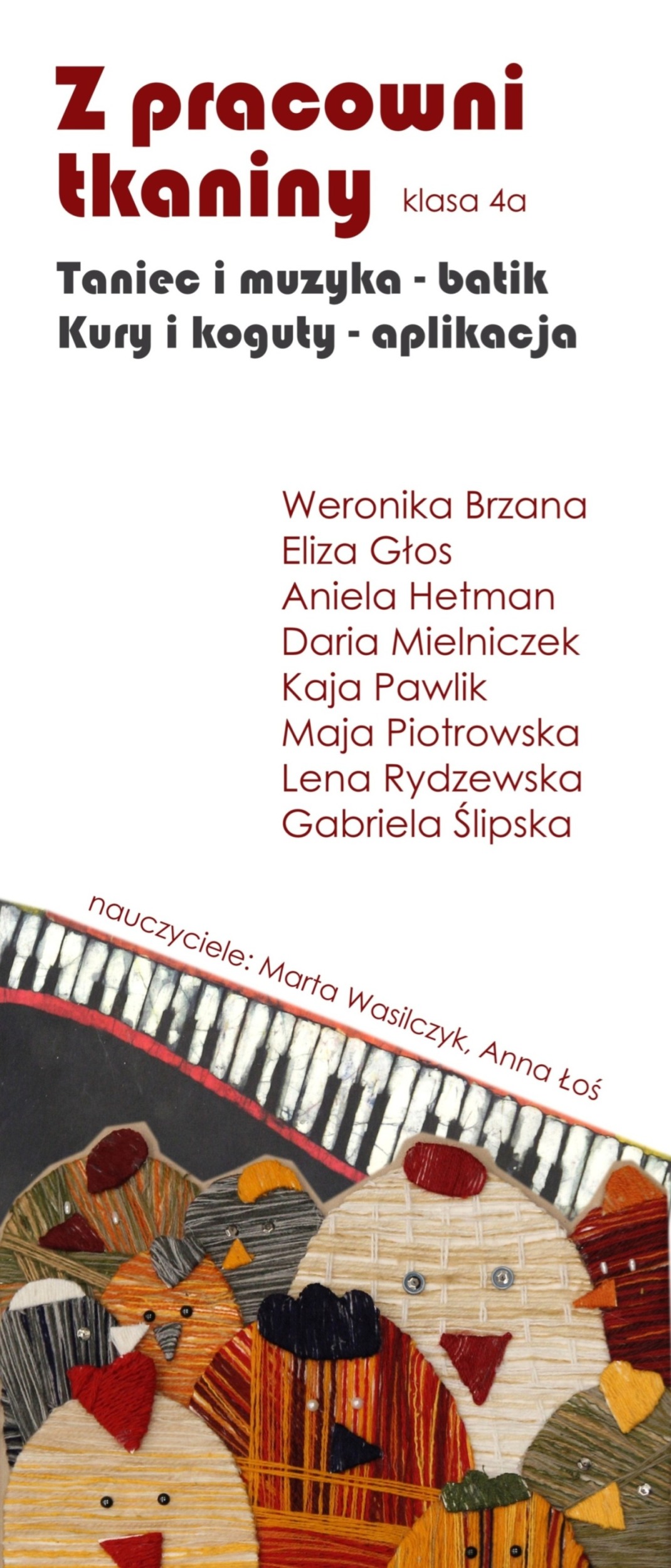 Z pracowni tkaniny - Batik: Taniec i muzyka - Aplikacje: Kury i koguty
