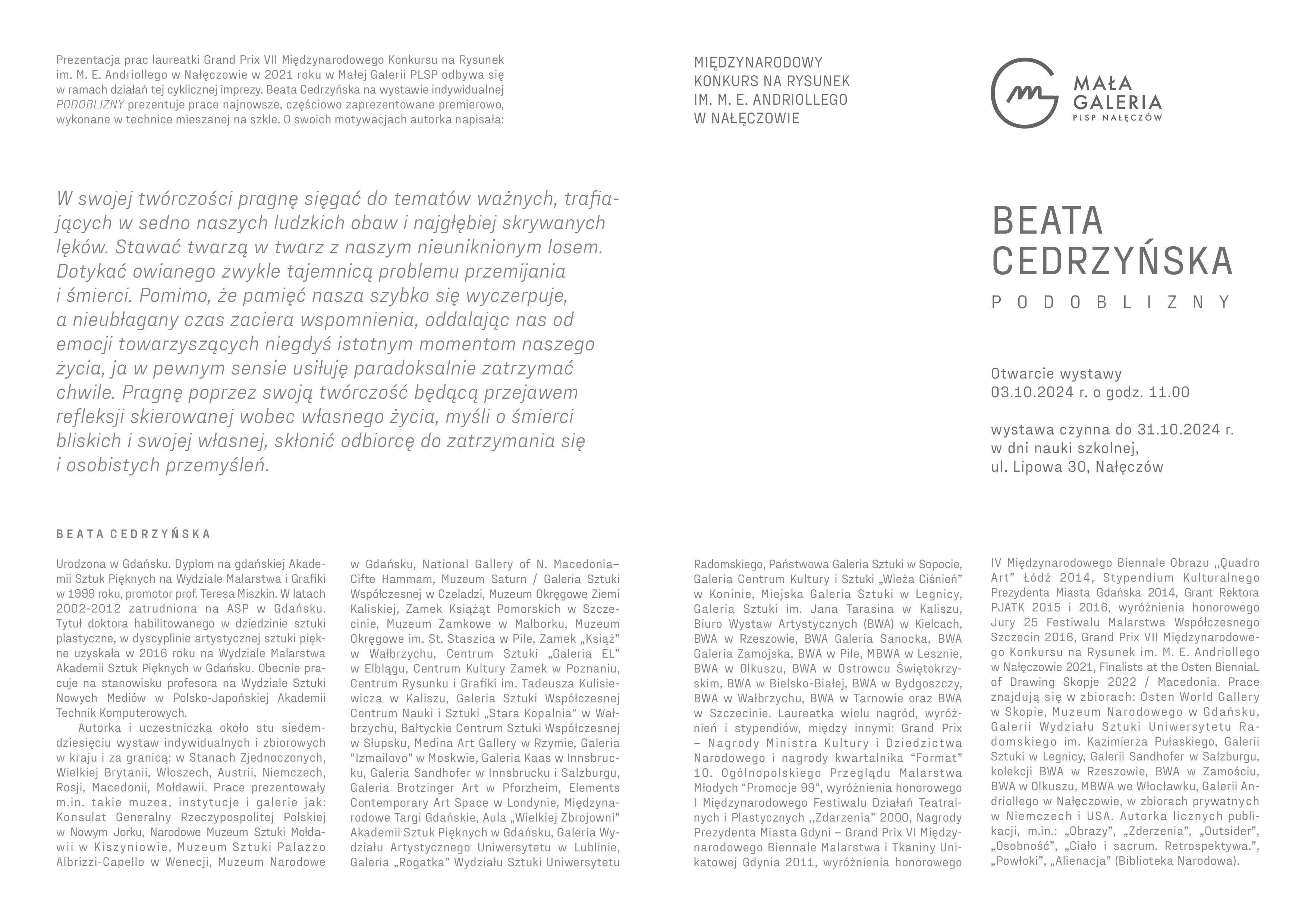 Beata Cedrzyńska w Małej Galerii PLSP