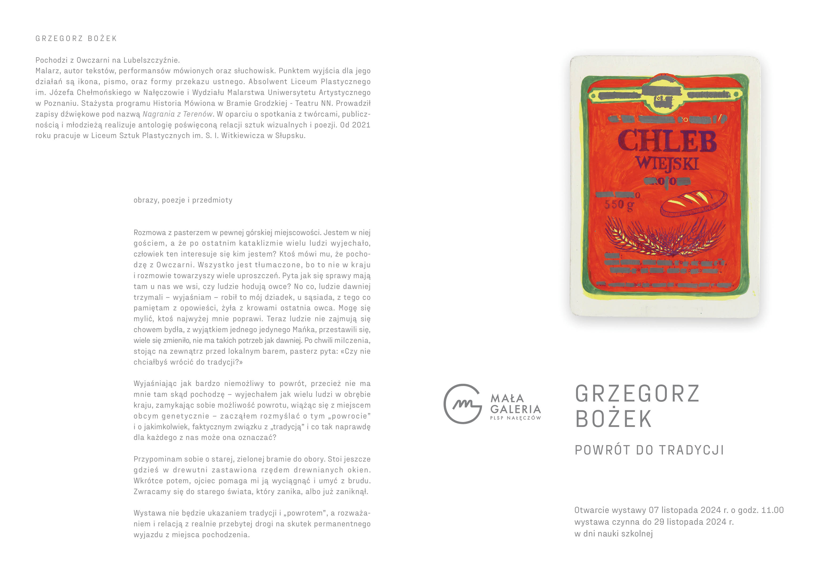 Zapraszamy na wernisaż wystawy Grzegorza Bożka, który odbędzie się 7 listopada 2024 r.