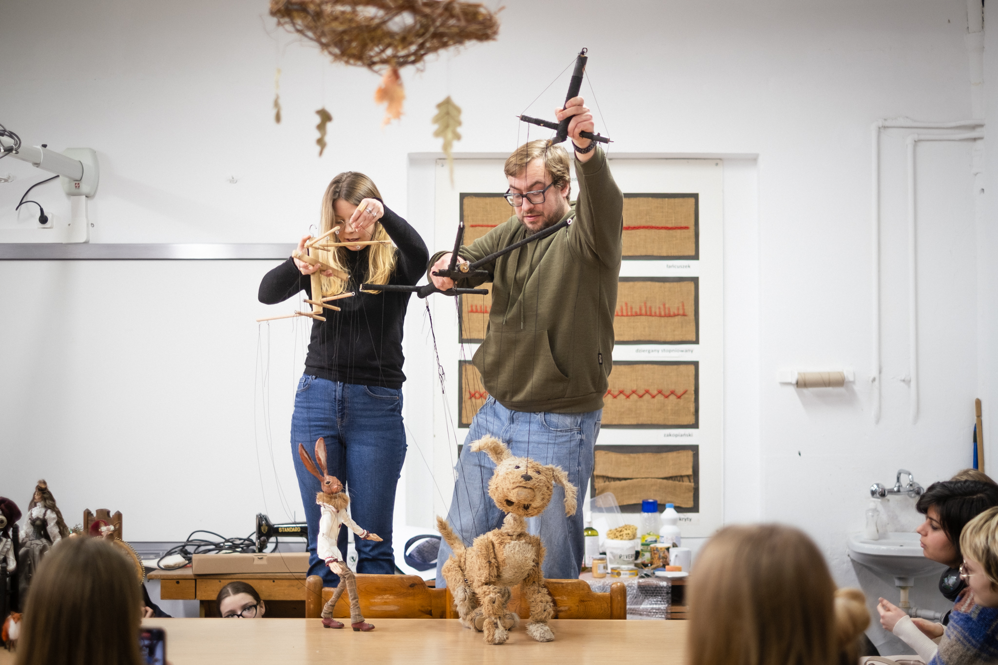 W piątek 28.11 w pracowni zabawek odbyło się spotkanie autorskie z naszą absolwentką Katarzyną Rogowską oraz Jej partnerem Łukaszem Puczko (PuppetMan). Kasia tworzy autorskie lalki artystyczne i teatralne. Koniecznie zapoznajcie się z Jej pracami!