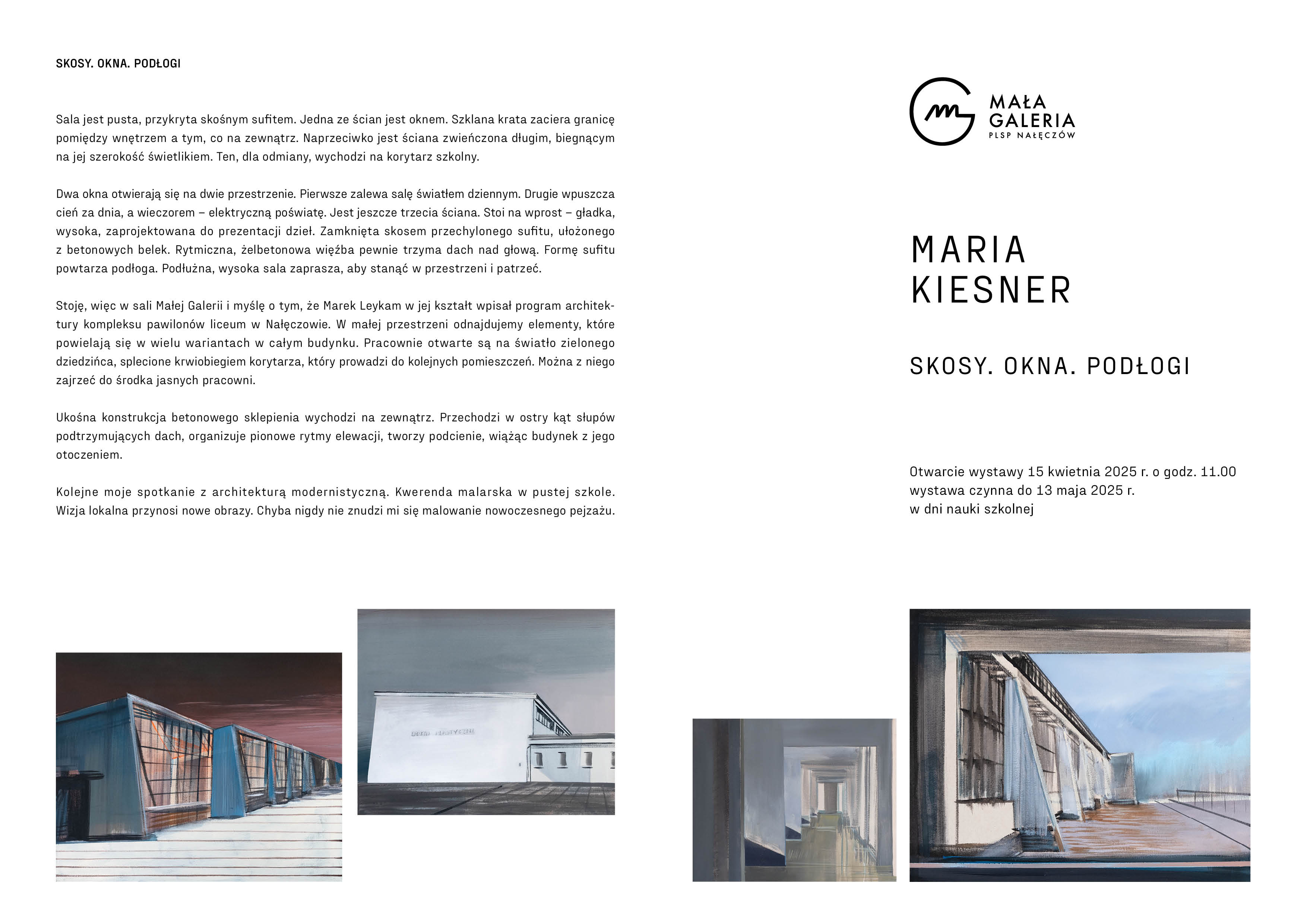 Zapraszamy na wernisaż wystawy malarstwa Marii Kiesner, który odbędzie się 15 kwietnia 2025 r. o godzinie 11:00 w Małej Galerii PLSP. Wystawę można oglądać do 13 maja 2025 r. w dni nauki szkolnej.