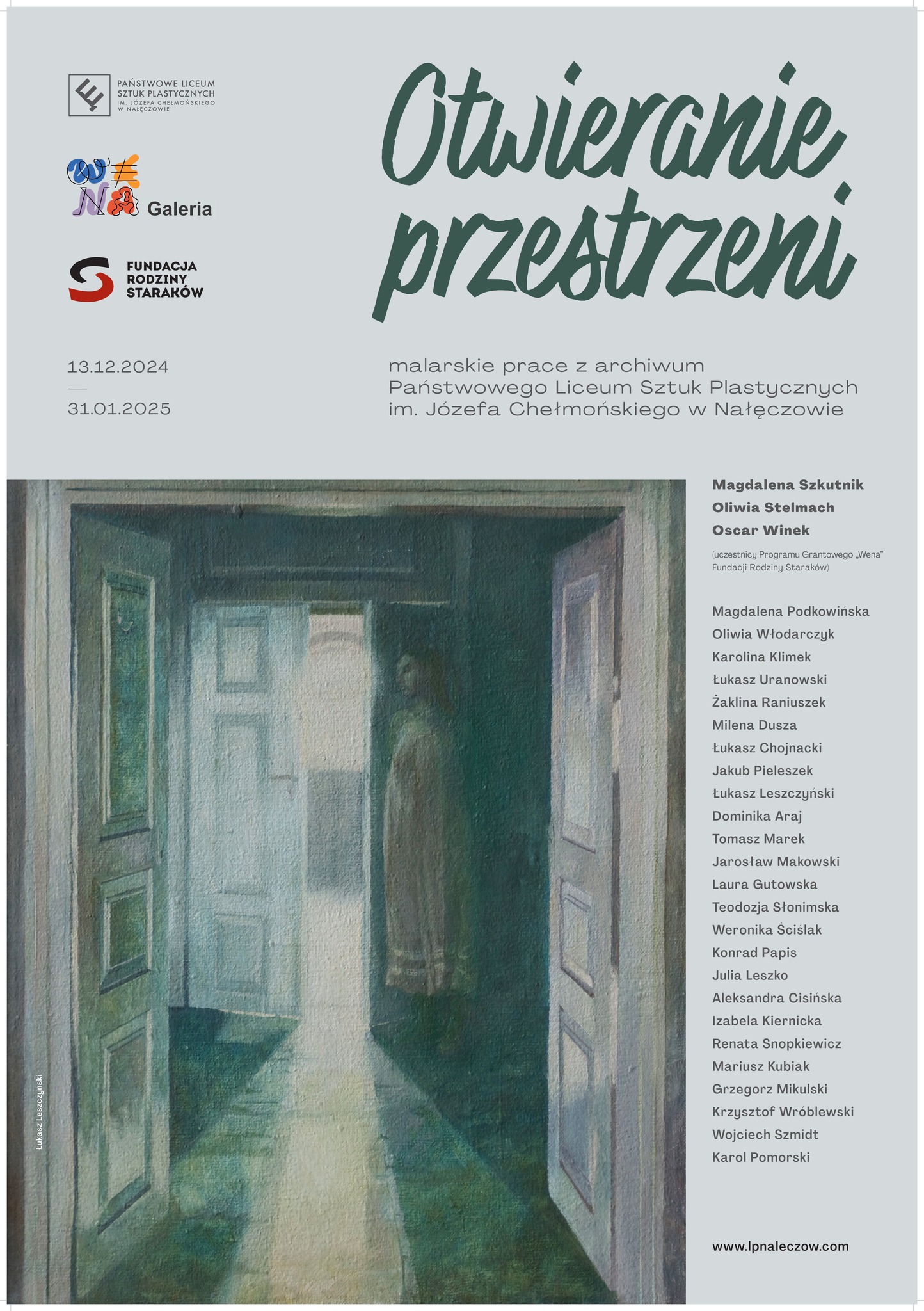 Ekspozycja przedstawia prace malarskie z archiwum Państwowego Liceum Sztuk Plastycznych w Nałęczowie oraz prace uczniów, biorących udział w projektach edukacyjno-artystycznych, nagrodzonych w Konkursach Programu Grantowego „Wena” Fundacji Rodziny Staraków, wspierającego edukację artystyczną młodzieży, wiążącej swoją przyszłość ze sztuką.