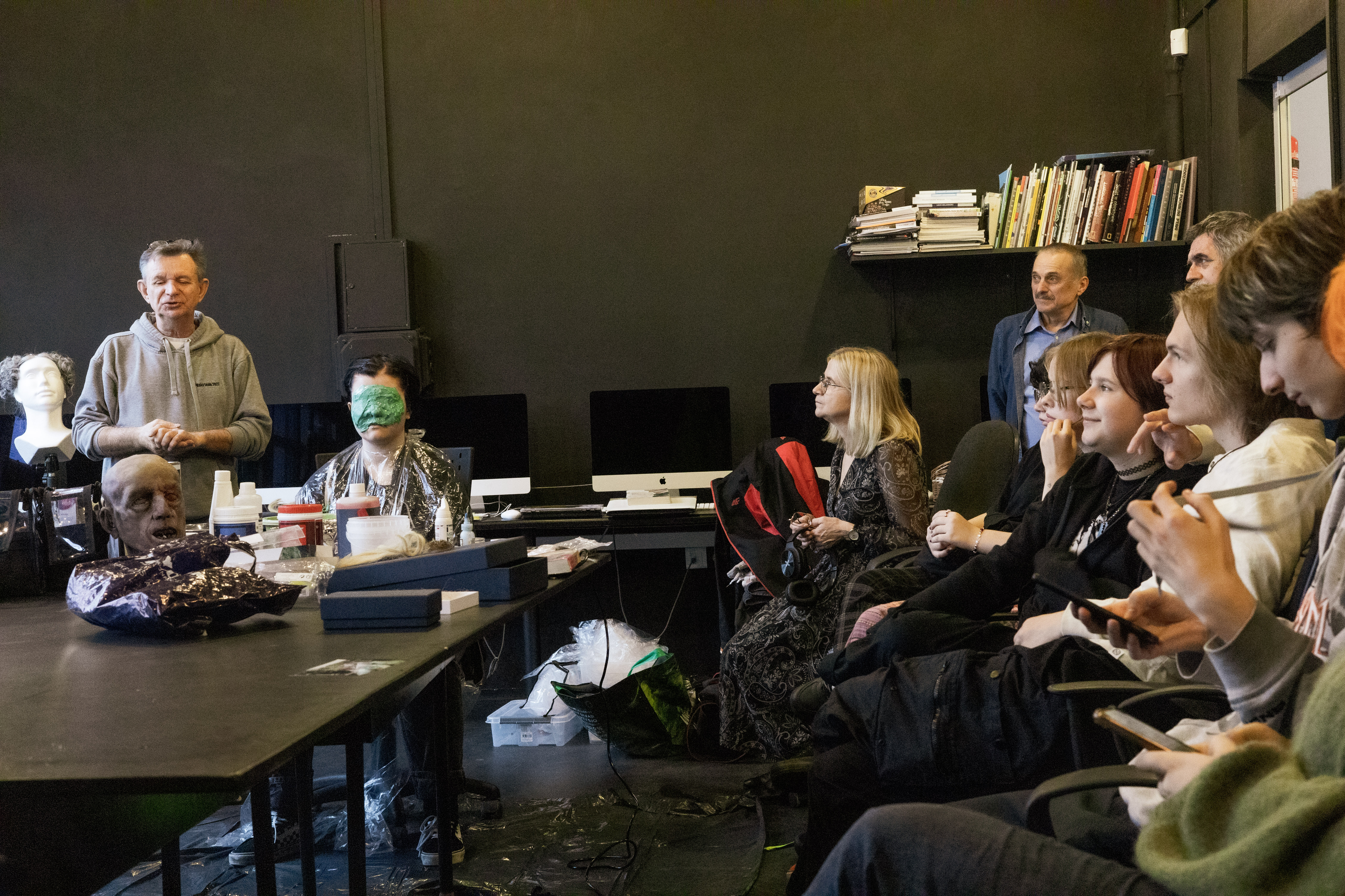 10 listopada mieliśmy niezwykłą okazję gościć w szkole naszego absolwenta, jednego z najwybitniejszych charakteryzatorów w Polsce i na świecie – TOMASZA MATRASZKA. Współpracował z największymi twórcami polskiego kina, Andrzejem Wajdą, Romanem Polańskim, Agnieszką Holland czy Jerzym Skolimowskim.