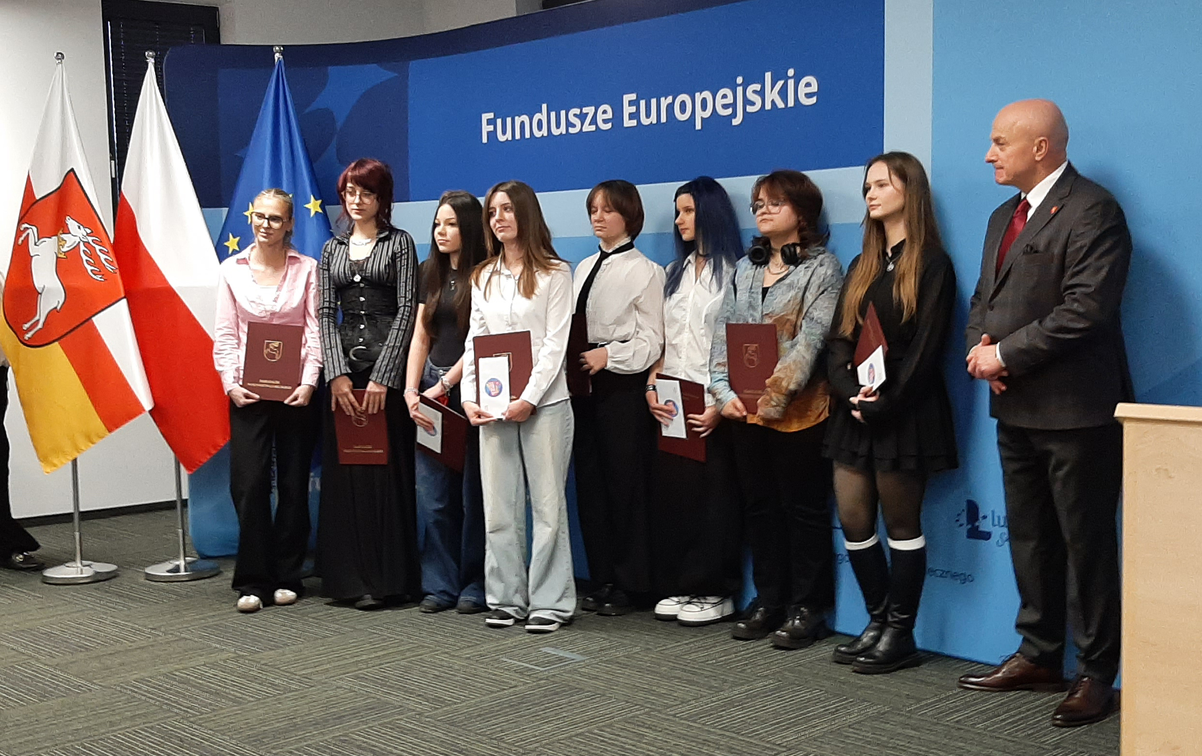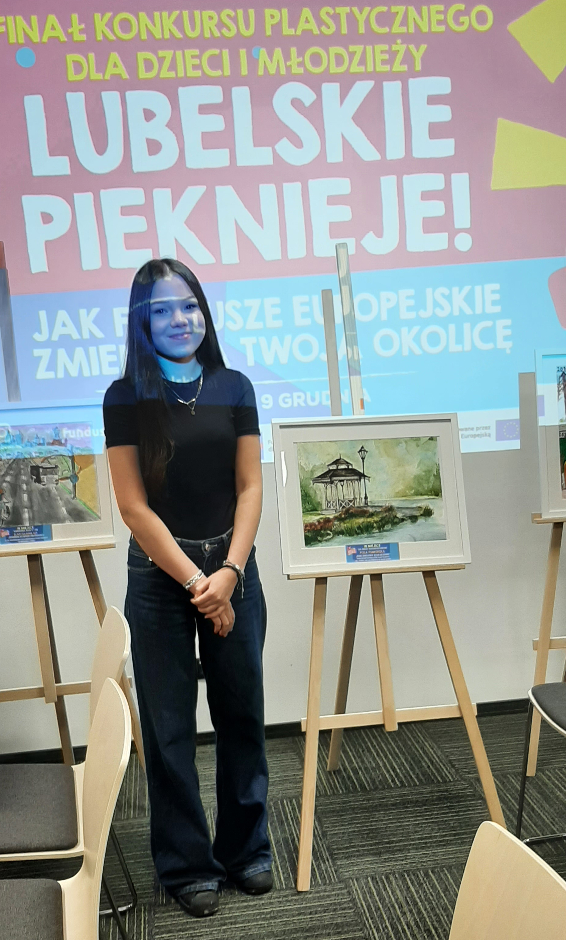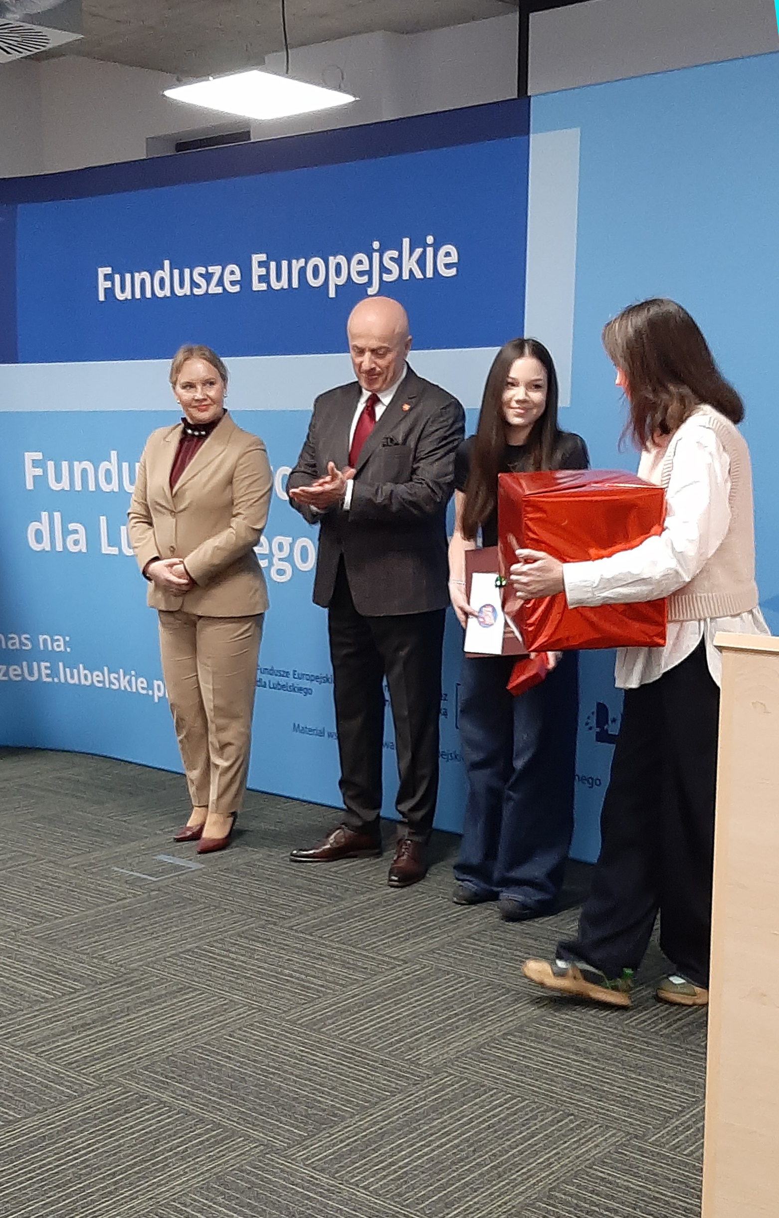 Nasze uczennice zostały nagrodzone w 6. edycji konkursu plastycznego „Lubelskie Pięknieje. Jak Fundusze Europejskie zmieniają Twoją okolicę”. W kategorii szkół ponadpodstawowych Pola Pomorska zajęła trzecie miejsce, a Helena Grabczak otrzymała wyróżnienie. Nauczycielem prowadzącym jest pan Henryk Widelski. Uroczystość wręczenia nagród odbyła się 9 grudnia 2025 r. w siedzibie Lubelskiej Agencji Przedsiębiorczości w Lublinie. GRATULUJEMY!!!