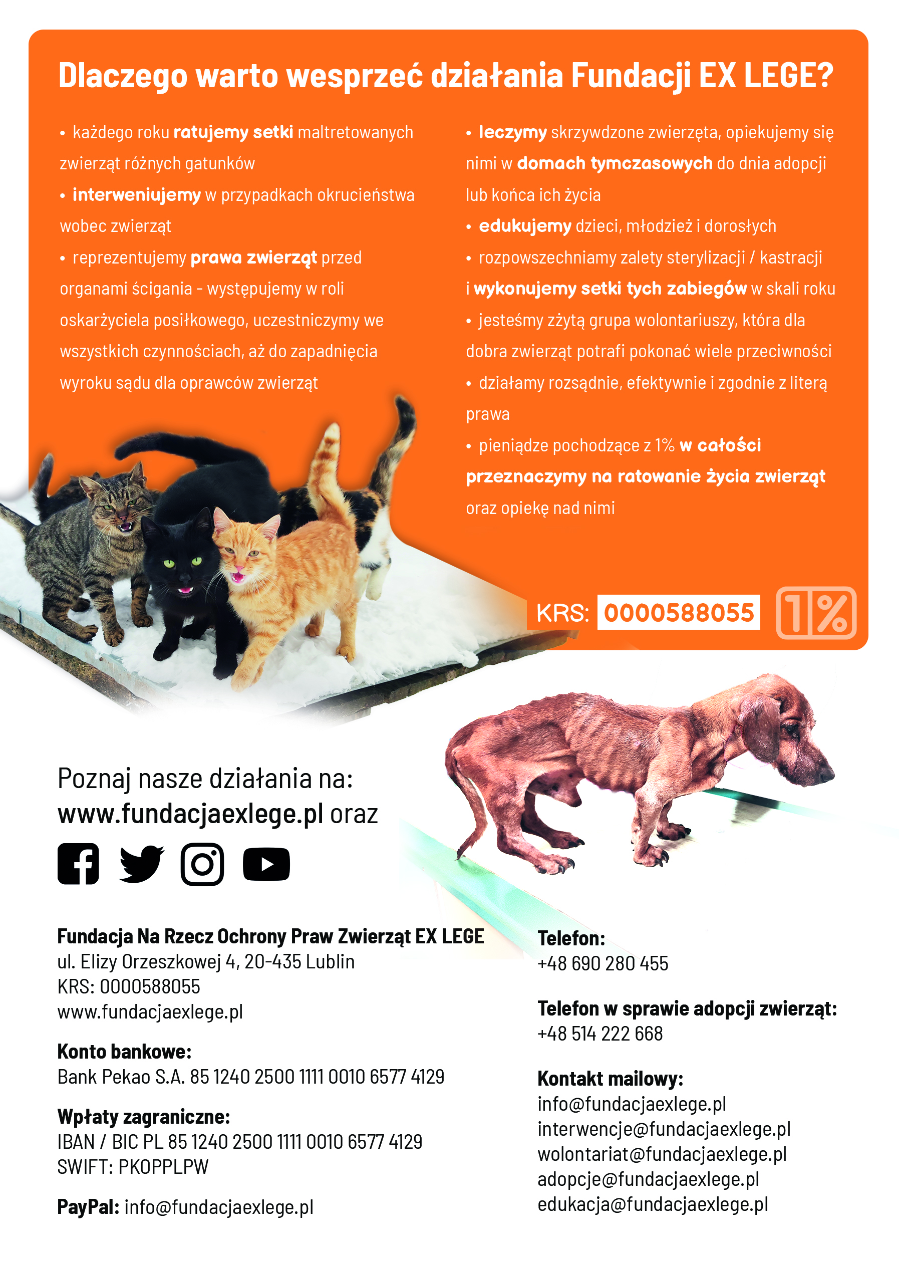 W grudniu 2025 roku wznowiliśmy współpracę z Fundacją na Rzecz Ochrony Praw Zwierząt Ex Lege w Lublinie w zakresie wykonywania prac plastycznych przeznaczonych na bazarek charytatywny Fundacji, prowadzenia zbiórek środków wspomagających zwierzęta, zbierania żwirku dla kotów, spotkań edukacyjnych dla młodzieży z internatu PLSP w Nałęczowie prowadzonych przez wolontariuszy Fundacji. W lutym 2026 roku młodzież internatu PLSP wsparła zbiórkę dla podopiecznych Fundacji. Dziękujemy wszystkim zaangażowanym za otwarte serca.