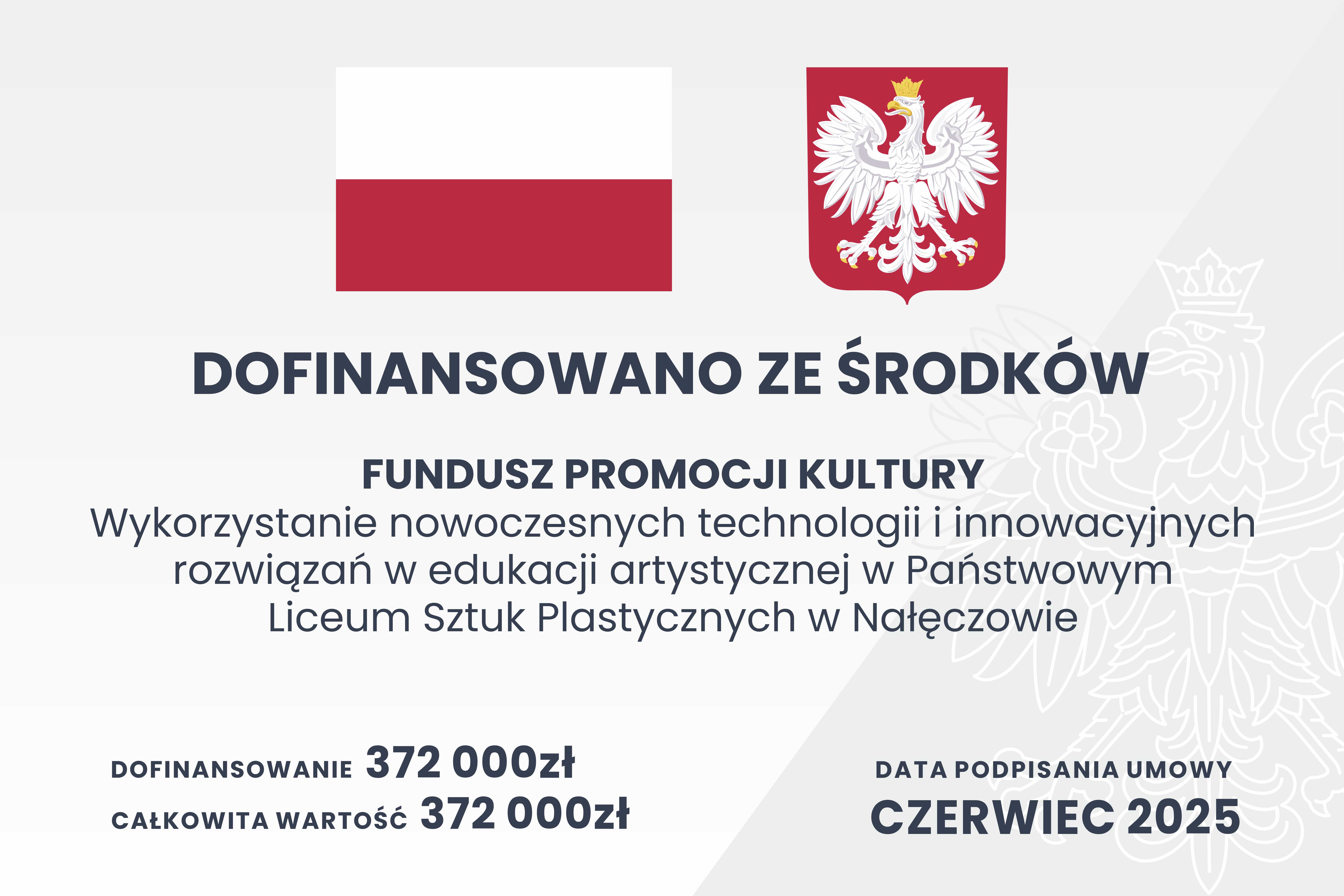 Tablica informacyjna dofinansowania ze środków Ministra Kultury i Dziedzictwa NarodowegoPaństwowe_Liceum___60x40.jpg 0.95MB Dofinansowano ze środków finansowych Ministra Kultury i Dziedzictwa Narodowego