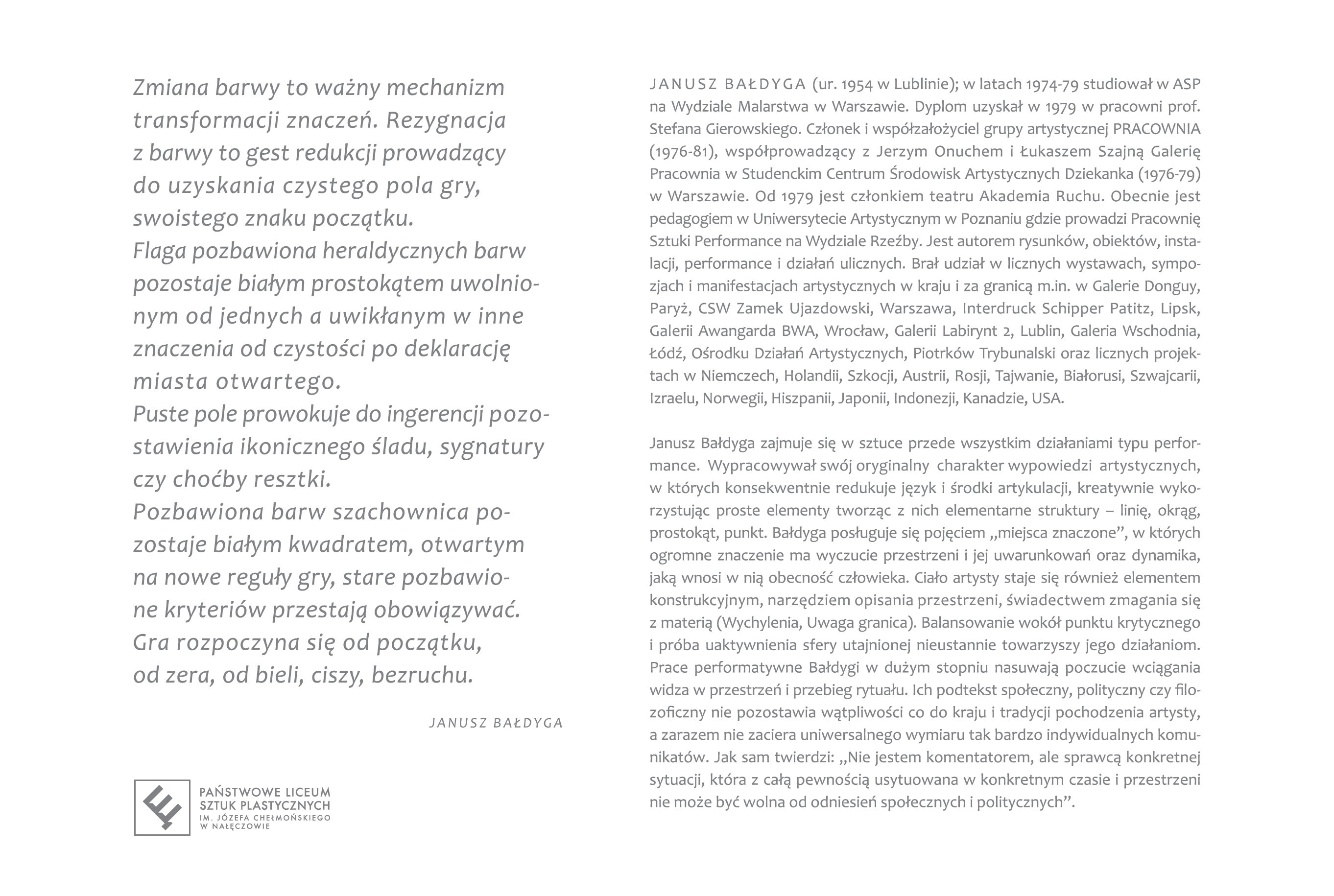 Zapraszamy na wernisaż wystawy Janusza Bałdygi, który odbędzie się w czwartek, 16 lutego 2023 r., o godzinie 11:00 w Małej Galerii Państwowego Liceum Sztuk Plastycznych im. Józefa Chełmońskiego w Nałęczowie.