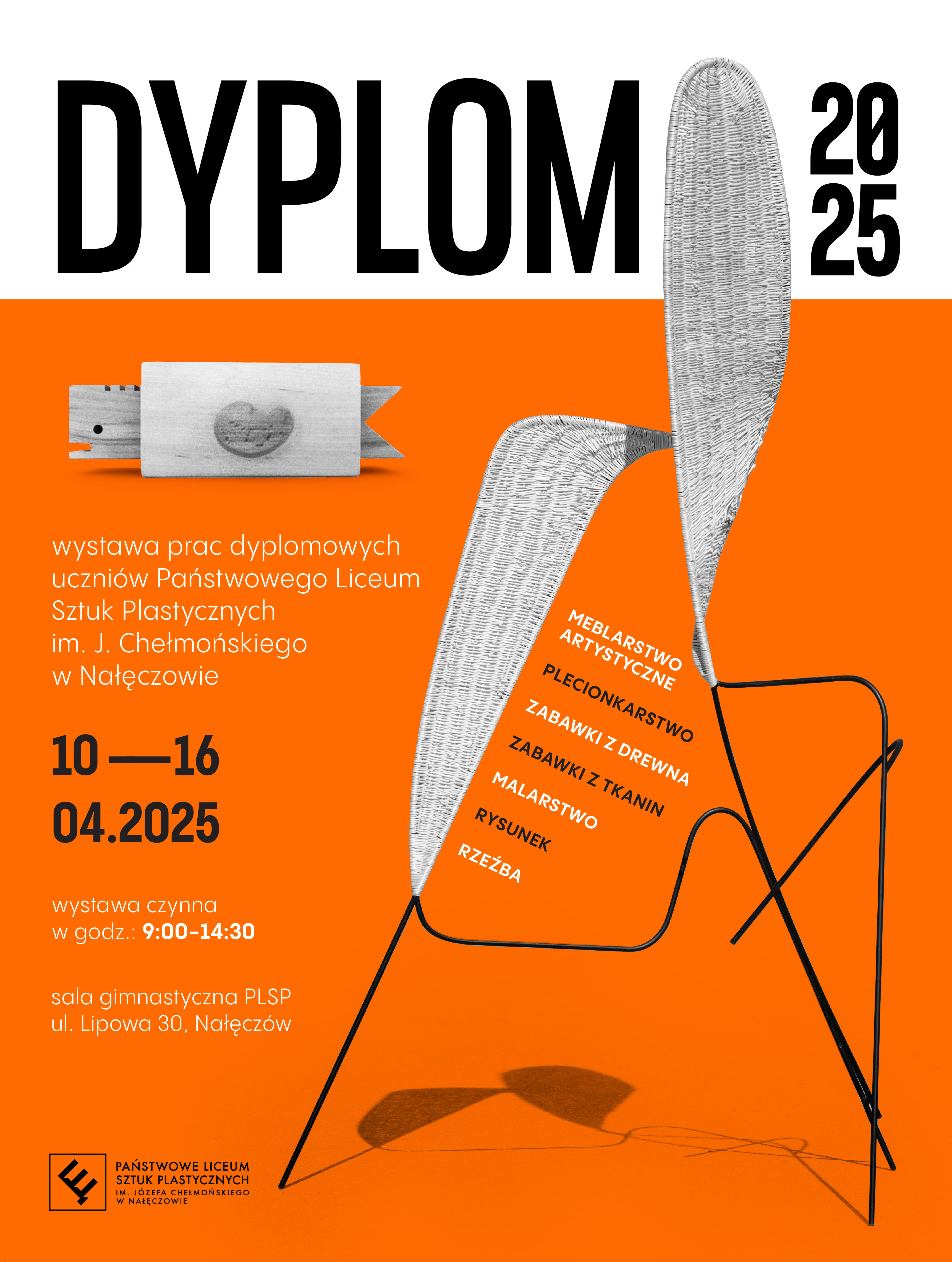 Od 10 do 16 kwietnia 2025 r. w sali gimnastycznej naszej szkoły będzie można oglądać tegoroczne prace dyplomowe wykonane na specjalizacjach meblarstwo artystyczne oraz projektowanie zabawek, a także prace malarskie, rysunkowe i rzeźbiarskie.