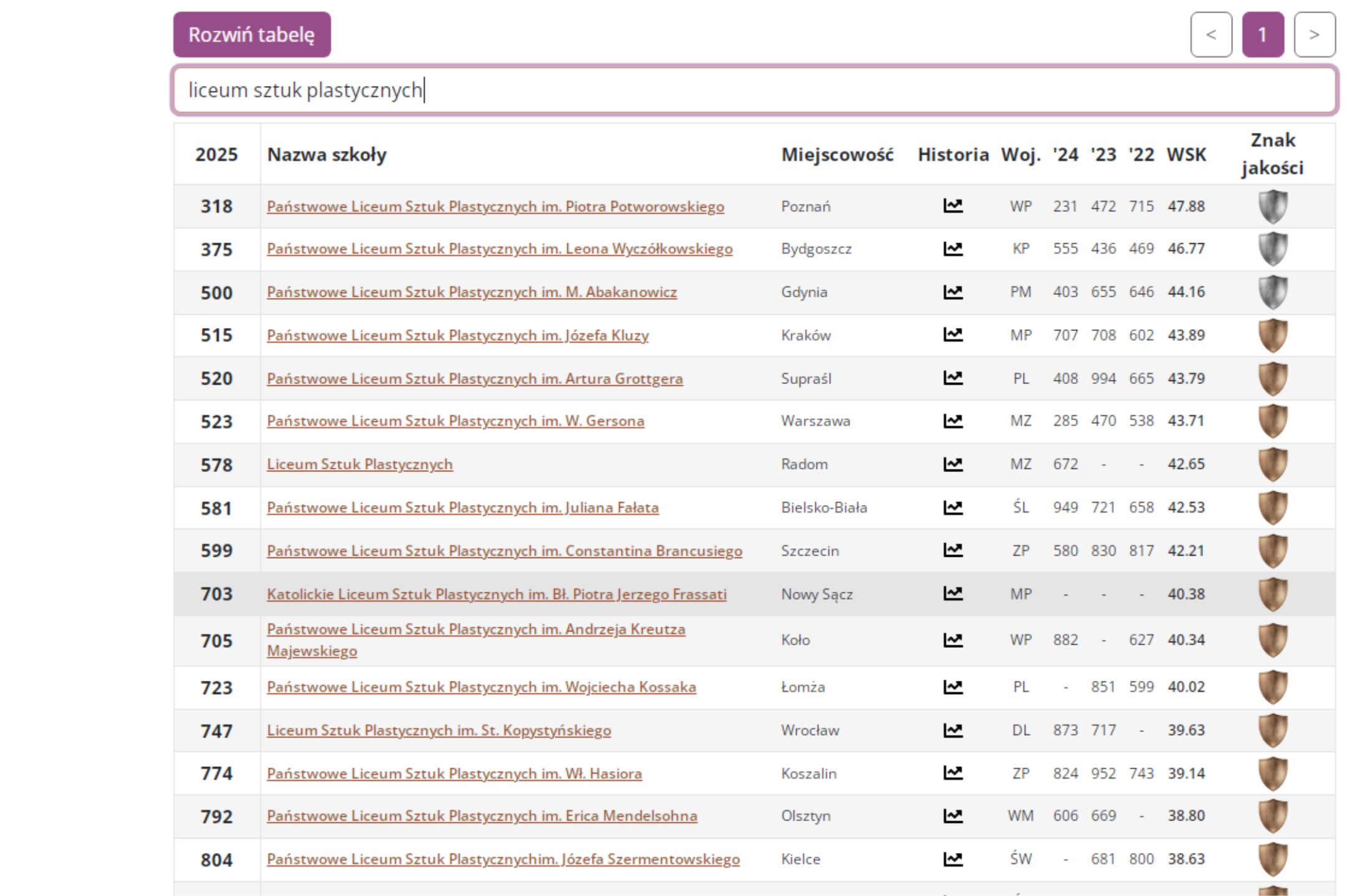 1 miejsce w Polsce wśród Liceów Plastycznych