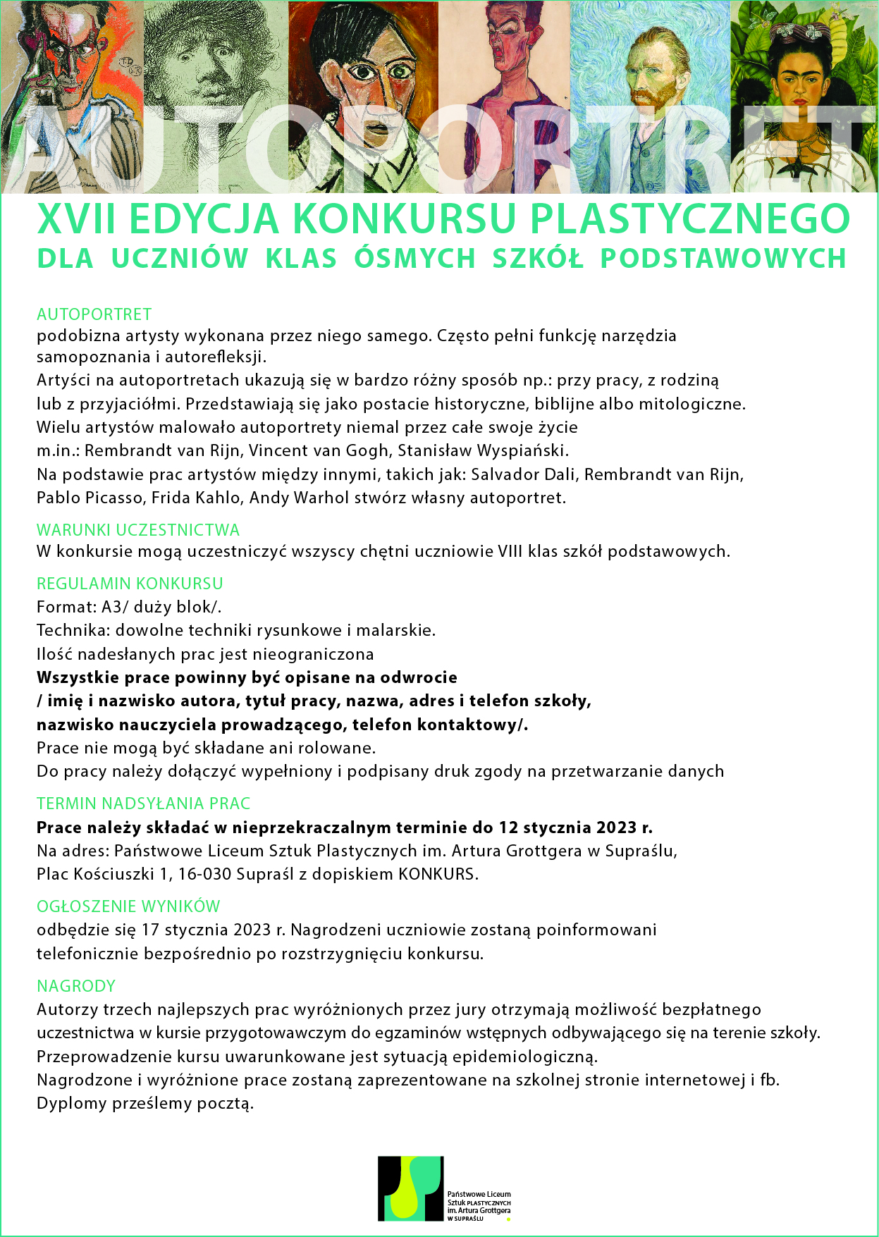 Plakat XVII edycji konkursu plastycznego - AUTOPORTRETplakat-autoportret-2022.jpg 1.68MB Obowiązek informacyjny - zgoda - konkurs