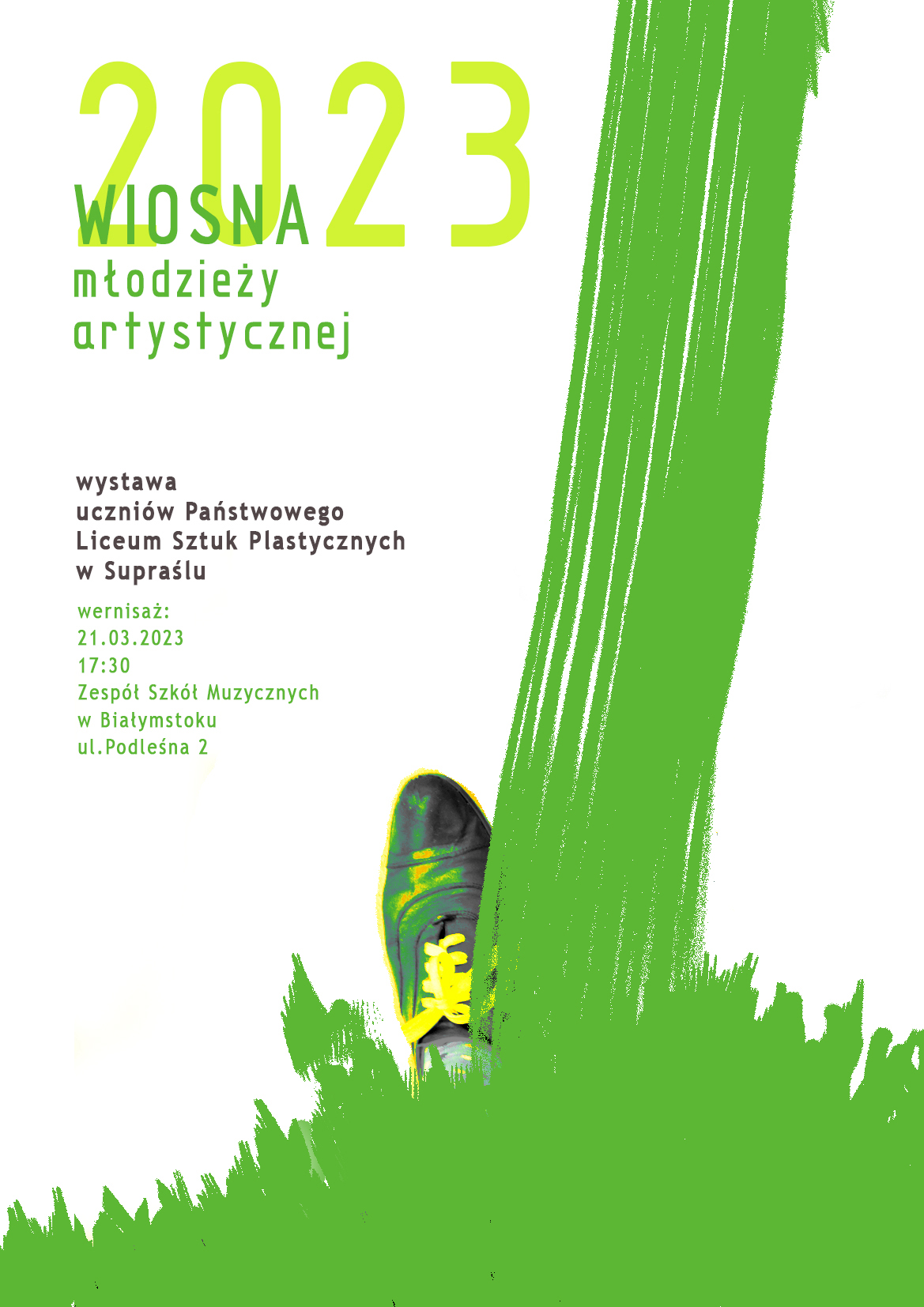Serdecznie zapraszamy na wernisaż prac uczniów Państwowego Liceum Sztuk Plastycznych w Supraślu, który odbędzie się w ramach Wiosny młodzieży artystycznej 2023 dnia 21 marca 2023 roku (wtorek) o godzinie 17:30 w Zespole Szkół Muzycznych w Białymstoku przy ul. Podleśnej 2. Wstęp wolny.