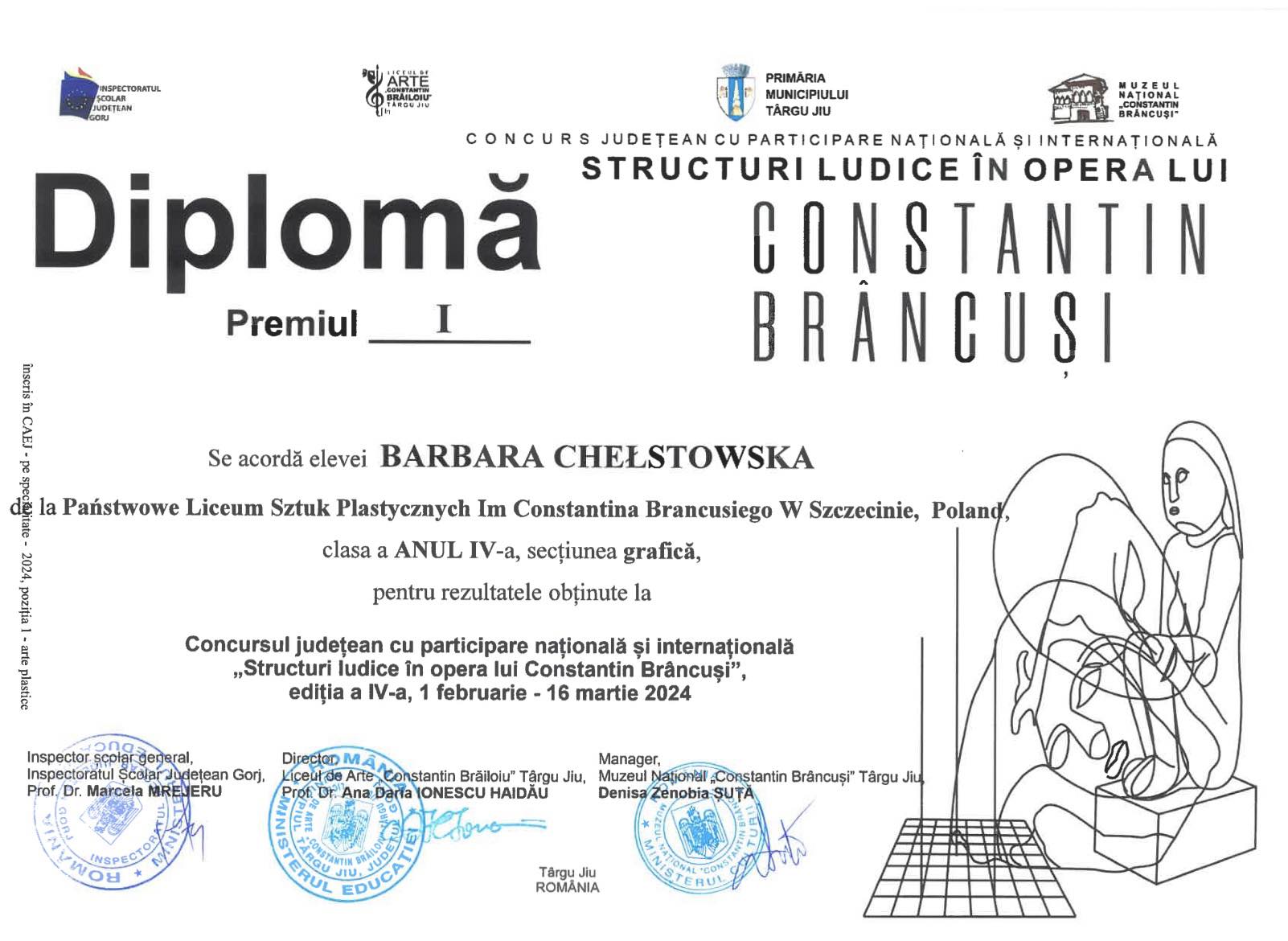 Natalia Hajkowska i Basia Chełstowska zajęły pierwsze miejsca w kategoriach malarstwo i grafika Concurs internațional de arte vizuale Structuri Ludice în opera lui Constantin Brâncuși @concursstructuriludice. To przedsięwzięcie organizowane przez szkołę artystyczną i władze miasta Targu Jiu oraz Narodowe Muzeum Constantina Brancusi z Rumunii, na które przychodzi kilka tysięcy prac.