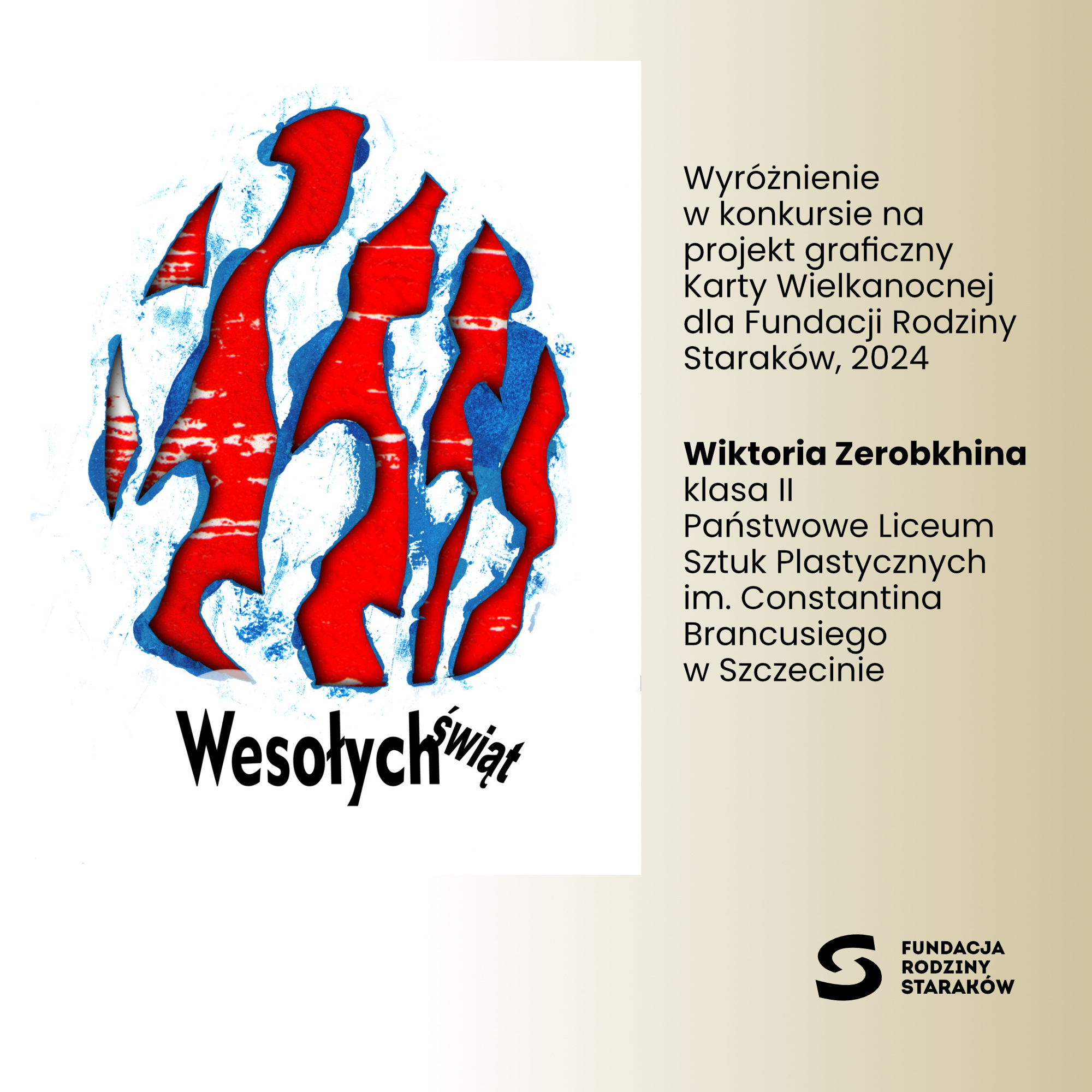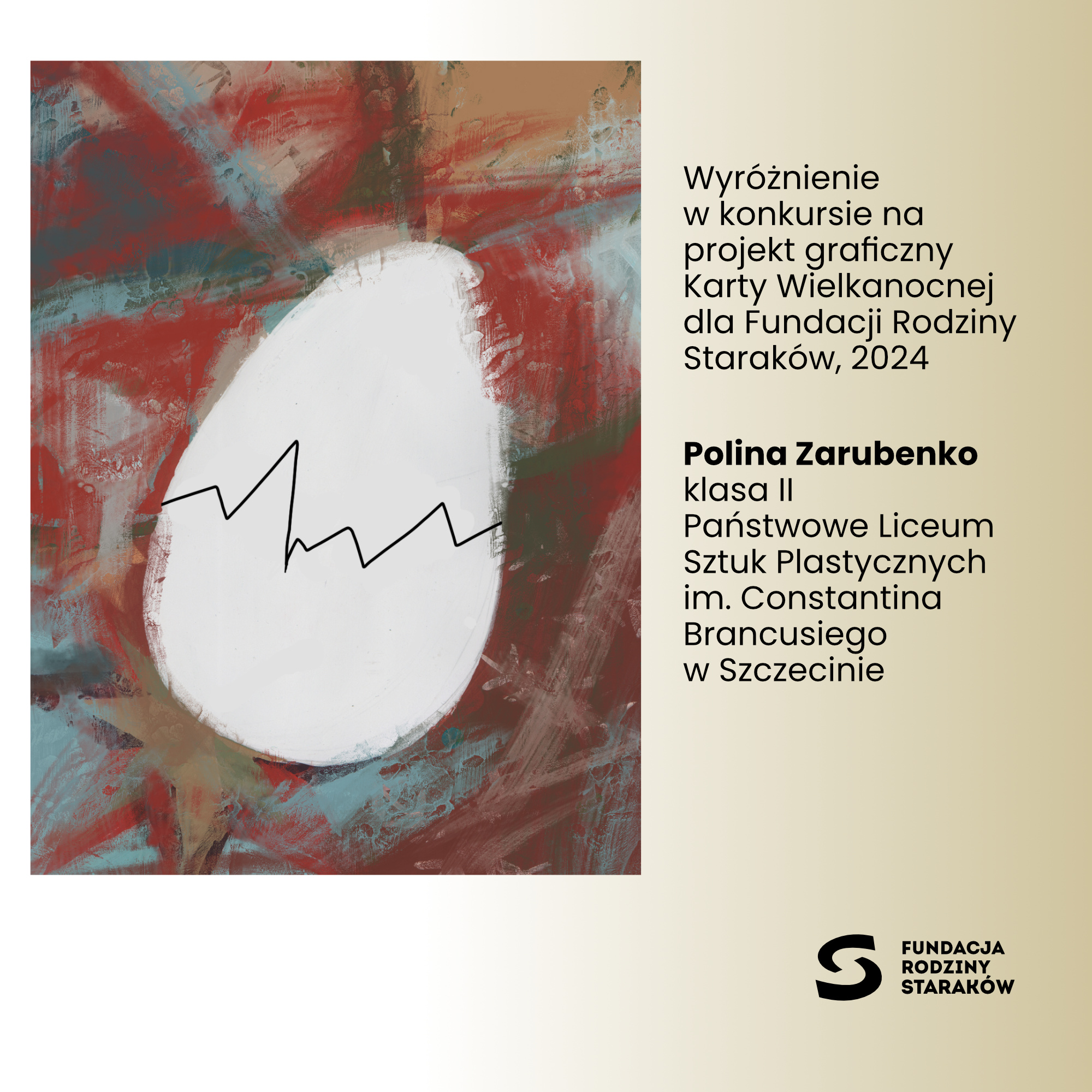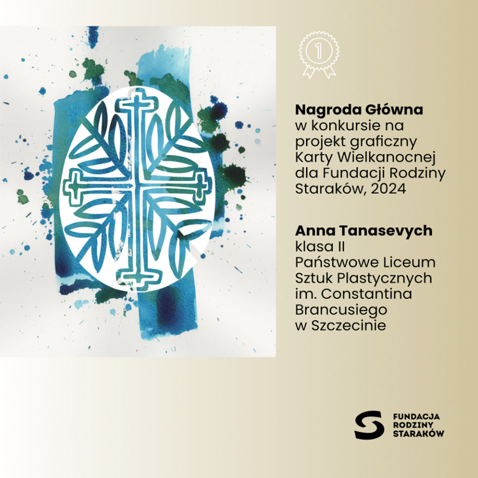 Trójka naszych uczennic w finale ogólnopolskiego konkursu na projekt karty wielkanocnej dla Fundacji Rodziny Staraków. Konkurs był adresowany do uczniów szkół plastycznych. Inspiracją był temat V edycji Konkursu Programu Grantowego „Wena” Fundacji Rodziny Staraków „Co słychać w sztuce?” Kapituła Programu Grantowego przyznała Nagrodę Główną oraz Wyróżnienia, wybierając spośród 53 nadesłanych projektów graficznych. Więcej informacji oraz nagrodzone i wyróżnione prace w linku Wyniki Konkursu na Kartę Wielkanocną 2024 - Spectra Edu - Aktualności - Fundacja Rodziny Staraków (starakfoundation.org)
