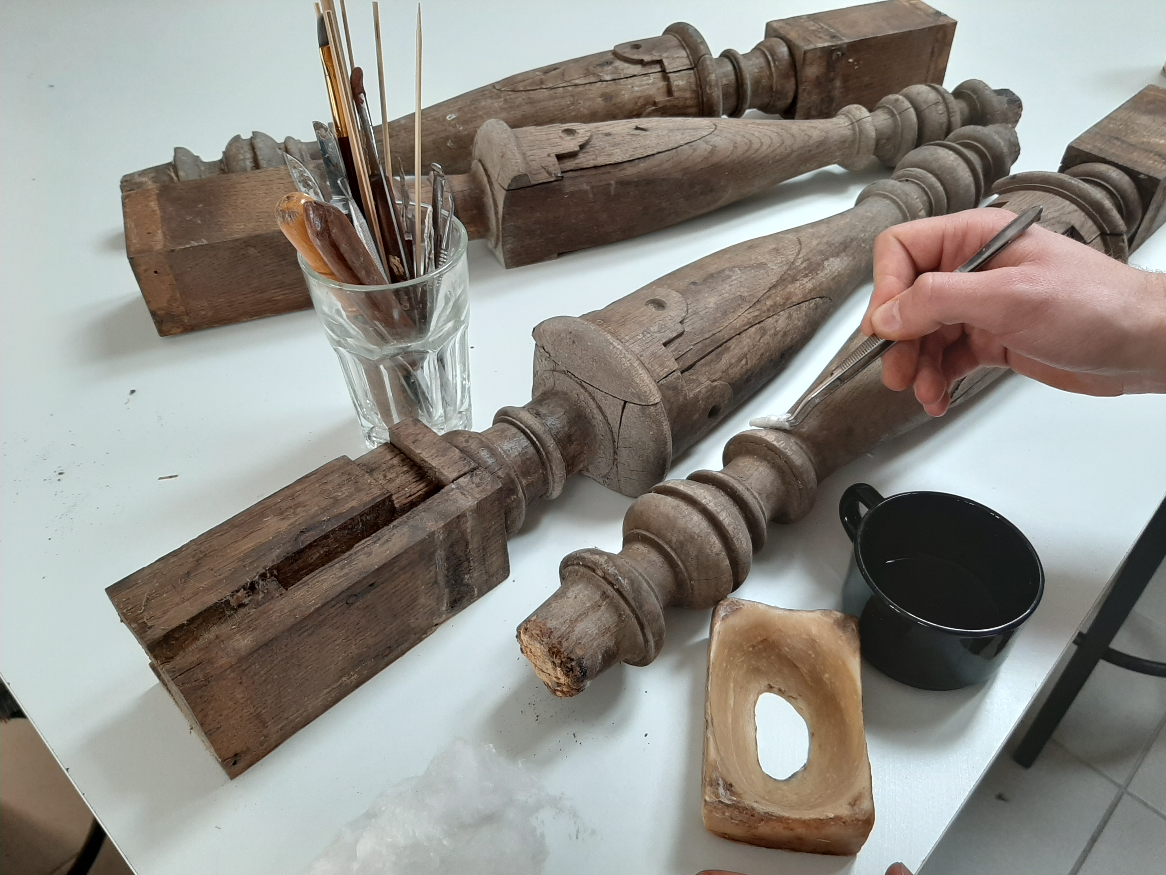 Uczniowie przeprowadzają pełen zakres działań konserwatorskich, w tym również rekonstrukcje drewnianych detali snycerskich i ornamentów. Przy tych zadaniach wykorzystywane są różne techniki rekonstrukcyjne, zarówno historyczne jak i współczesne, wykorzystujące żywice silikonowe i żywice epoksydowe.