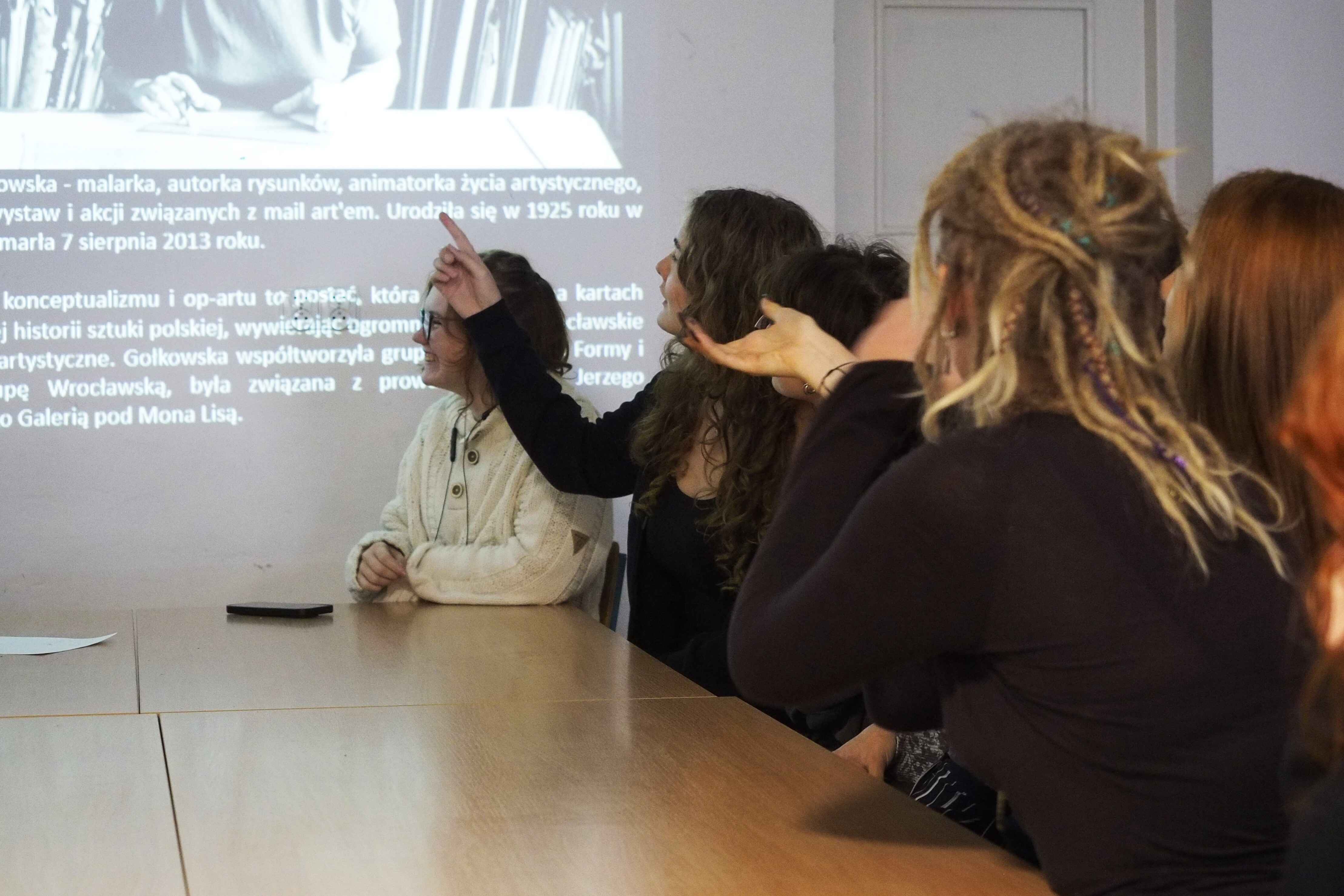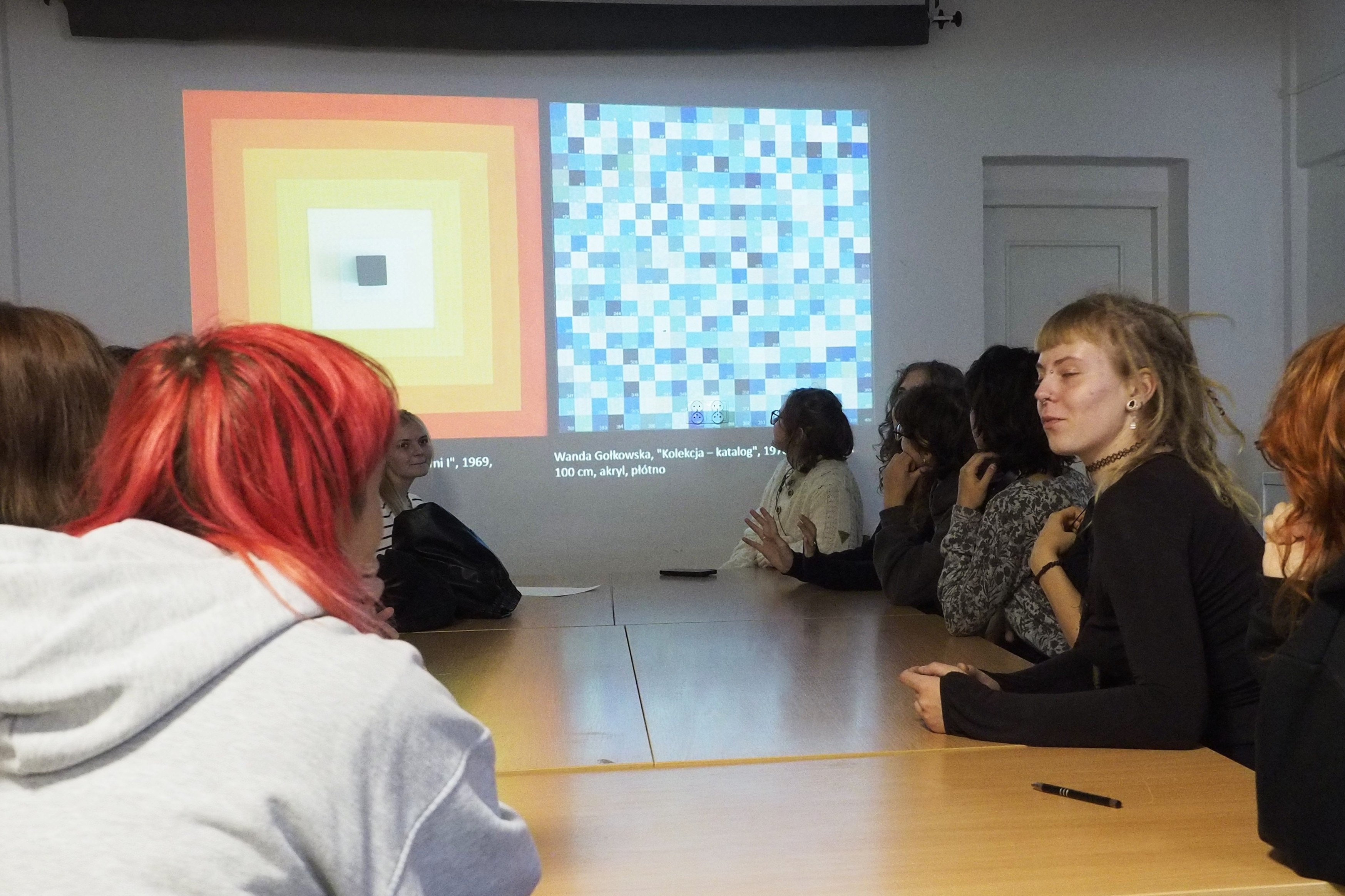 Ruszyły działania grupy biorącej udział w grantowym projekcie edukacyjno-artystycznym WENA – Rzeczy, które robimy ze sztuką. Podczas pierwszych spotkań uczniowie uczestniczyli w inspirujących wykładach poświęconych twórczości Wandy Gołkowskiej, które poprowadził nauczyciel historii sztuki, pan Rafał Szwedowicz. Dowiedzieliśmy się, że twórczość artystki łączyła sztukę konceptualną z analizą języka plastycznego i jego reguł. Gołkowska badała relacje między obrazem, znakiem i znaczeniem, tworząc cykle oparte na logicznych strukturach i matematycznych zasadach. Jej prace – minimalistyczne i intelektualne – stanowiły eksperyment z samą istotą sztuki oraz procesem twórczym.