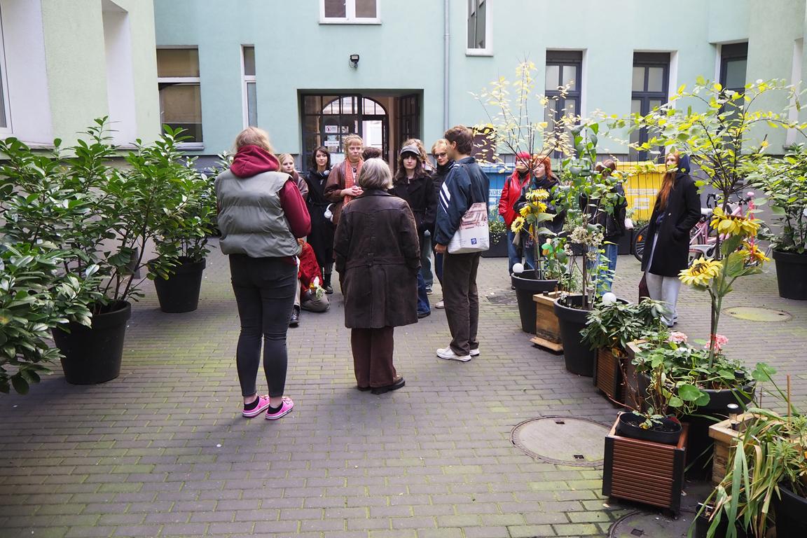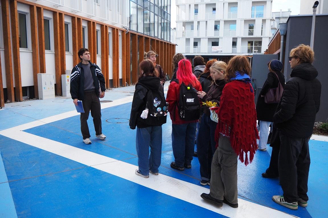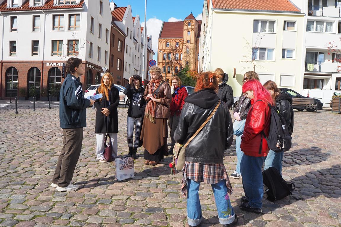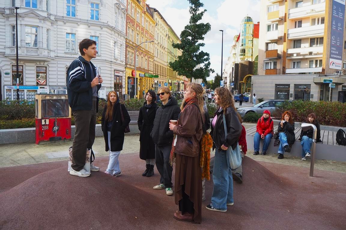 Kolejnym etapem działań był spacer po mieście zorganizowany wspólnie ze Stowarzyszeniem Oswajanie Miasta, poświęcony inicjatywom rewitalizacyjnym oraz roli zieleni w przestrzeni miejskiej. Spotkanie poprowadził Marcin Chruśliński, ekspert ds. formalnych aspektów przekształceń przestrzeni miejskiej. Podczas spaceru uczniowie odkrywali miasto z nowej perspektywy. Trasa obejmowała m.in. Basztę Siedmiu Płaszczy, Trasę Zamkową, Podzamcze, Plac Orła Białego, Bramę Portową i Aleję Wojska Polskiego. Rozmawialiśmy o historii, urbanistyce, architekturze oraz roli człowieka w kształtowaniu przestrzeni. Uczestnicy dyskutowali o zjawisku tzw. „zbrodni urbanistycznych” oraz poznali przykłady lokalnych inicjatyw sąsiedzkich i działań na rzecz bardziej przyjaznego, zielonego miasta.