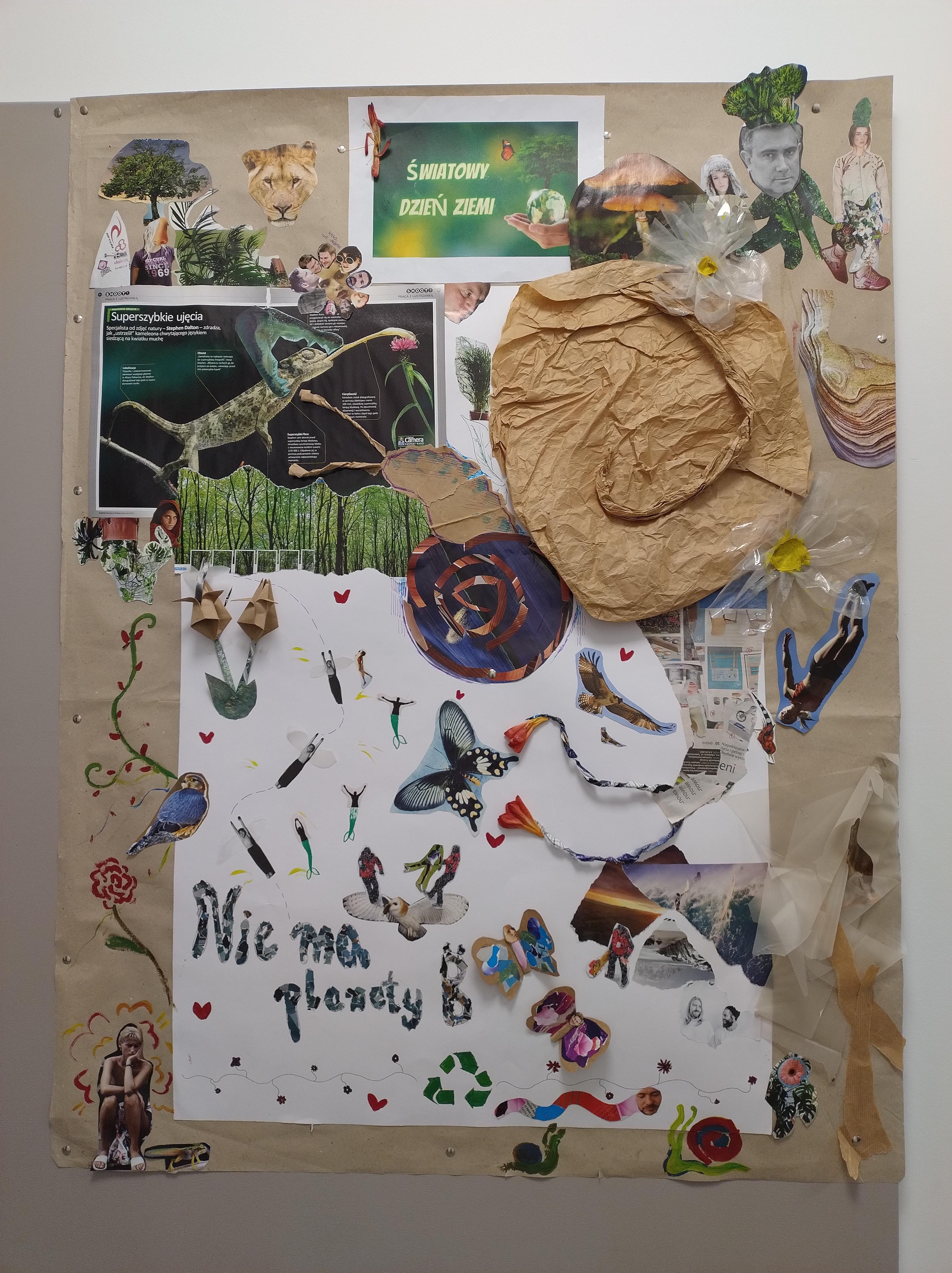 W tym dniu w bibliotece szkolnej chętni uczniowie tworzyli plakat poświęcony zagadnieniom ochrony środowiska, wykorzystując różne techniki. Powstała praca została wyeksponowana na tablicy szkolnej.