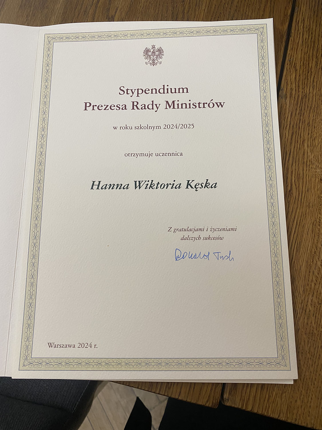 Hanna Kęska - stypendystką Prezesa Rady Ministrów