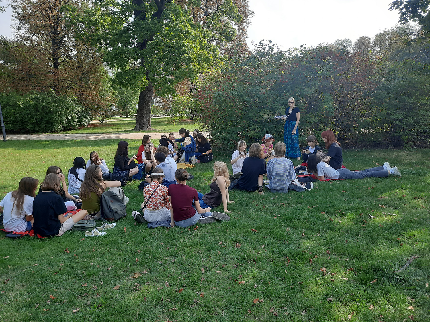 W pierwszym tygodniu września uczniowie klas pierwszych uczestniczyli w zajęciach integracyjnych. Druga część warsztatów odbyła się w przepięknej przestrzeni Ogrodu Krasińskich.