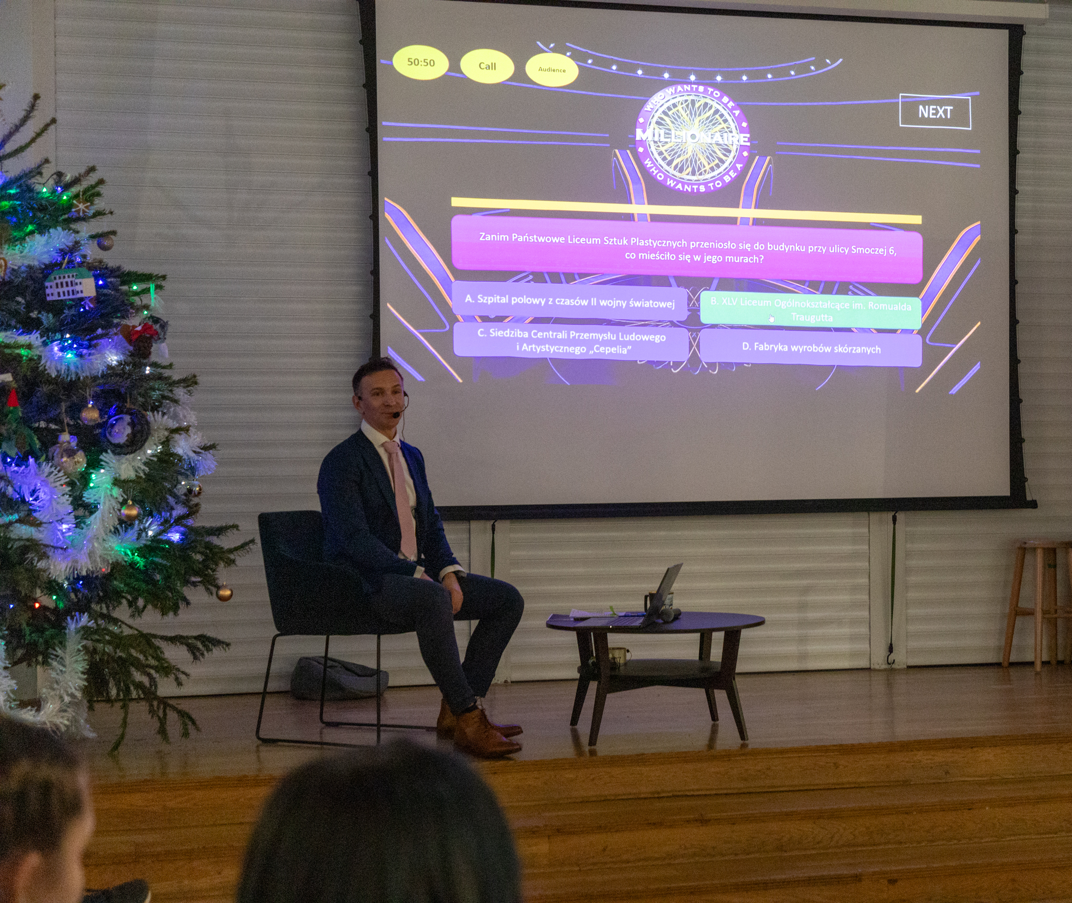 W dniu 18 grudnia 2025 w naszej szkole odbył się konkurs wiedzy o historii szkoły i jej patronie. Konkurs przyjął formułę, znanych szerokiemu gronu odbiorców, telewizyjnych „Milionerów”.