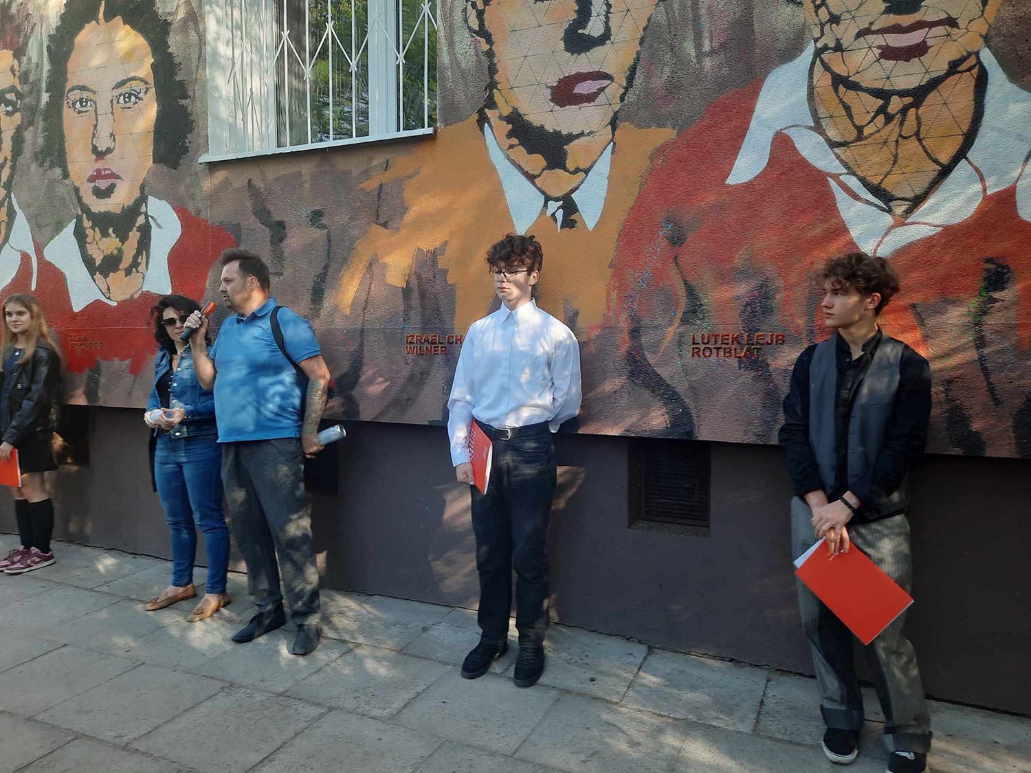 28 kwietnia delegacja uczniów PLSP wraz z panią Patrycją Cichą uczestniczyła w uroczystym odsłonięciu muralu “Bohaterowie getta warszawskiego”. Wydarzenie to odbyło się w pobliżu Kopca Anielewicza przy ulicy Miłej i było uwieńczeniem naszej współpracy z Muzeum Getta Warszawskiego.