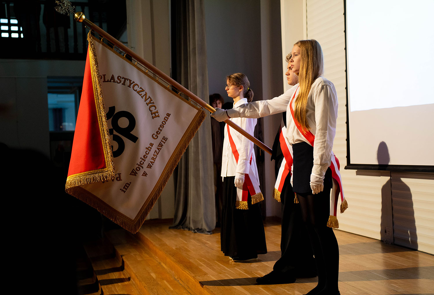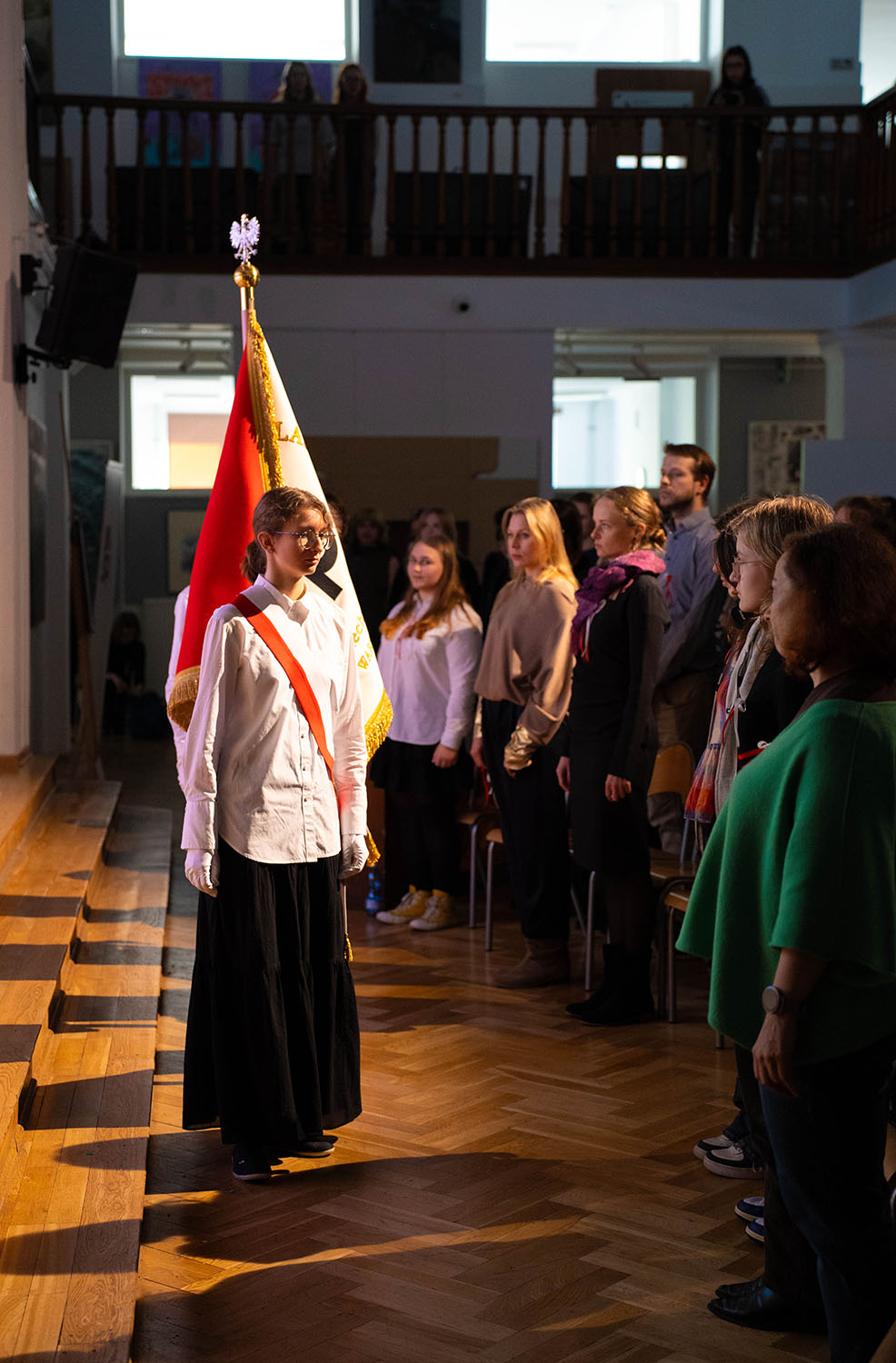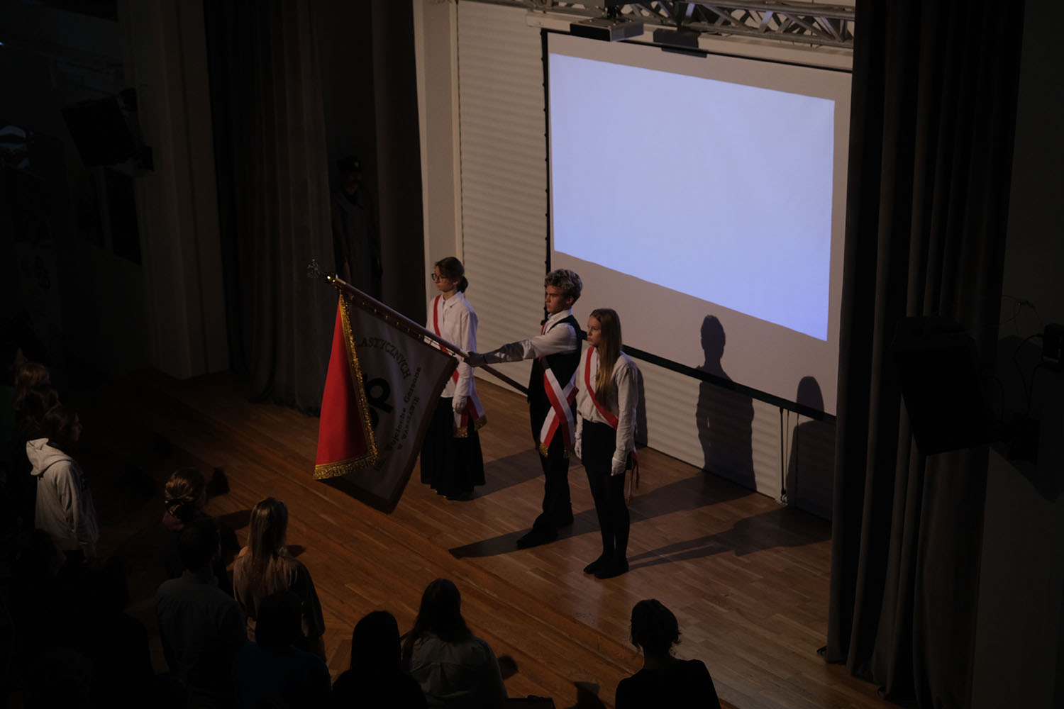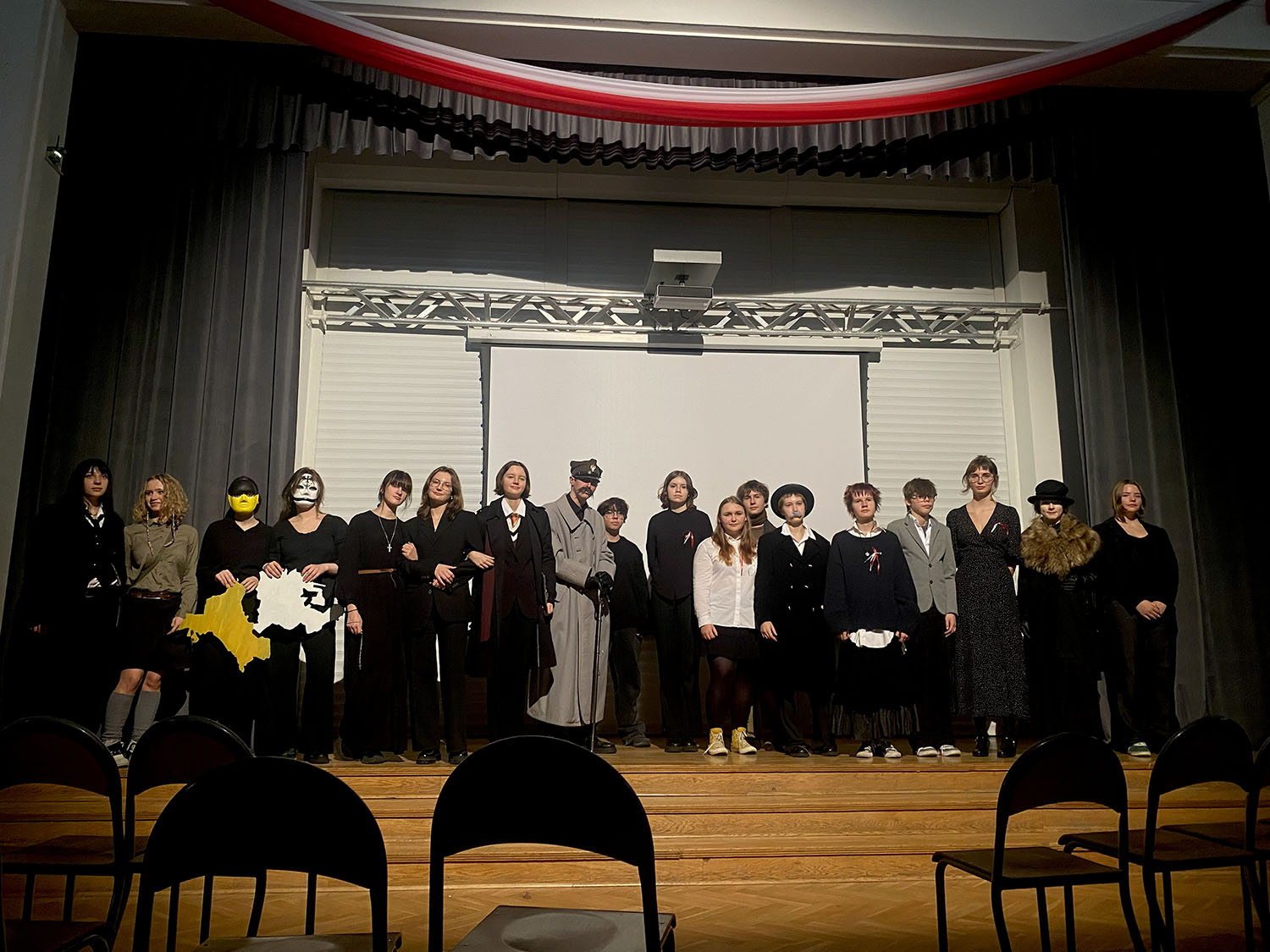 7 listopada w naszej szkole odbyły się uroczyste obchody Święta Niepodległości. Cała społeczność szkolna zebrała się w auli, aby wspólnie zaśpiewać Mazurek Dąbrowskiego i obejrzeć przygotowane przez klasę 2A przedstawienie. Spektakl przedstawiał drogę do odzyskania niepodległości przez Polskę, co było dobrą lekcją historii i patriotyzmu. Uczniowie z zaangażowaniem wcielili się w role postaci historycznych. Na uwagę zasługuje śpiew Wiktorii Czajkowskiej, która wykonała takie utwory jak Ojczyzno ma i Miejcie nadzieję. Na pianinie akompaniowała jej Hanna Strzeżysz.