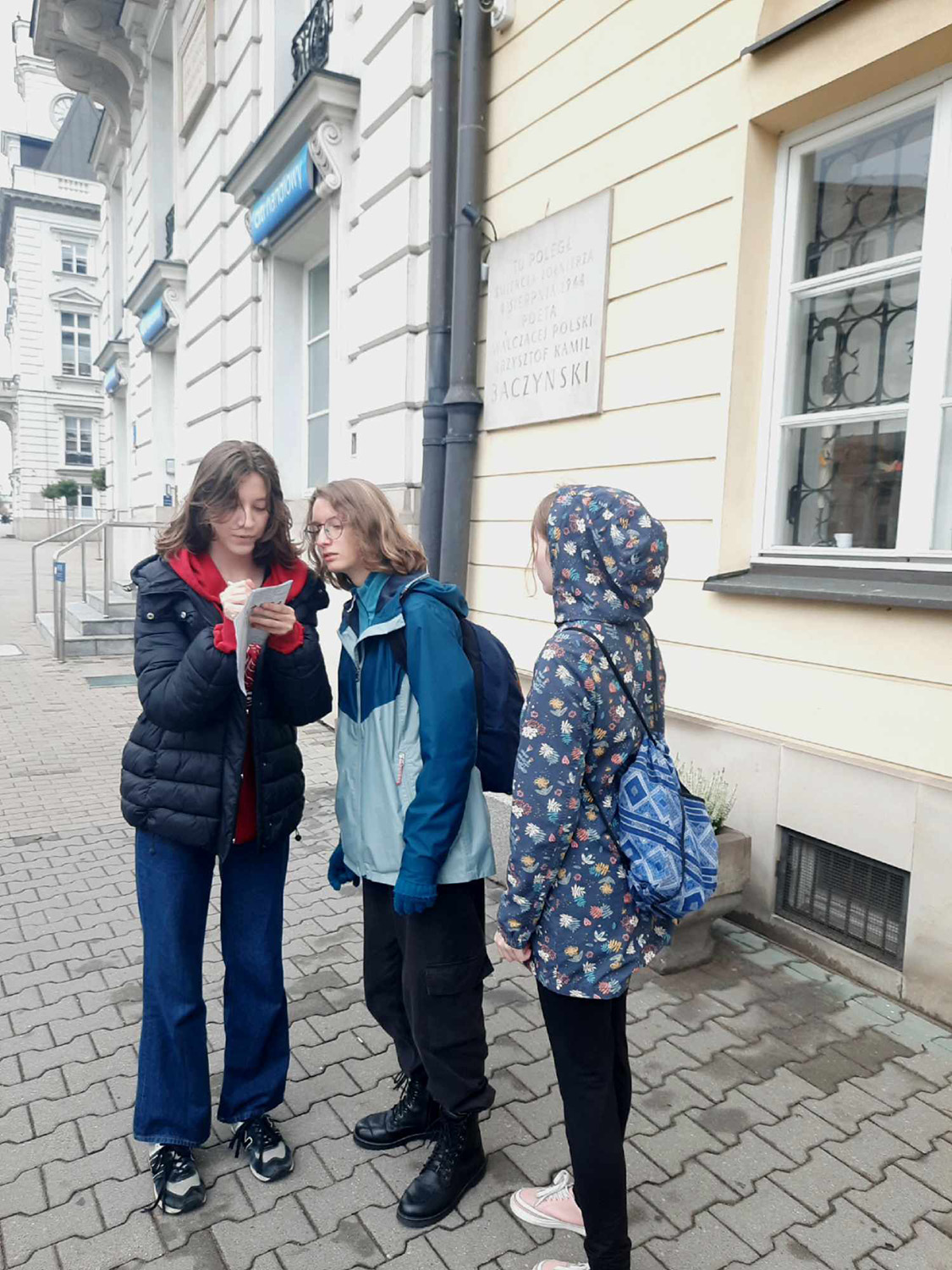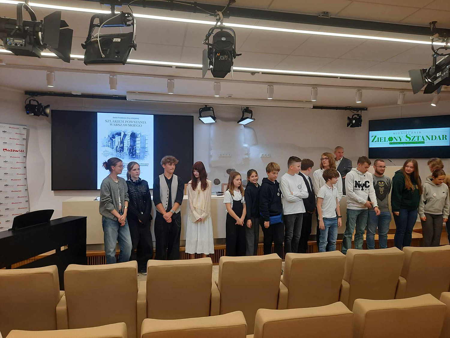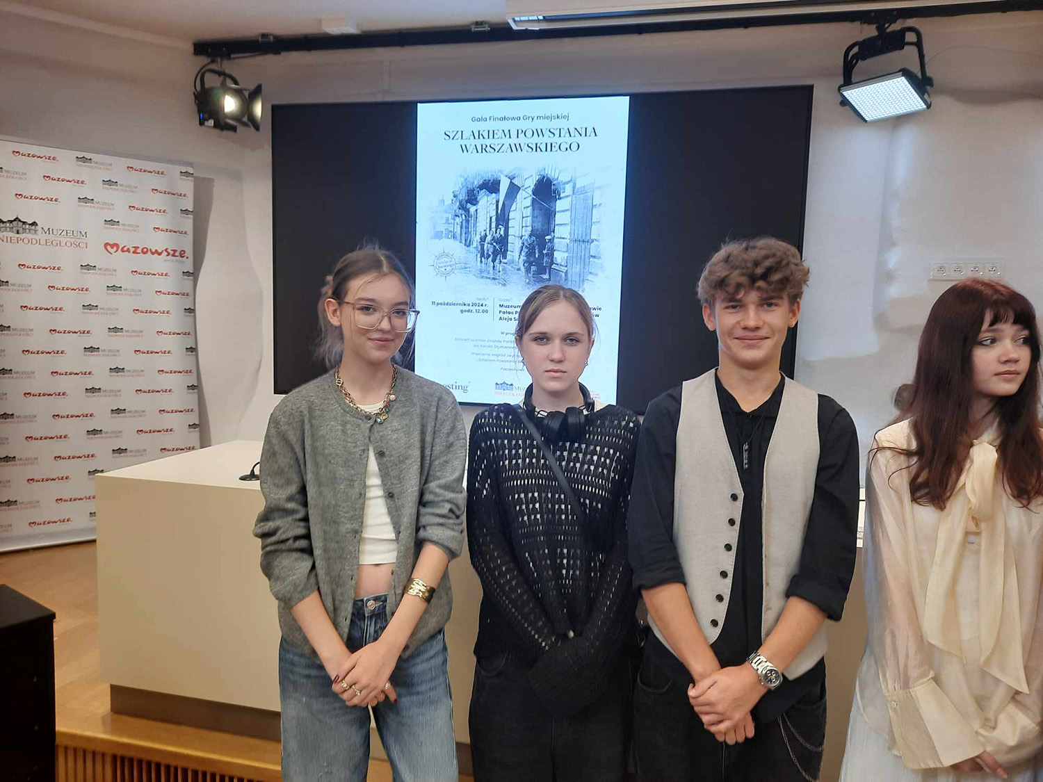 W dniu 8 października uczniowie klasy 1b z wychowawczynią, Patrycją Cichą, wzięli udział w grze terenowej pt. Śladami Powstania Warszawskiego organizowanej przez Muzeum Niepodległości w Warszawie oraz Fundację Questingu. Czteroosobowa grupa uczniów, pod przewodnictwem Brunona Eleryk-Ulickiego, wykonała bezbłędnie wszystkie zadania w najkrótszym możliwym czasie, zdobywając w ten sposób pierwsze miejsce! W piątek, 11 października, uczniowie ci uczestniczyli w oficjalnej gali zakończenia gry terenowej. Wysłuchali koncertu muzyki klasycznej oraz odebrali nagrody z rąk dyrekcji Muzeum Niepodległości.
