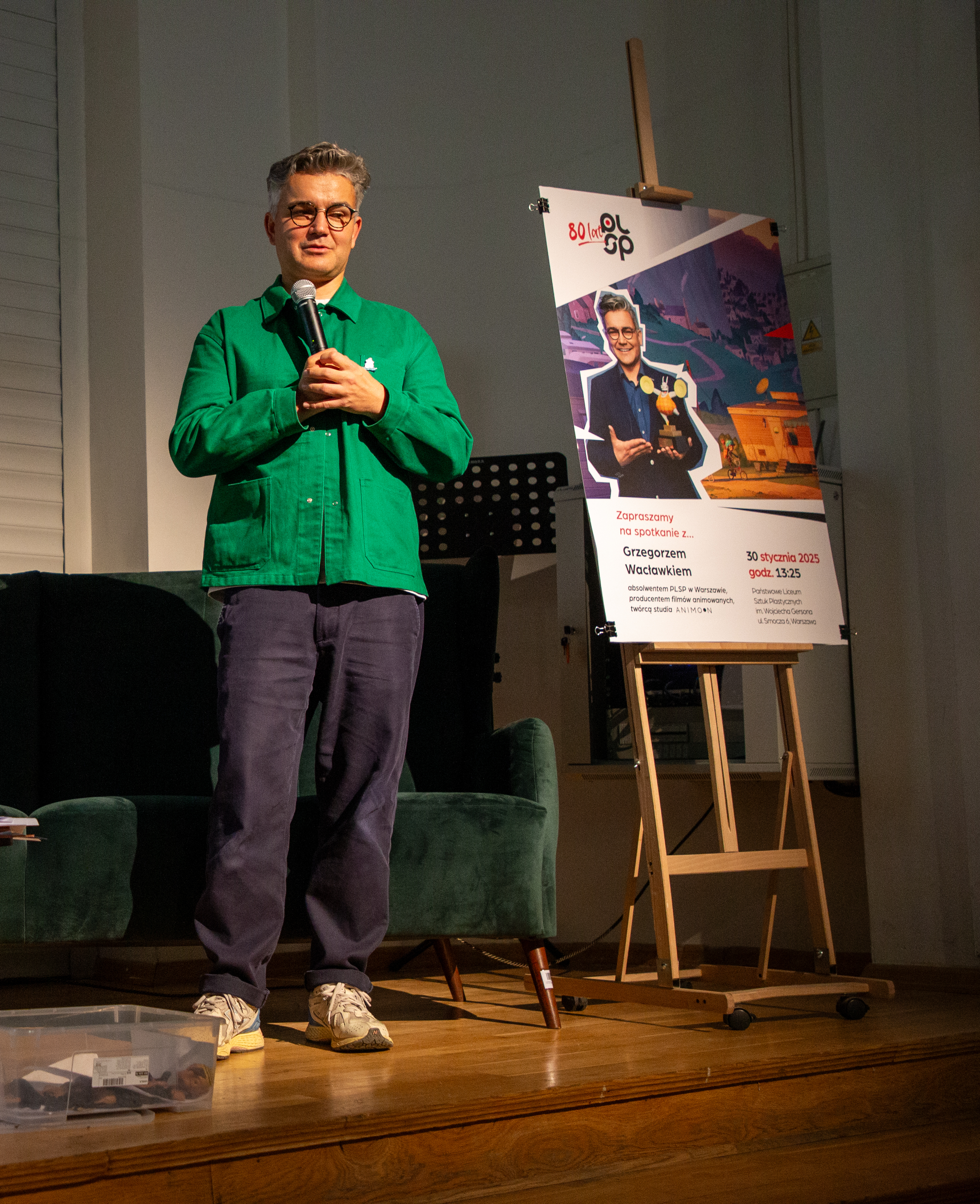 Zapraszamy na spotkanie z Grzegorzem Wacławkiem, absolwentem PLSP w Warszawie, producentem filmów animowanych, twórcą studia ANIMOON.