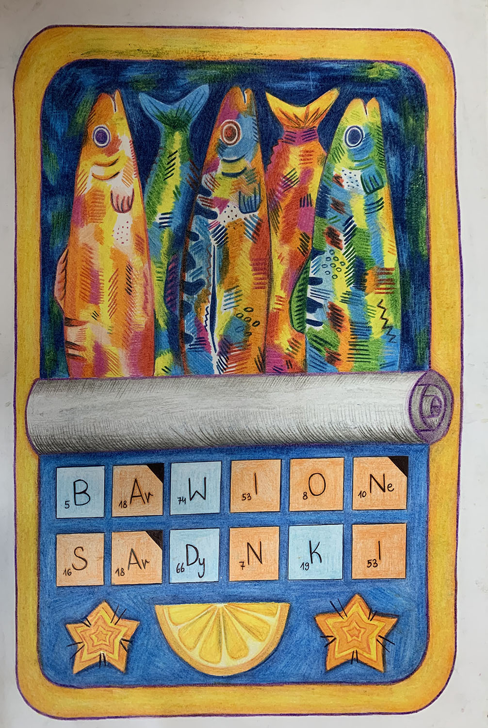 W listopadzie w naszej szkole odbył się konkurs chemiczno-plastyczny zorganizowany przez panią Agnieszkę Wróblewską, nauczycielkę chemii i fizyki. Zadaniem uczniów było wymyślenie i zilustrowanie hasła z symboli chemicznych. W konkursie wzięło udział 16 uczniów z klas pierwszych. Spośród wszystkich prac wyróżniono ilustracje autorstwa: Sofii Koby, Gabrieli Gołębiewskiej, Katarzyny Dyjecińskiej i Emilii Wigant.