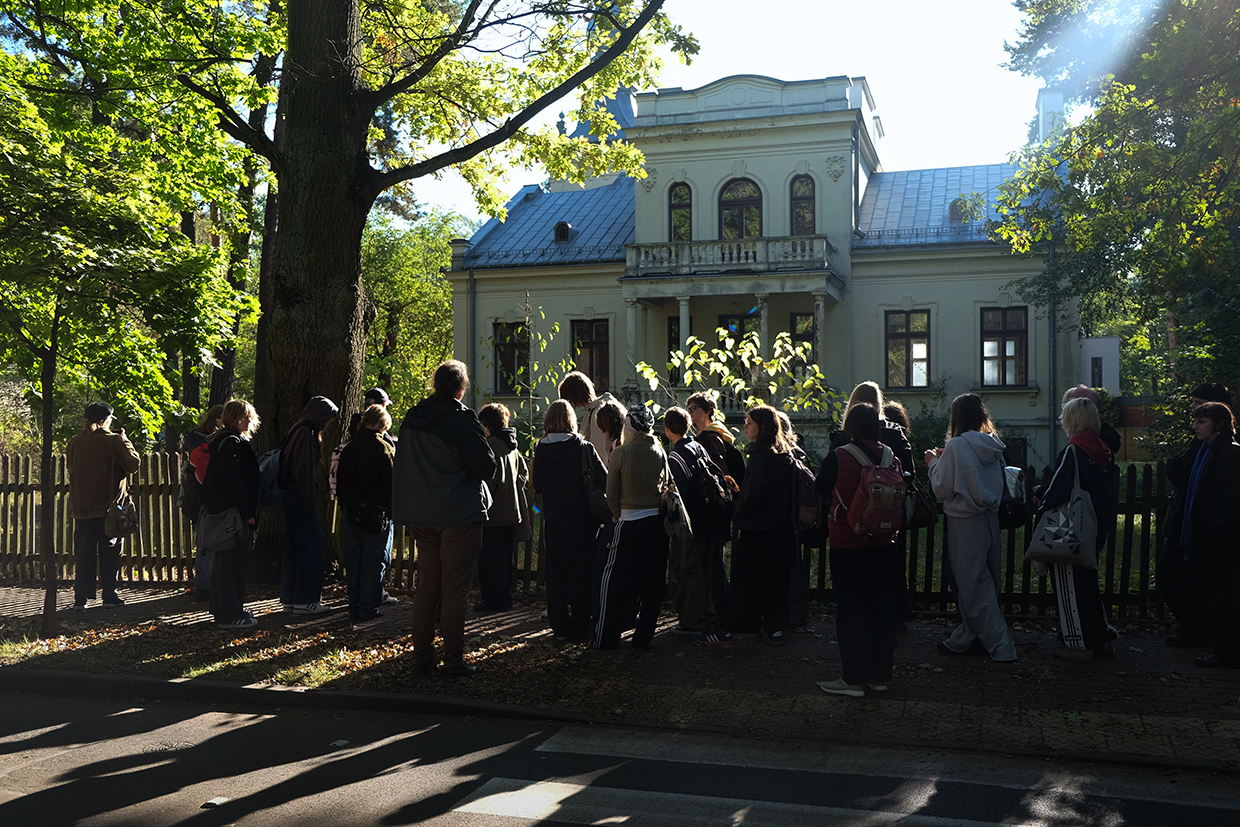 W środę 24 września uczniowie klasy 3B byli gośćmi w Willi Waleria w Milanówku. Już na stacji kolejki zostali powitani przez kustosza tej instytucji, Jana Krześniaka. Wizyta rozpoczęła się spacerem historycznym, podczas którego uczniowie oglądali wille - ważne punkty na mapie Milanówka. Po dotarciu do Willi Waleria młodzież zwiedziła muzeum poświęcone sylwetce Jana Szczepkowskiego - wybitnego polskiego rzeźbiarza. Następnie uczniowie zabrali się za pracę twórczą. Przy pomocy narzędzi rysunkowych opisywali przestrzeń, w której przebywali. Ich praca została zauważona i doceniona. Ponadto nasi uczniowie nawiązali współpracę z Milanowskim Centrum Kultury w ramach projektu DZIEDZICTWO ART DÉCO, czego efektem będzie wystawa, która odbędzie się już niedługo na terenie Willi Waleria.
