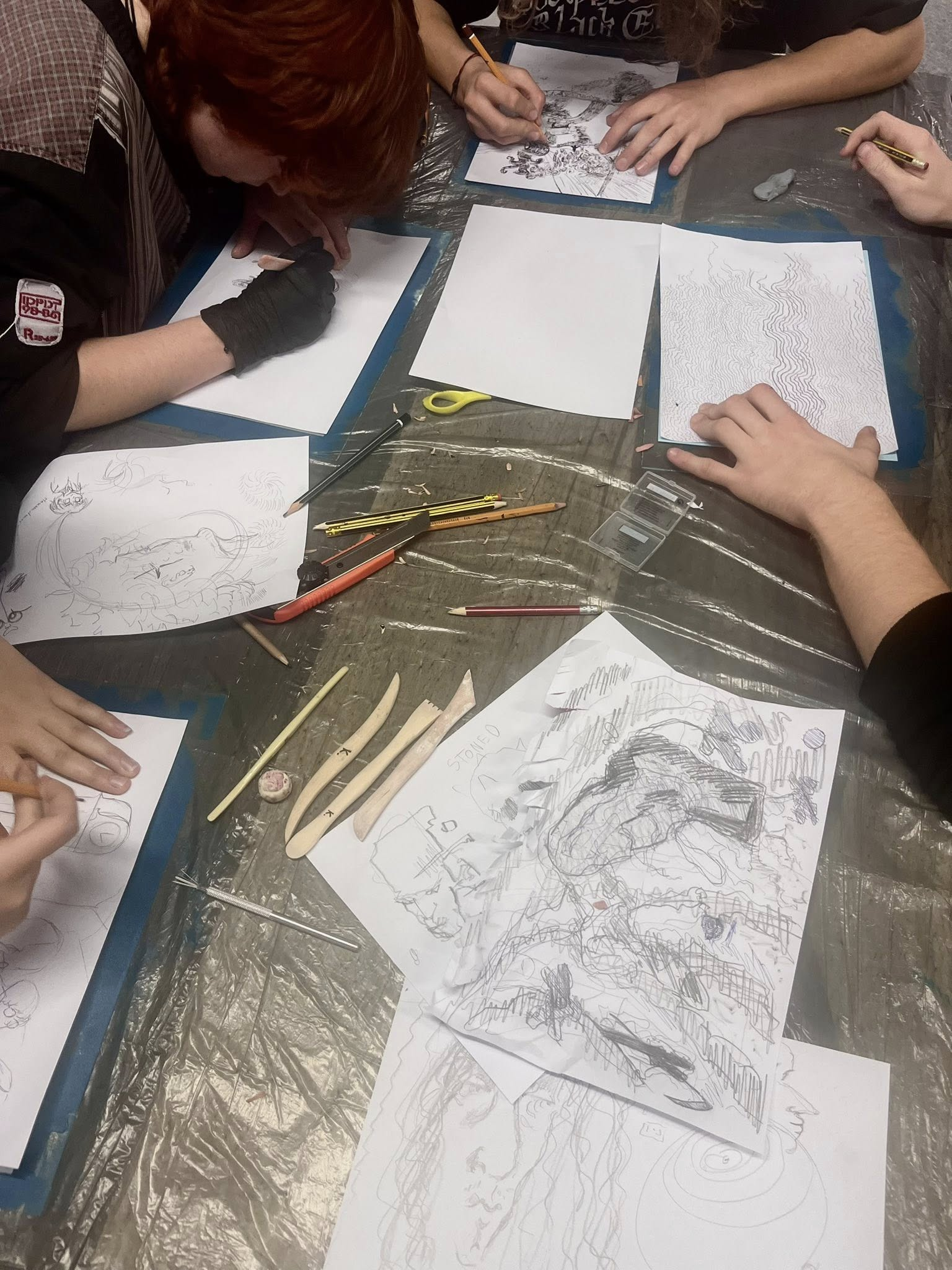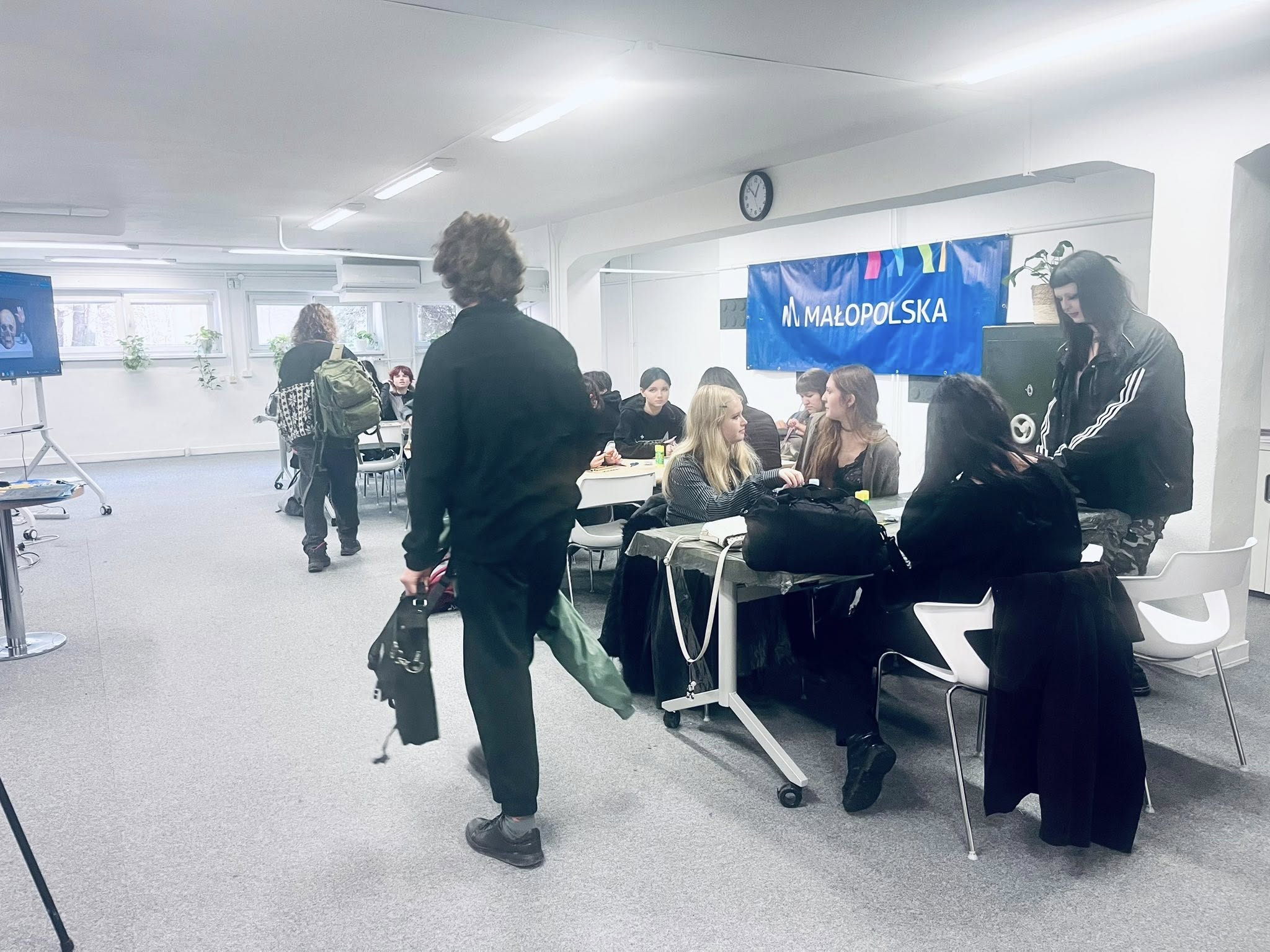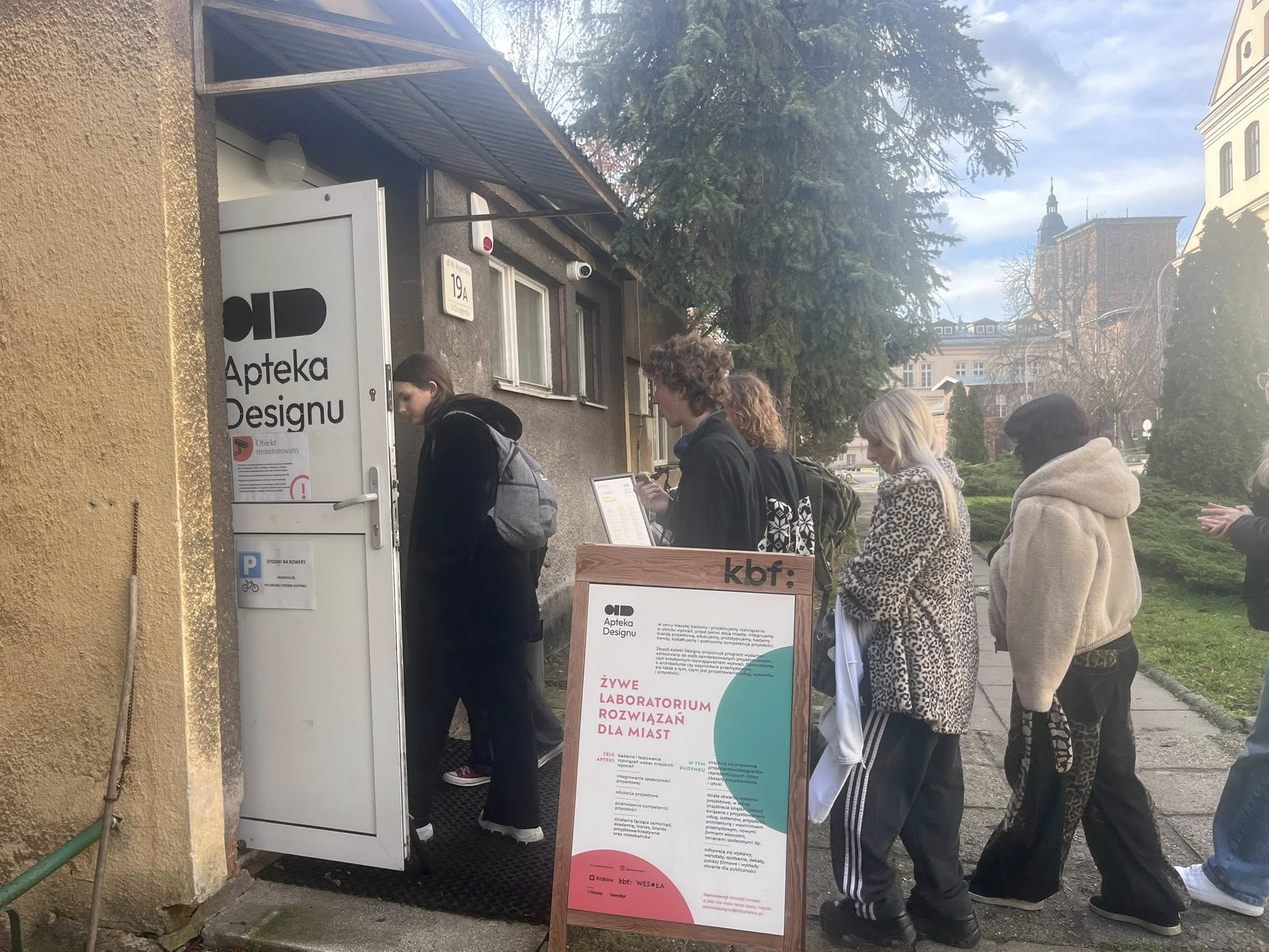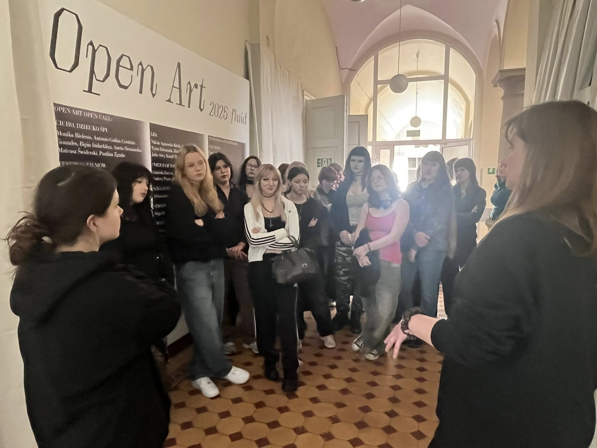 W dniu 12 listopada 2025 roku uczniowie wzięli udział w godzinnym oprowadzaniu kuratorskim po wystawie Open Art – Fluid (ul. Kopernika 21), a następnie w dwugodzinnych warsztatach w technice monotypii, zorganizowanych w Aptece Designu (ul. Kopernika 19A). Warsztaty, prowadzone przez studentki i studentów Edukacji Artystycznej ASP, nawiązywały bezpośrednio do tematyki wystawy.