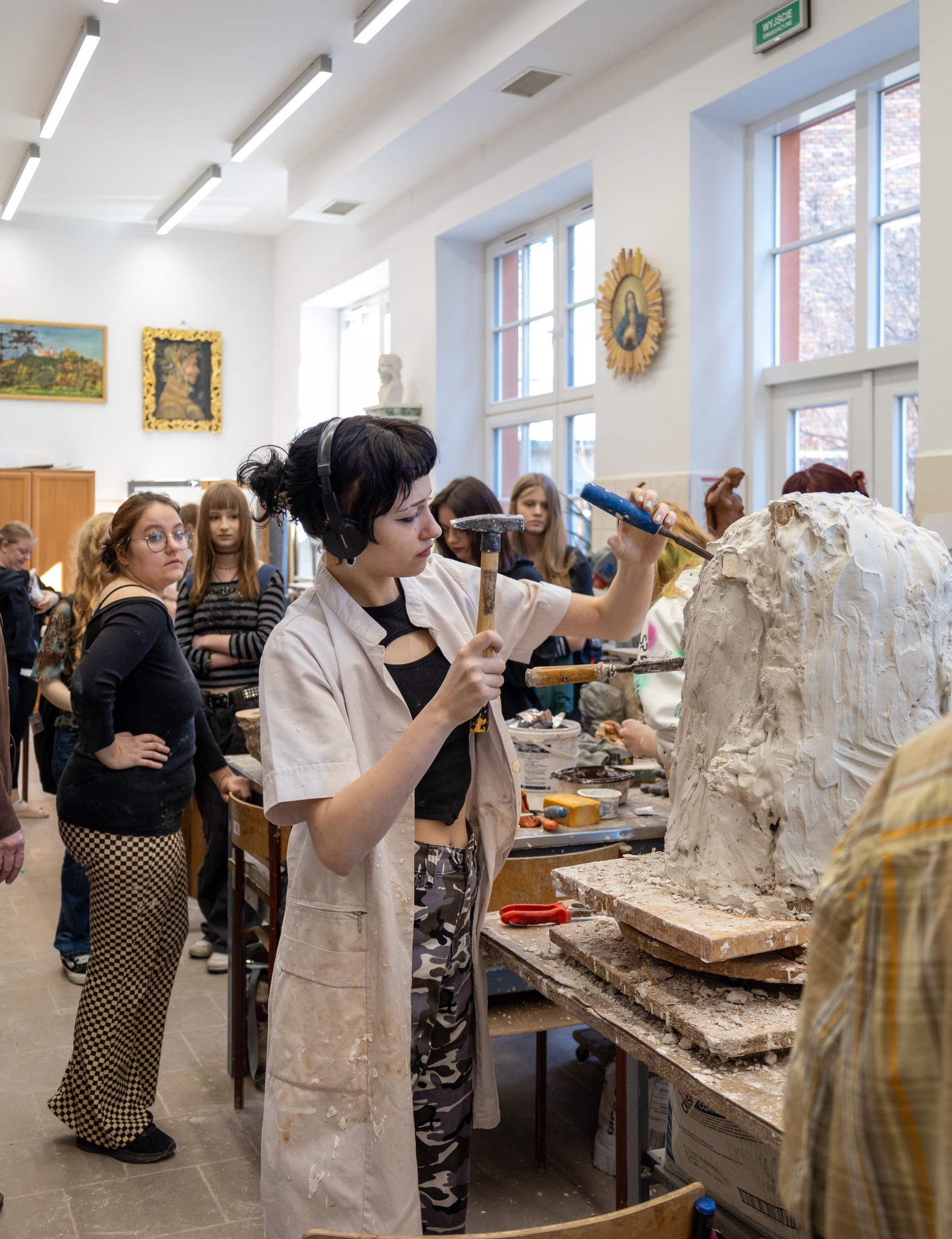 Podczas oprowadzania, uczniowie klas I-III zapoznali gości z pracowniami artystycznymi, salami dydaktycznymi przedmiotów ogólnokształcących oraz internatem. W pracowniach prezentowane były prace uczniów oraz zajęcia artystyczne w ramach specjalizacji: ceramika artystyczna, fotografia artystyczna, tkanina artystyczna, renowacja elementów architektury jak również przedmiotów ogólnoplastycznych malarstwo i rysunek, rzeźba oraz przedmiotów projektowych.