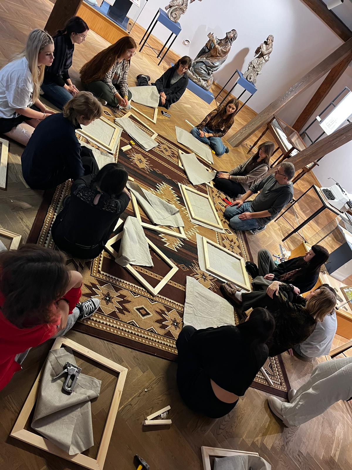9 października młodzież wiśnickiego Plastyka pod opieką Katarzyny Bochenek, nauczyciela malarstwa rozpoczęła plener. Pierwszy dzień pleneru wypełniło samodzielne przygotowanie przez uczniów podobrazia malarskiego: złożenie krosien, naciągniecie lnianego płótna, przeklejenie go i zagruntowanie. Międzyczas poszczególnych etapów pracownicy muzeum wypełnili częścią teoretyczną: Piotr Duda mówił o zagadnieniach estetycznych w sztuce, natomiast Agnieszka Truś-Bakalarz przybliżyła sylwetkę i twórczość malarską Waleriana Kasprzyka.