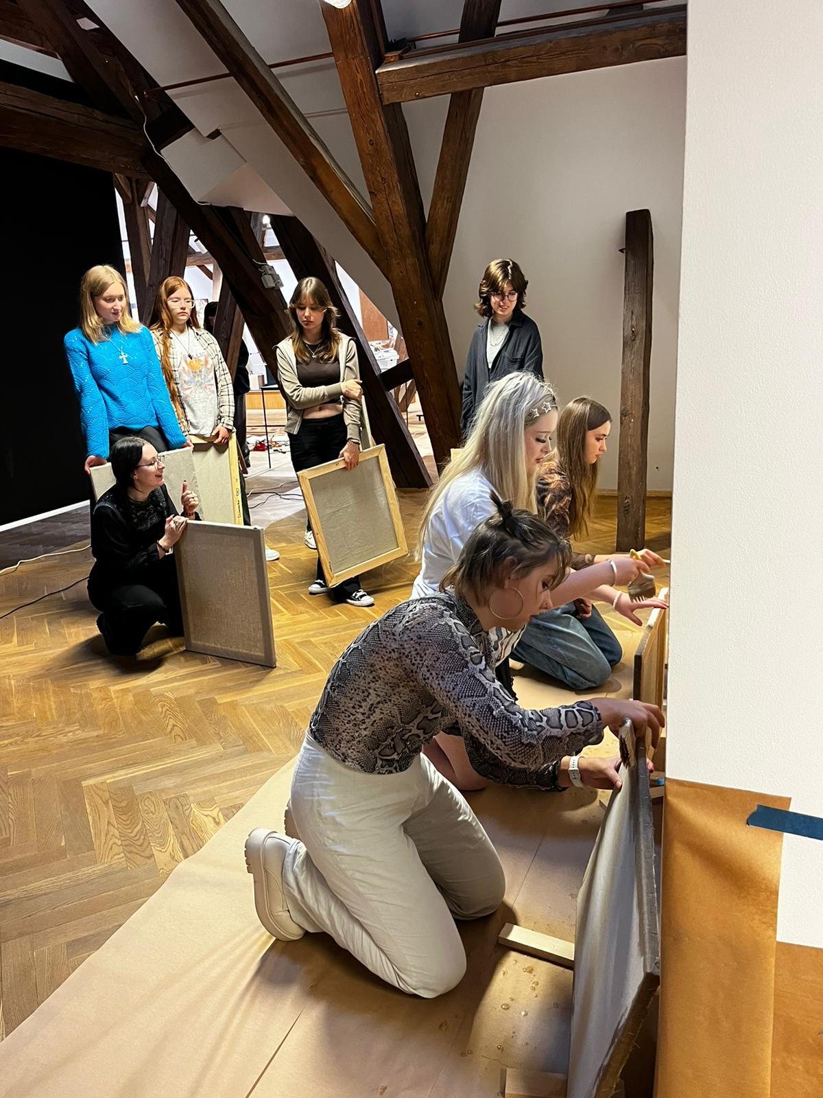 Pierwsza część naszego działania to plener dla grupy 16 uczennic. Ponieważ częstym tematem w twórczości Kasprzyka była Bochnia z jej zabudową, celem pleneru stała się próba namalowania panoramy bocheńskiego rynku.”