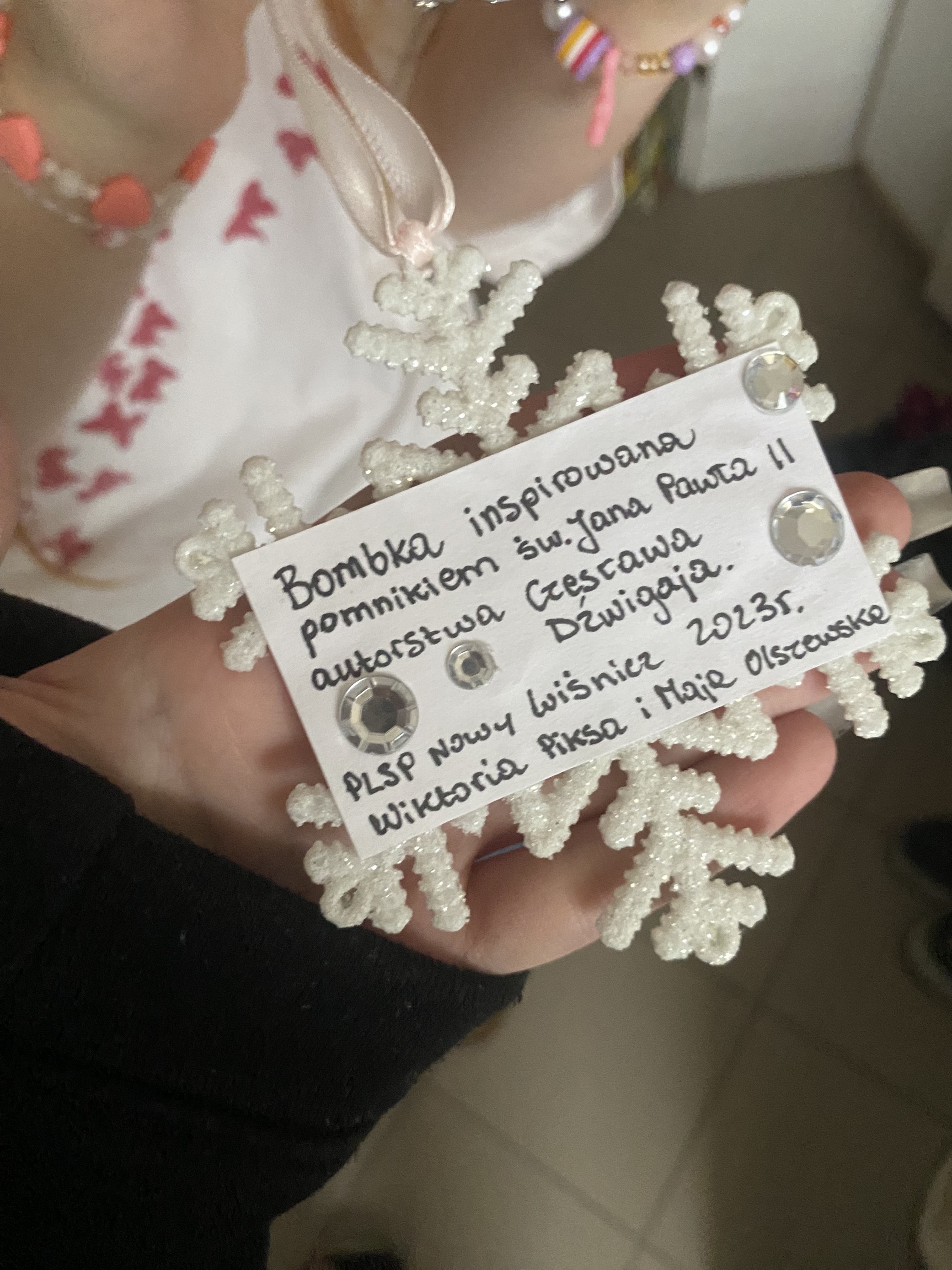 Ogłoszenie wyników konkursu miało miejsce 6 stycznia 2024 roku. Nagrody w kategorii szkoła ponadpodstawowa otrzymały: I miejsce - Aleksandra Moneta (klasa I), II miejsce - Zofia Malec (klasa II), III miejsce - Alicja Osolińska (klasa II). Maja Olszewska i Wiktoria Piksa z klasy III w kategorii praca wspólna otrzymały wyróżnienie. Konkursowe bombki prezentowane są na choince-wystawie w kościele parafialnym w Nowym Wiśniczu.