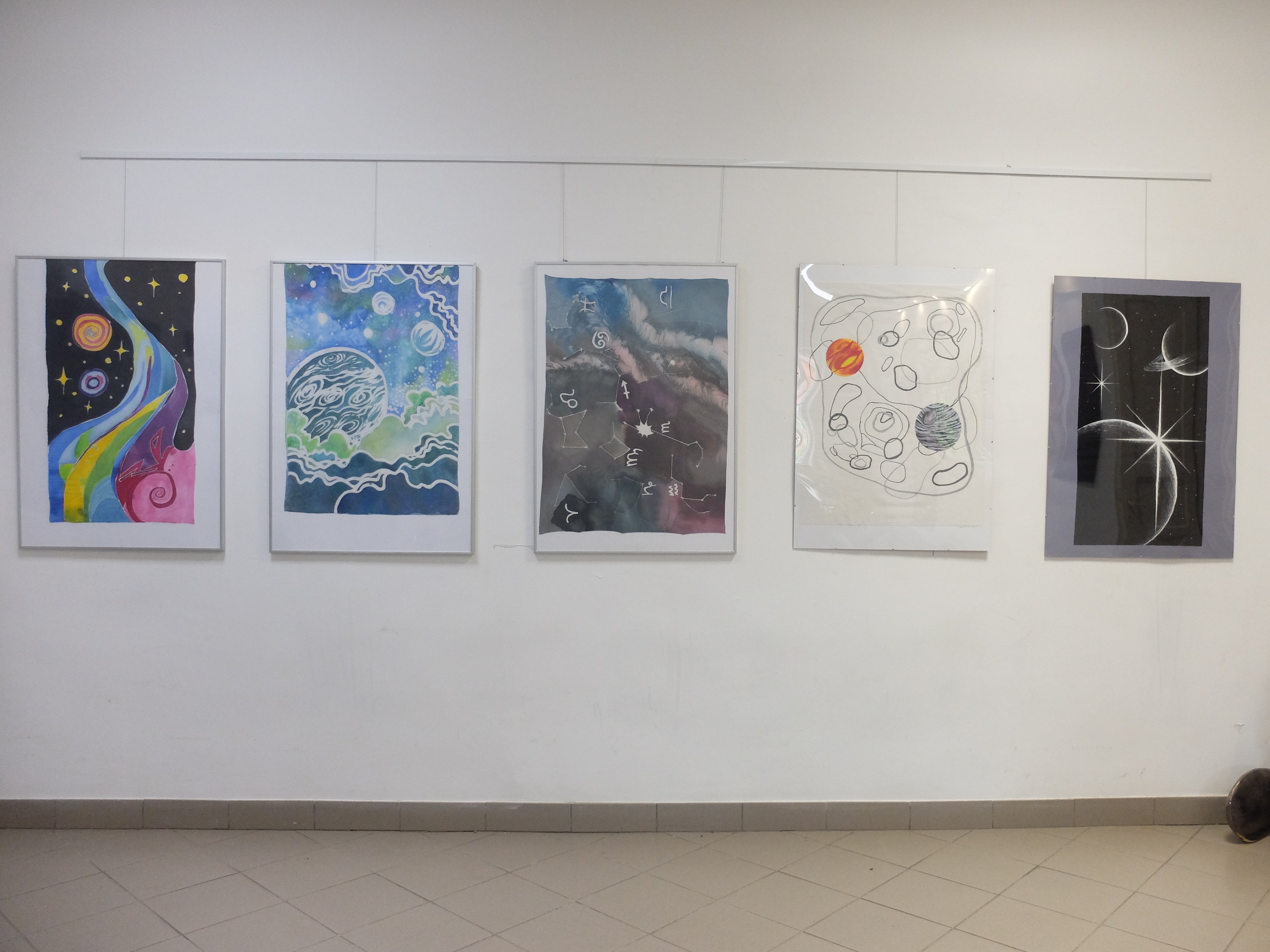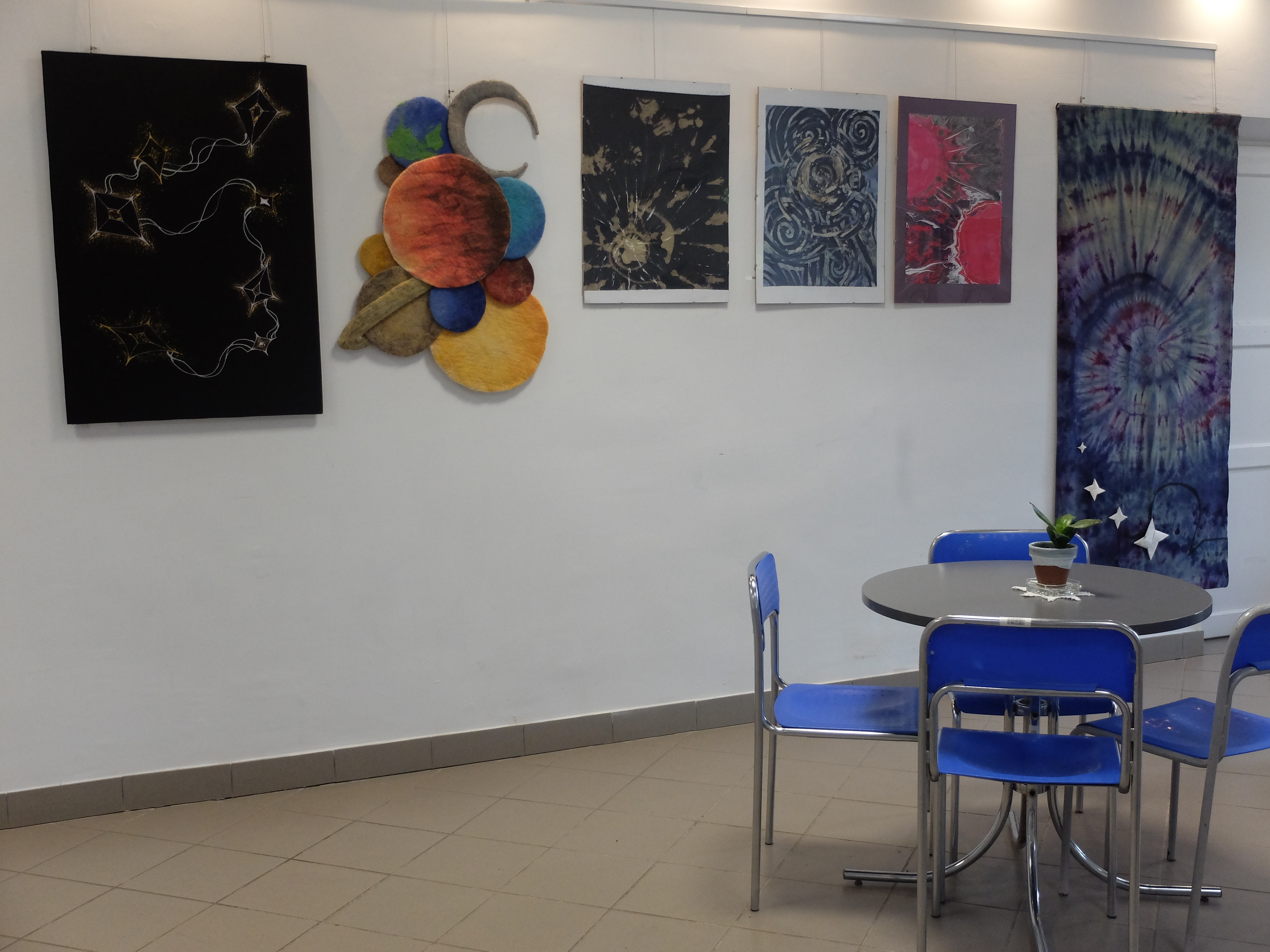 Uczennice tkaniny artystycznej z klasy 3 i 4 pokazują powstałe w trakcie realizacji wspólnego z MOA projektu propozycje swoich wizji „Kosmosu”. Zróżnicowany format, wielkość, technika wykonania i kompozycji ukazuje szeroką gamę możliwości technik tkackich takich, których realizacja nie wymaga pracy na krośnie. Są to: batik na ciepło i zimno, marbling, czyli tzw. malowanie na wodzie, filc, haft, patchwork i string art.