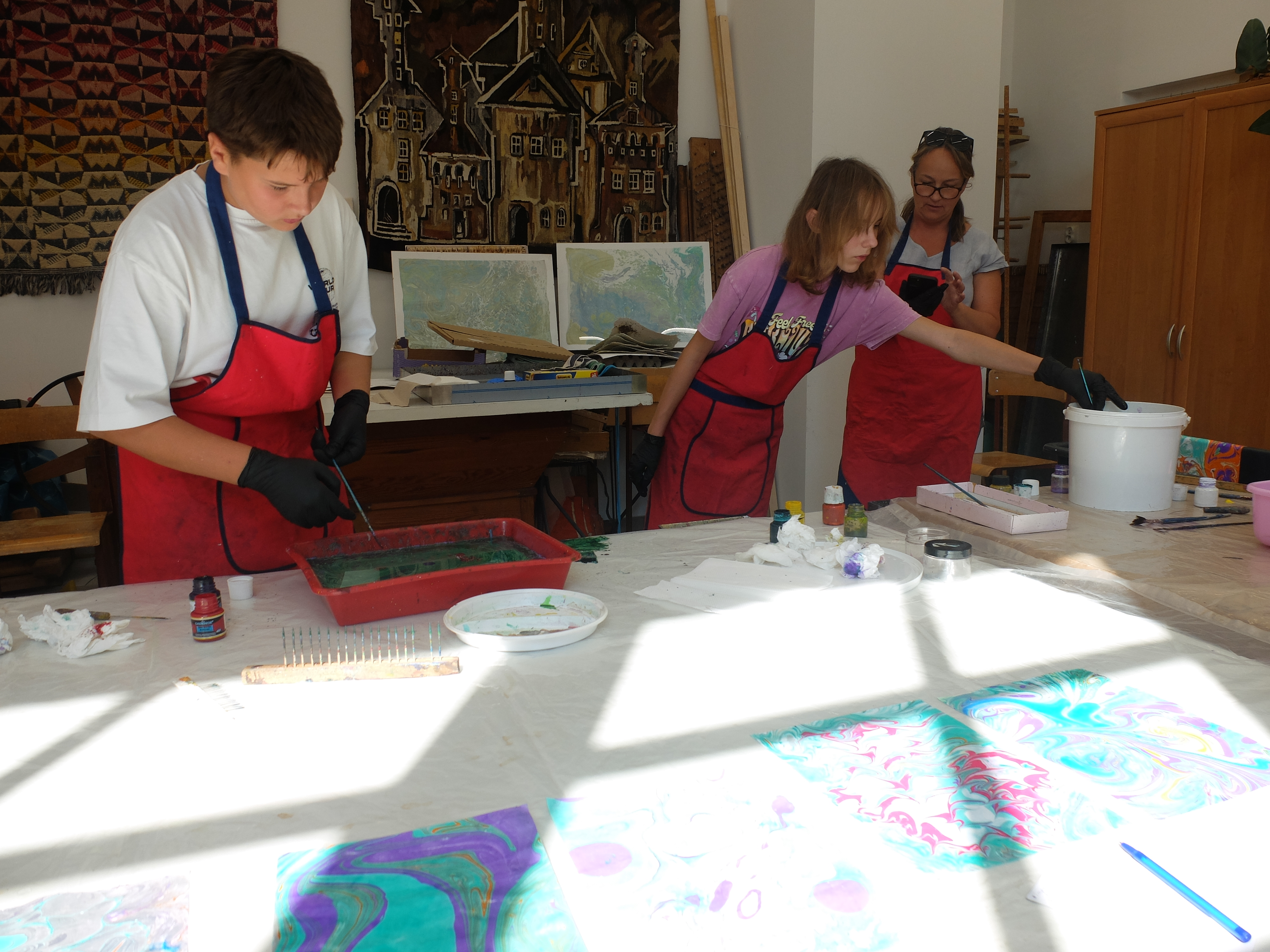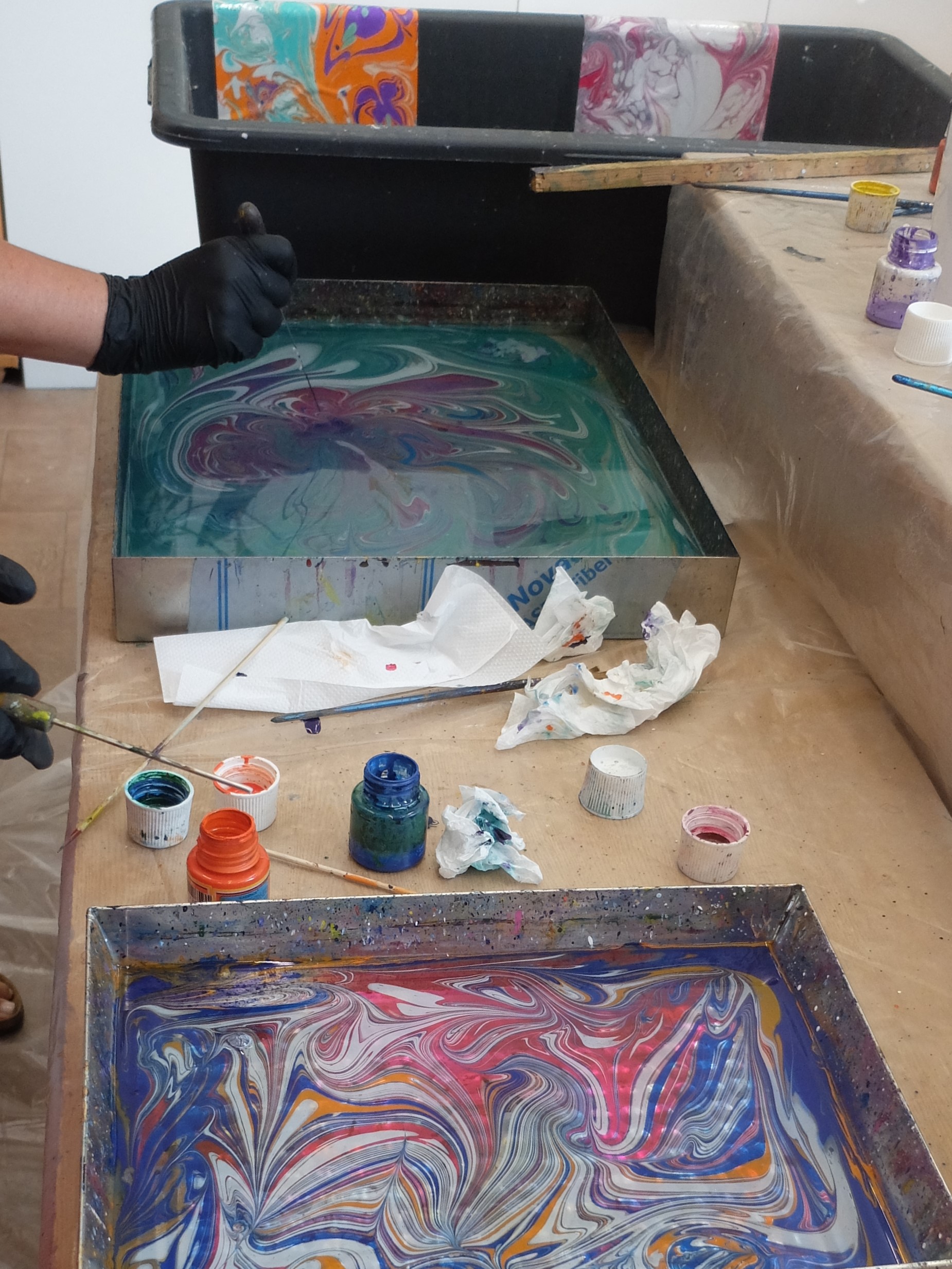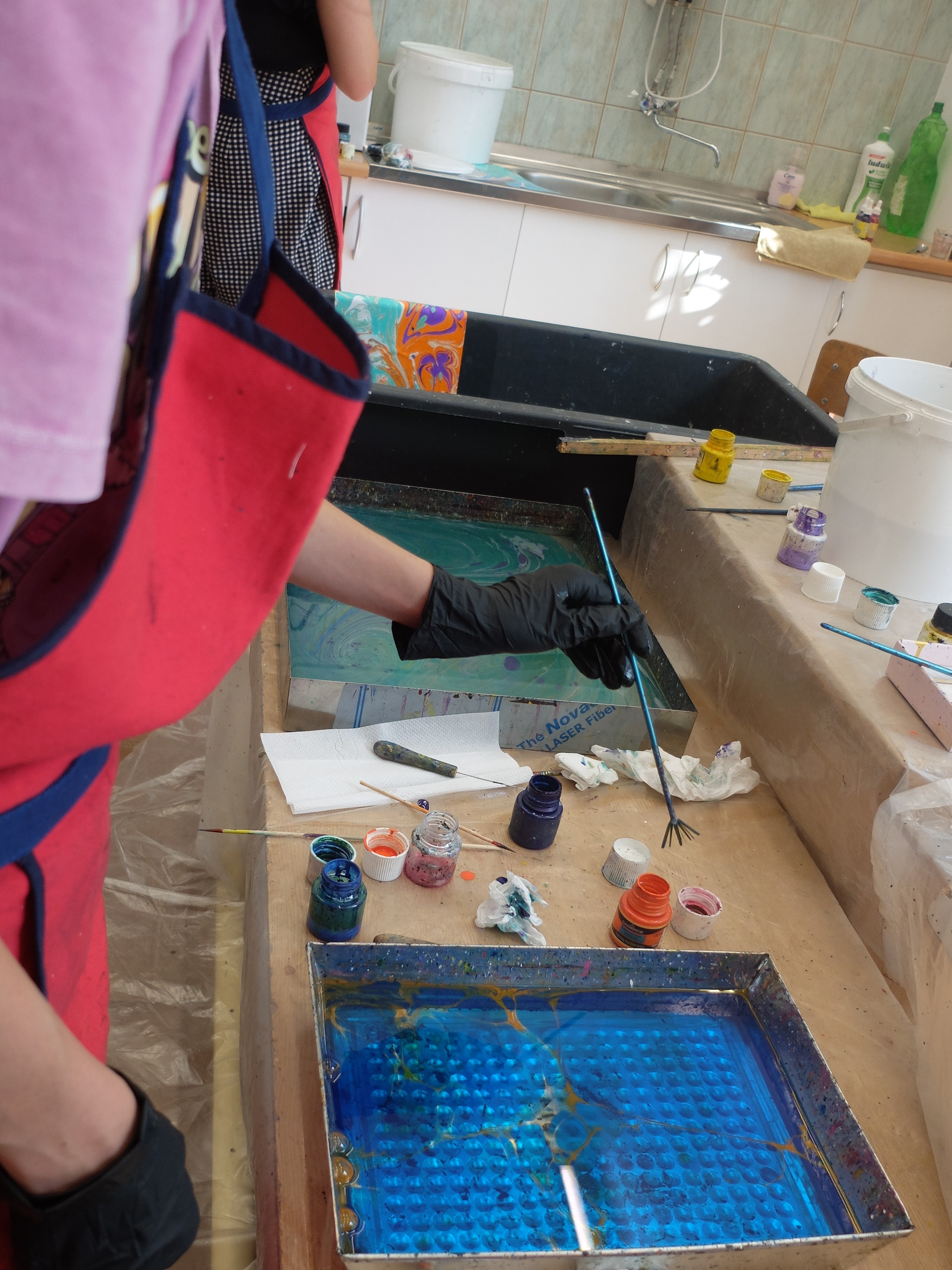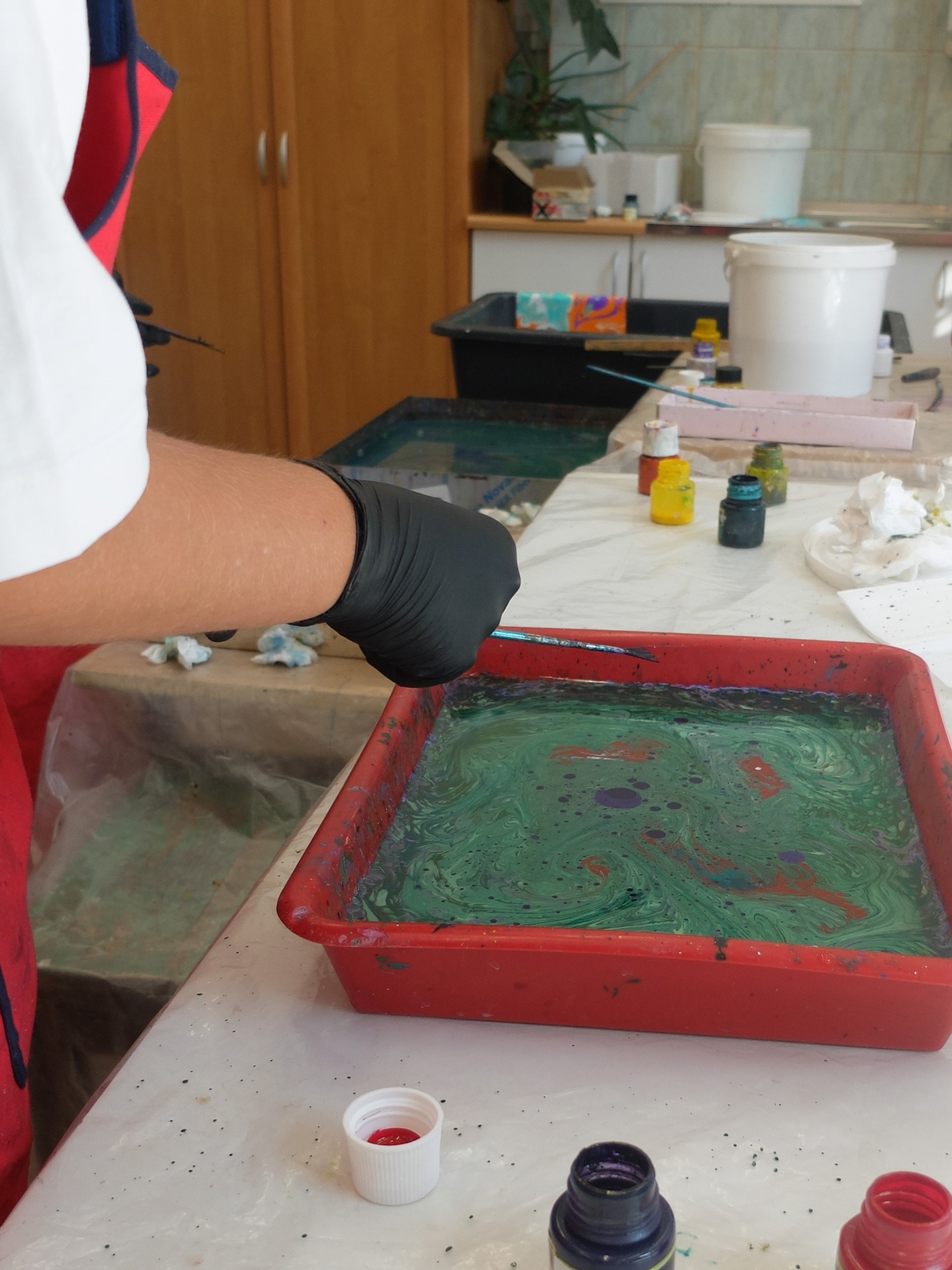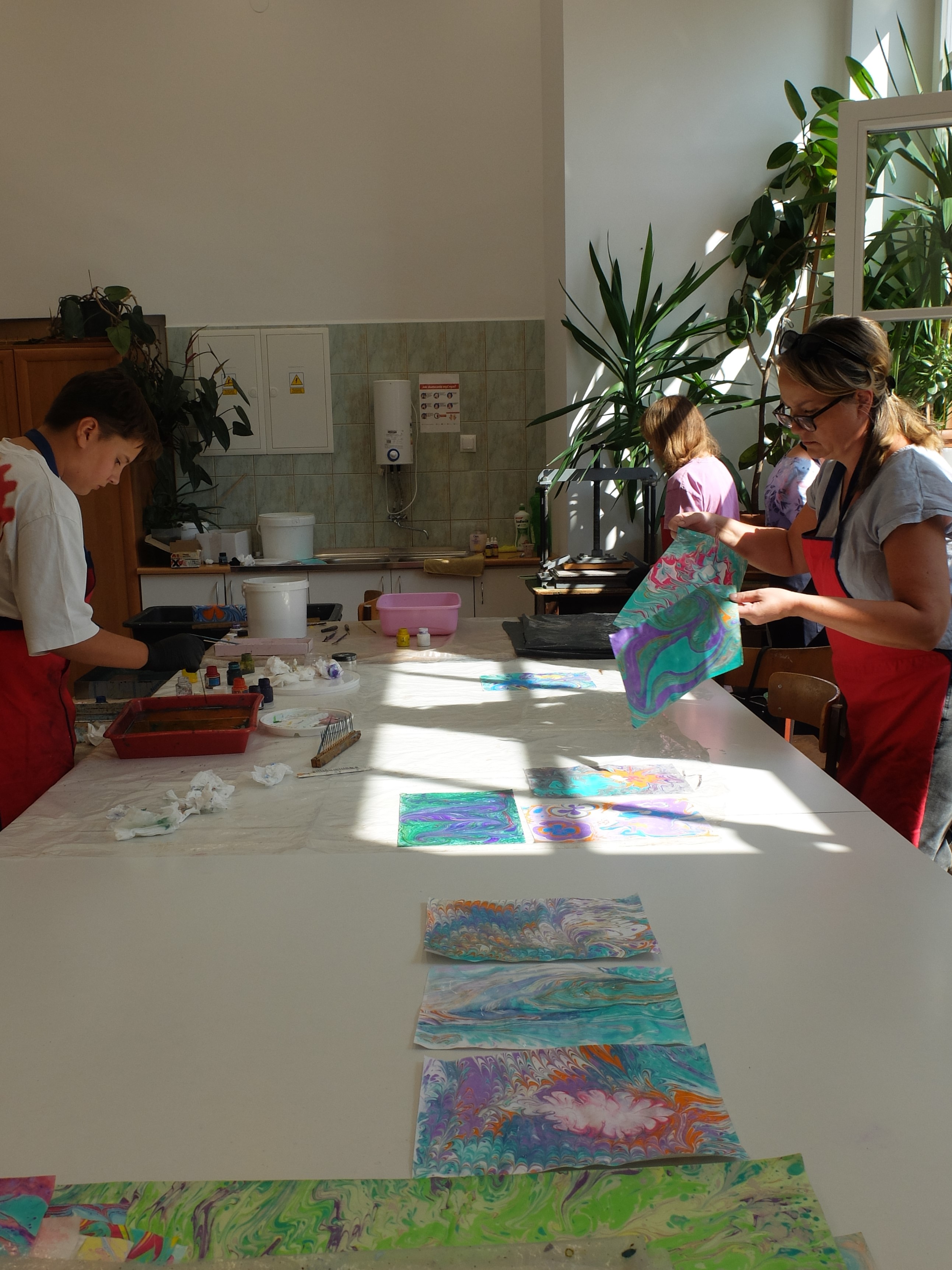 Marbling – warsztaty malowania na wodzie w Wiśnickim Plastyku
