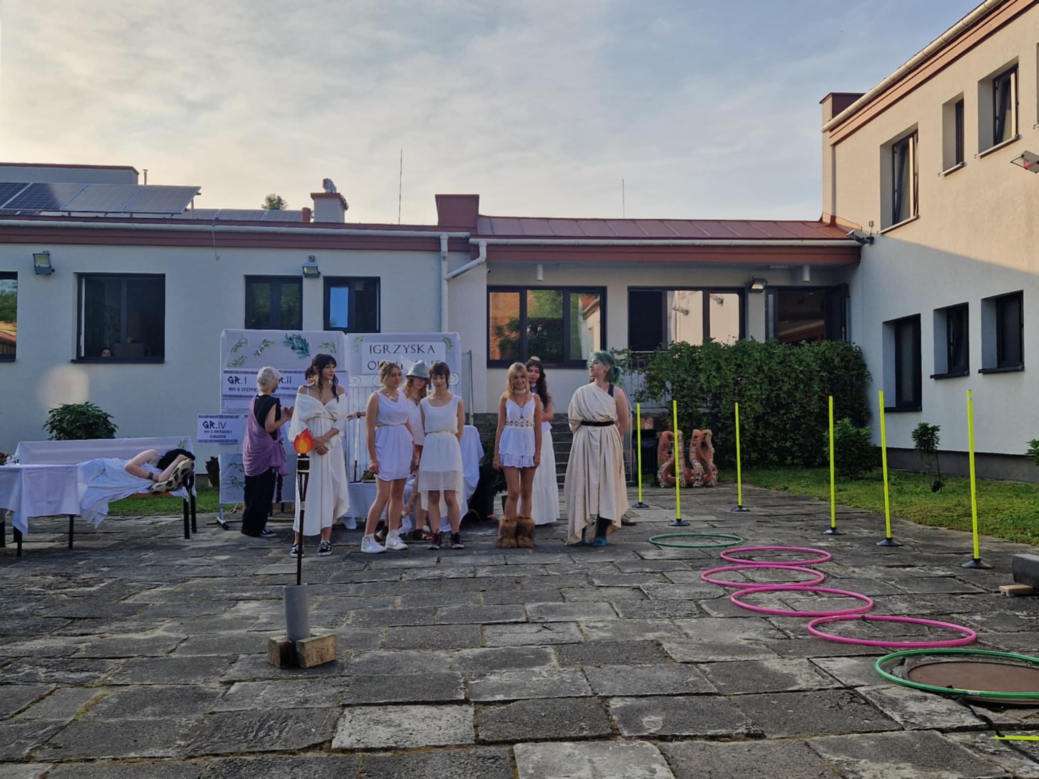 Dnia 4 czerwca 2025 r. na dziedzińcu szkolnym odbyły się otrzęsiny klas pierwszych pod hasłem Igrzyska Olimpijskie. Uczniowie przebrani za bogów greckich brali udział w tematycznych konkurencjach i zabawach, tworząc barwną i zabawną atmosferę wydarzenia.