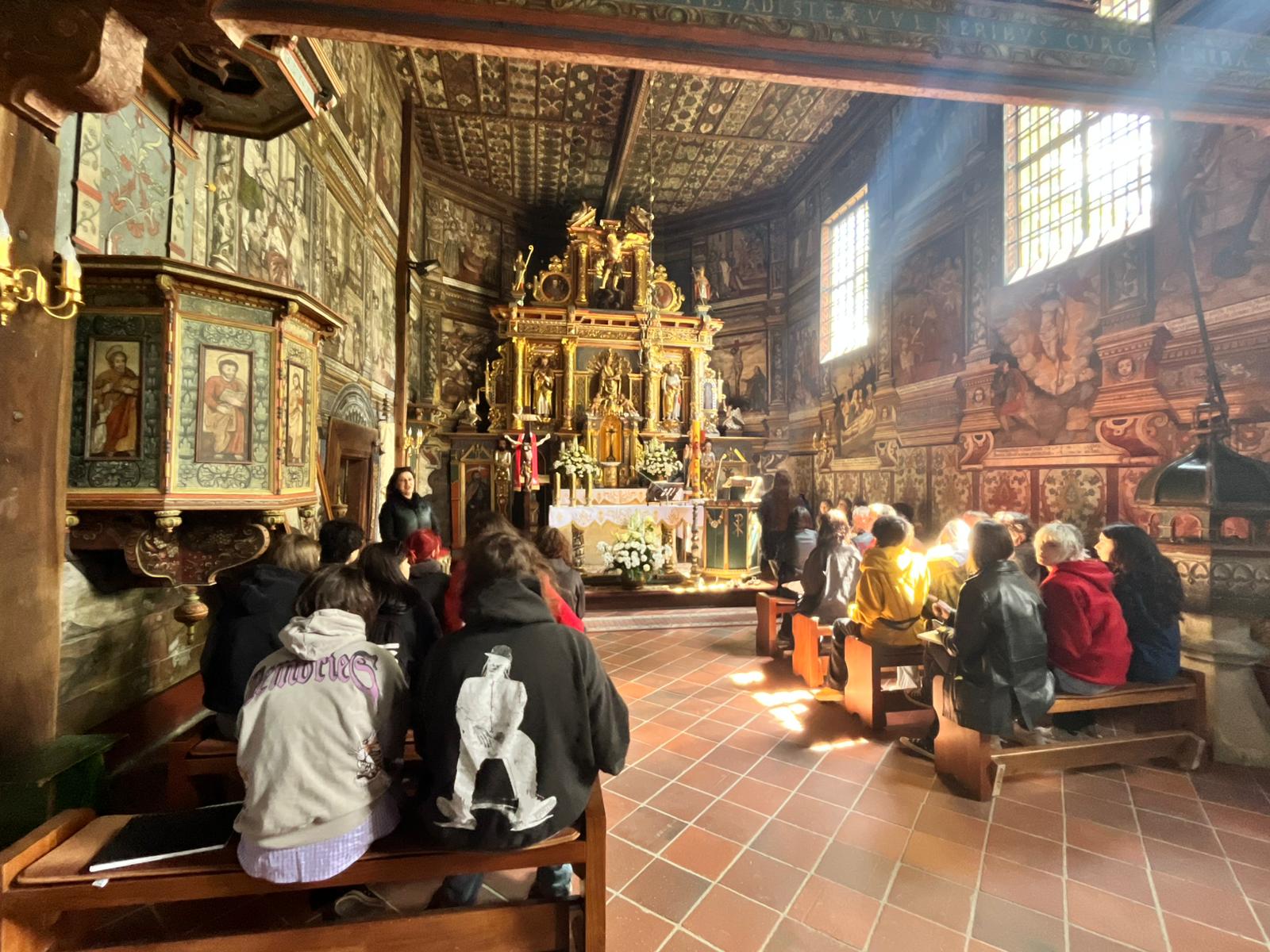 W drodze powrotnej zatrzymaliśmy się jeszcze przy jednym niezwykłym miejscu – drewnianym kościółku pw. św. Michała Archanioła w Binarowej. Ten bezcenny zabytek architektury sakralnej, wpisany na listę UNESCO, zachwycił nas swoją subtelną formą, malarskim wnętrzem. Był to bezcenny akcent zamykający naszą artystyczną podróż.