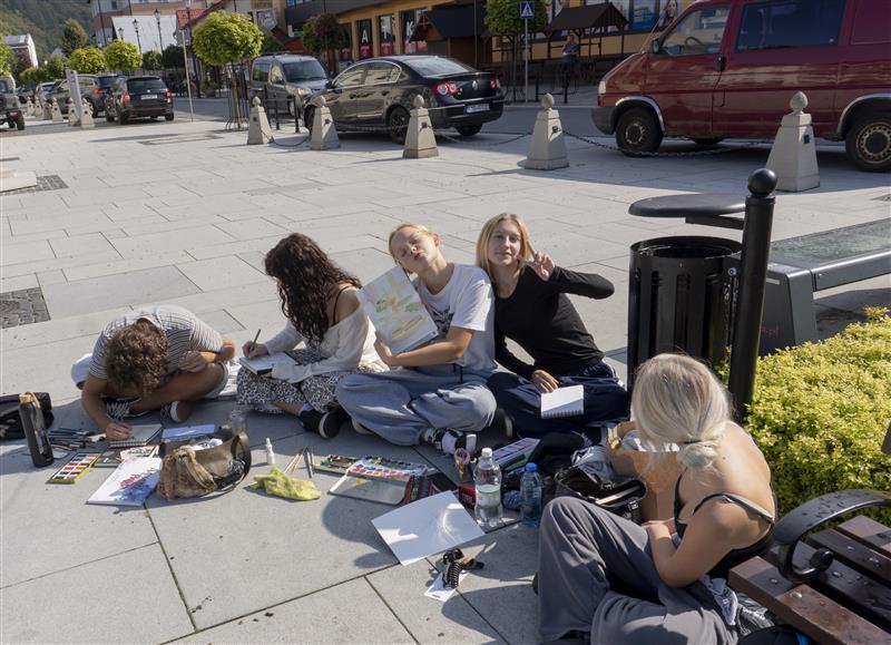 Od wtorku nasi uczniowie ostro zabrali się do pracy – największym zainteresowaniem cieszył się usytuowany na wzgórzu Park Zdrojowy z ogrodami sensorycznymi oraz muszyński rynek z ratuszem. Każdego dnia nauczyciele rysunku i malarstwa sprawdzali postępy w pracy, udzielali rad i wspierali młodych adeptów sztuki. Nie zabrakło też wspólnych posiłków, spacerów i rozmów przy sztalugach.