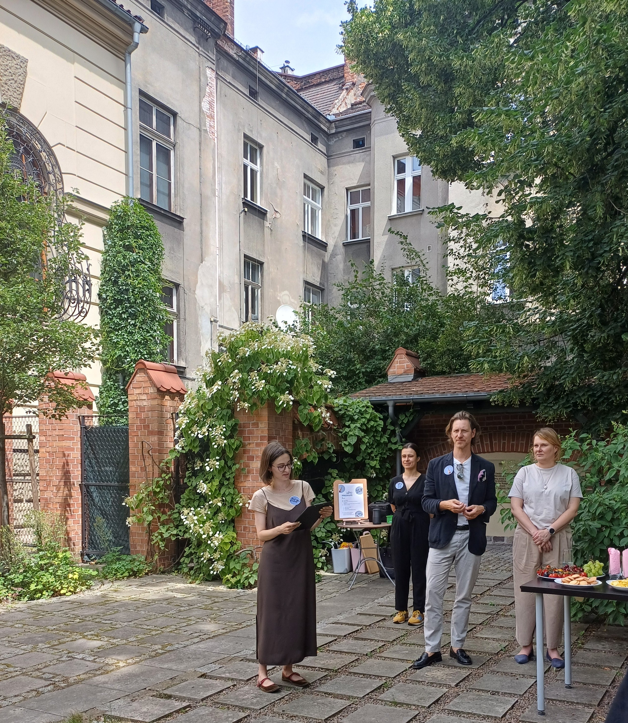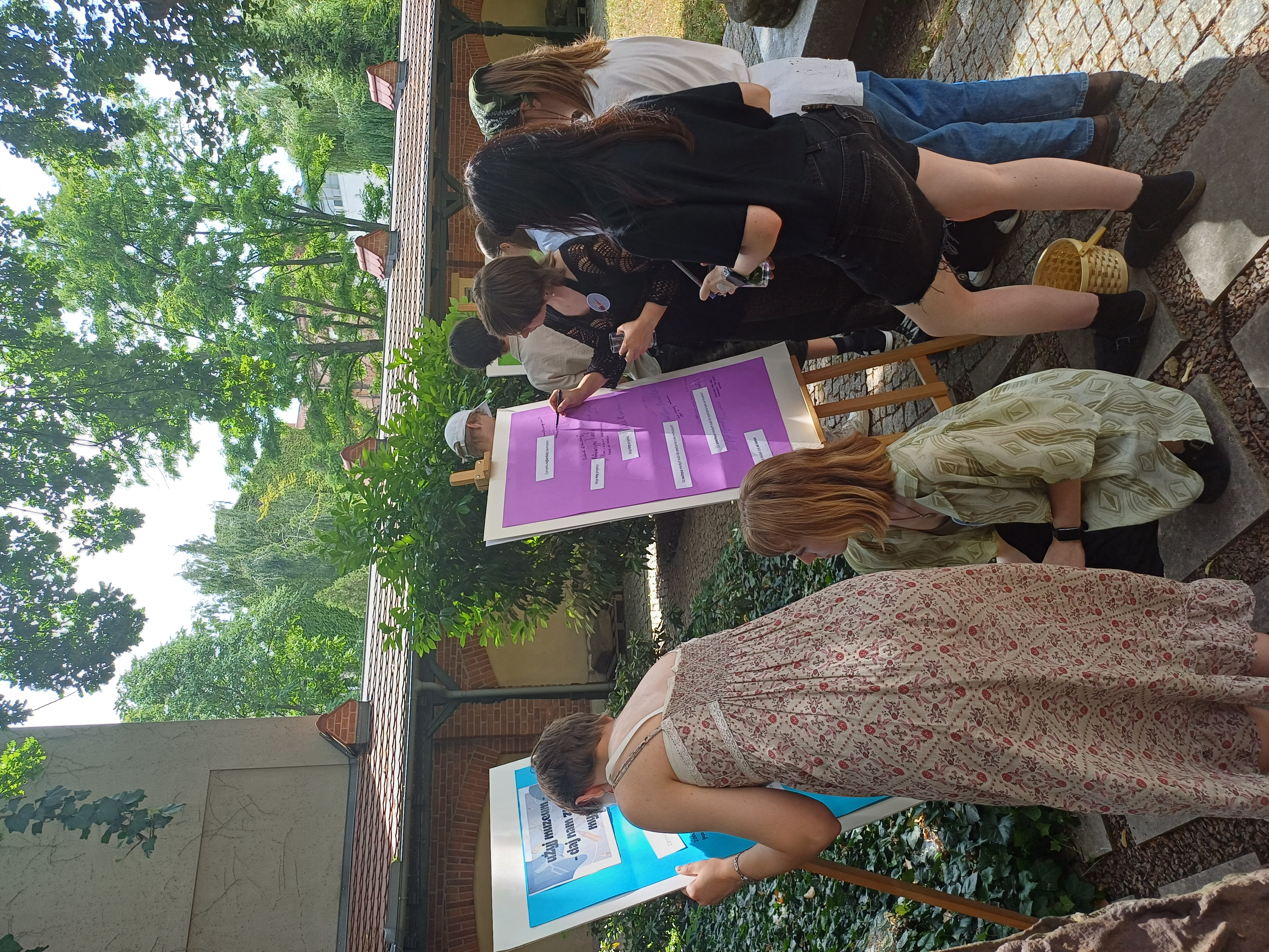 Podsumowanie i ewaluacja projektu edukacyjnego „uŻyj muzeum” już za nami. W dniu 23 czerwca 2025 roku, w ogrodach Muzeum im. Emeryka Hutten-Czapskiego odbyło się spotkanie wszystkich pięciu grup projektowych, w ramach którego uczennice i uczniowie zaprezentowali przygotowane scenariusze zajęć, opowiedzieli o swoich wrażeniach, zdobytych doświadczeniach. W spotkaniu uczestniczył też Zastępca Dyrektora ds. Strategii i Komunikacji MNK Tomasz Ostrowski oraz kierowniczka Działu Edukacji Marta Hernik.