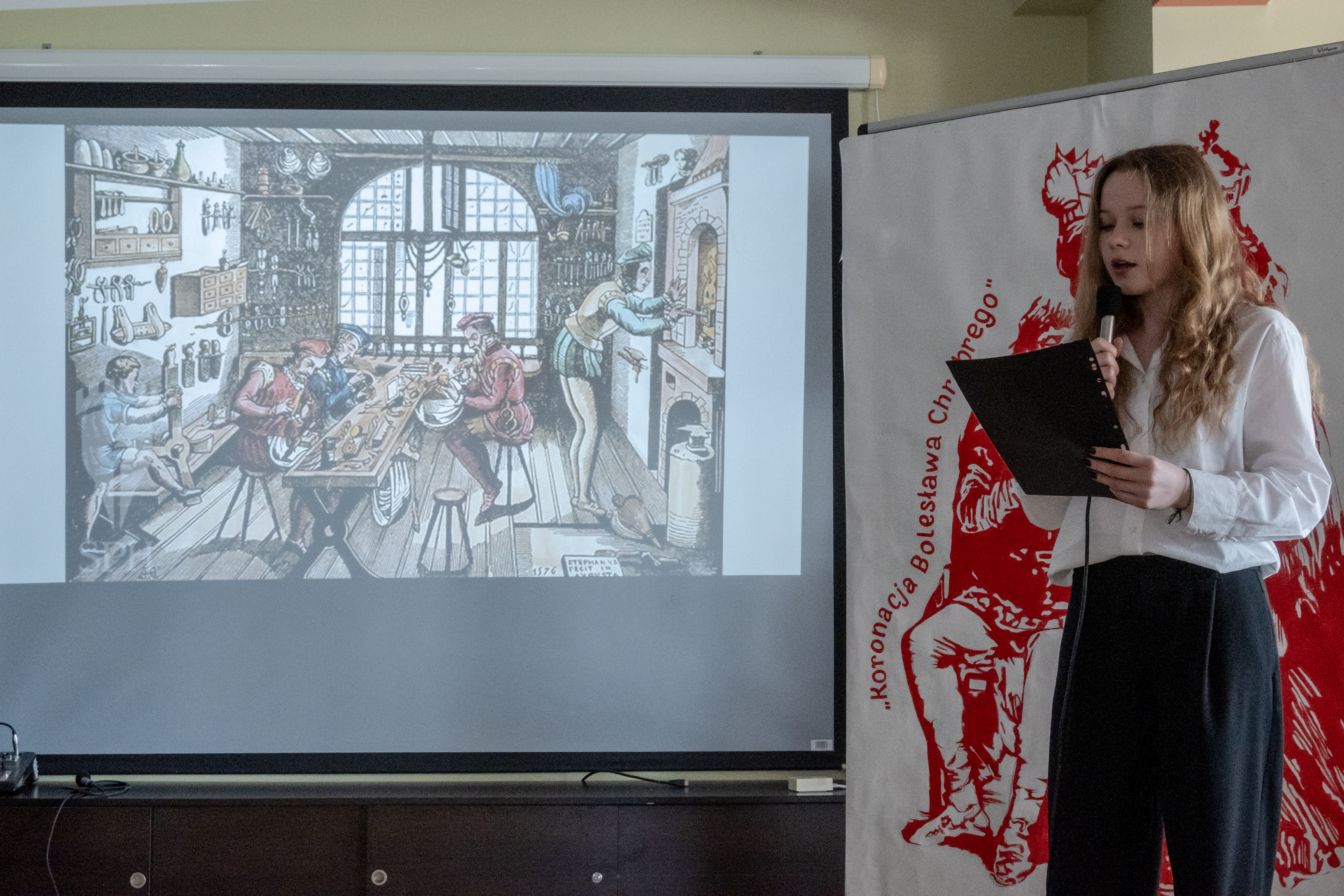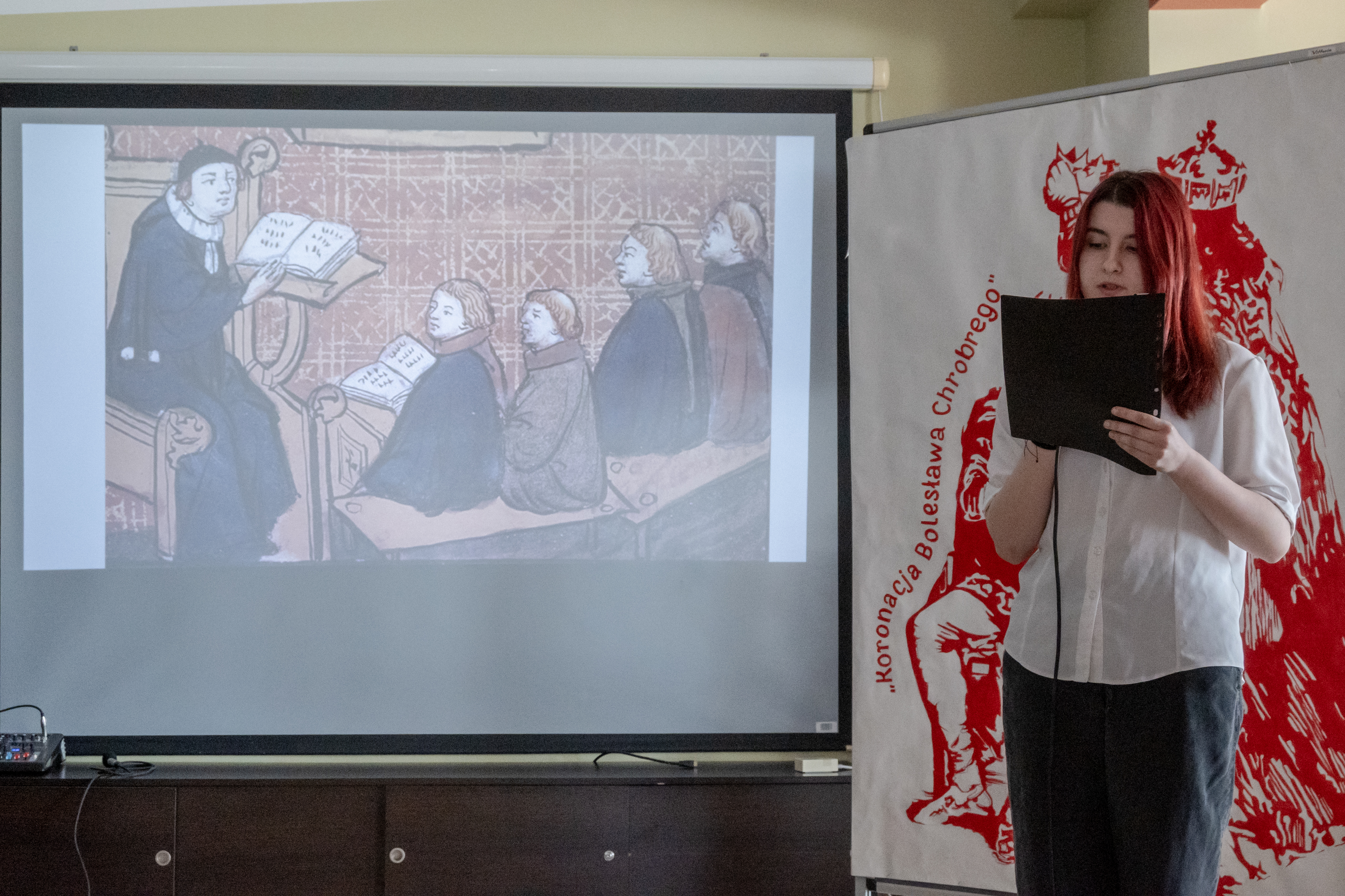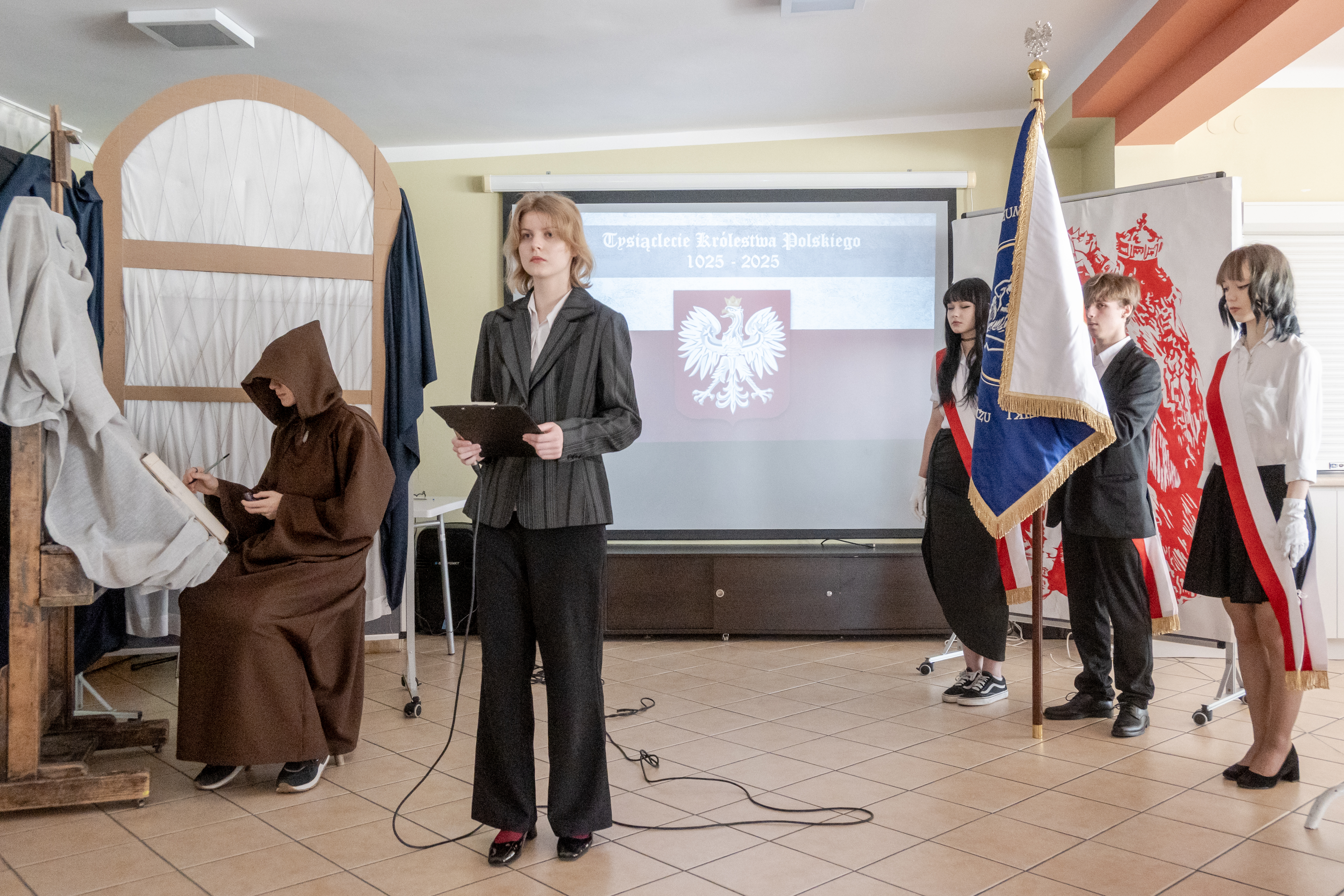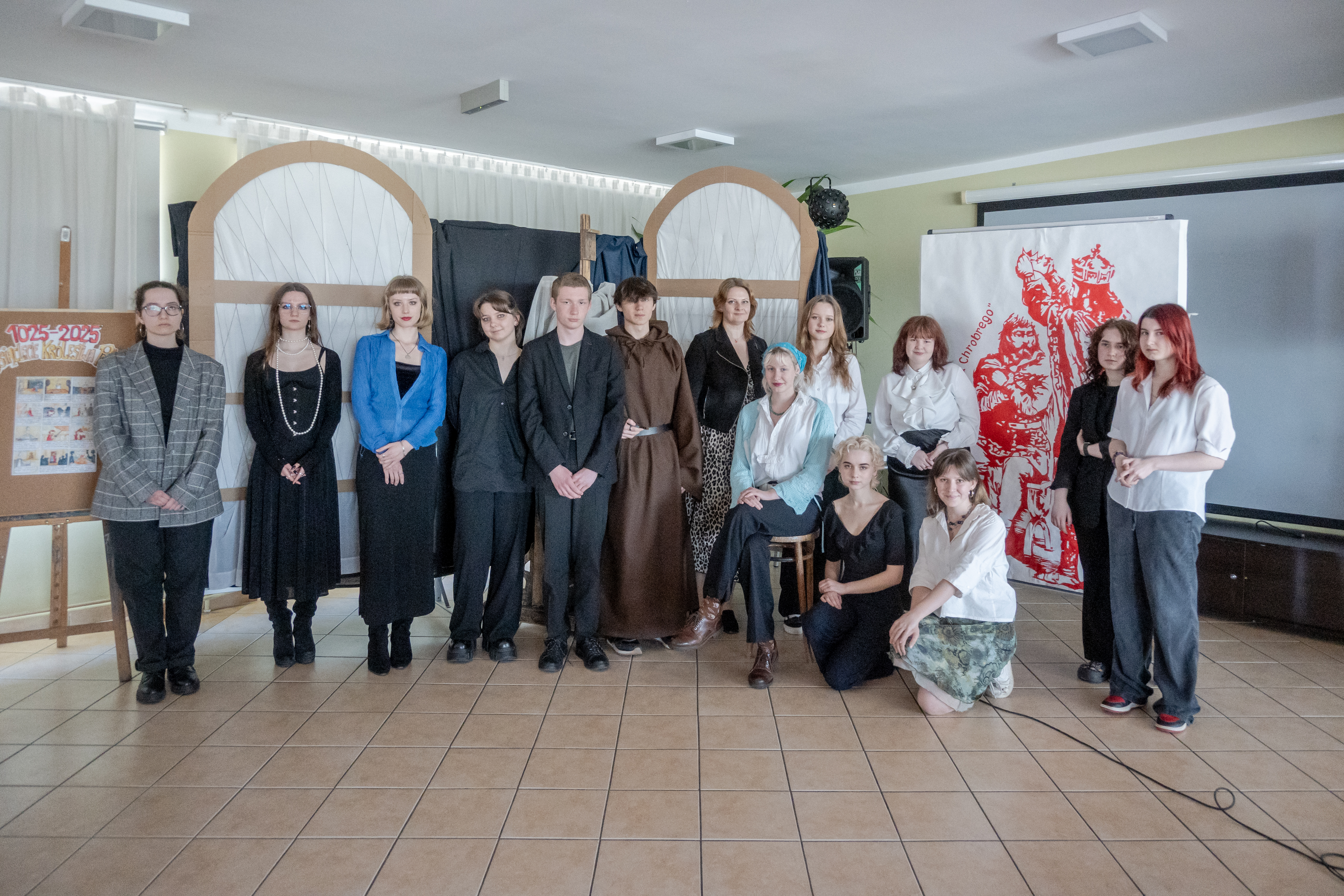 Integralną częścią wydarzenia była scenografia wykonana podczas zajęć z rysunku i malarstwa. Uczniowie przygotowali tło stylizowane na średniowieczne skryptorium oraz dekoracje inspirowane motywem koronacji. Elementy te w znaczący sposób wzbogaciły narrację uroczystości i podkreśliły historyczny charakter całego przedsięwzięcia.